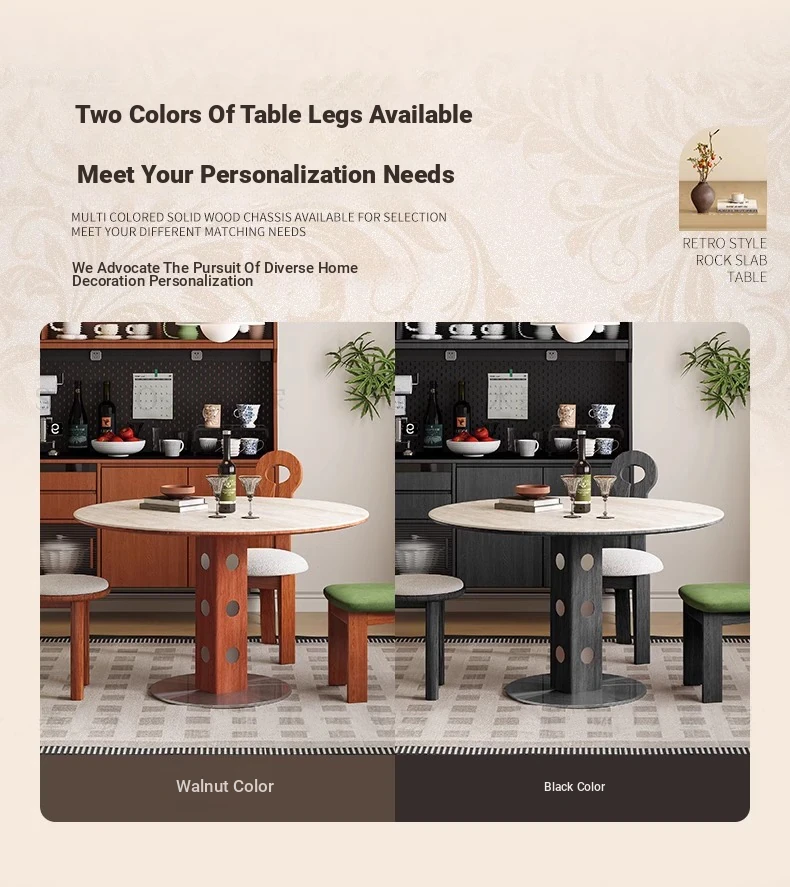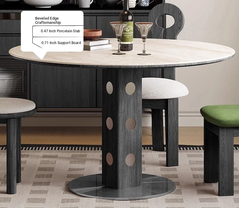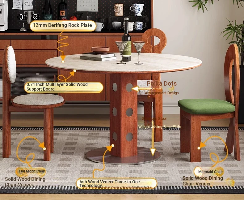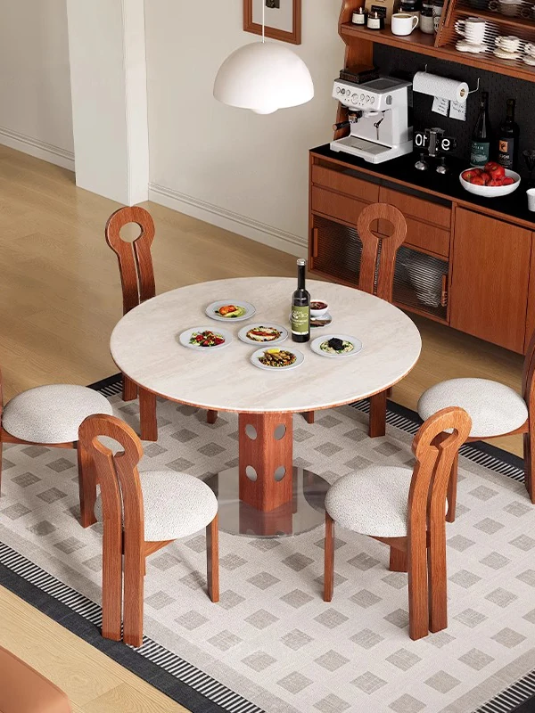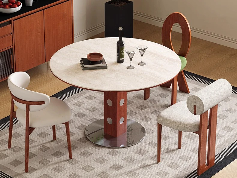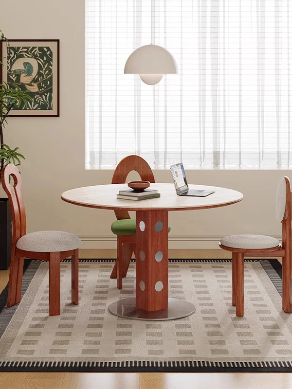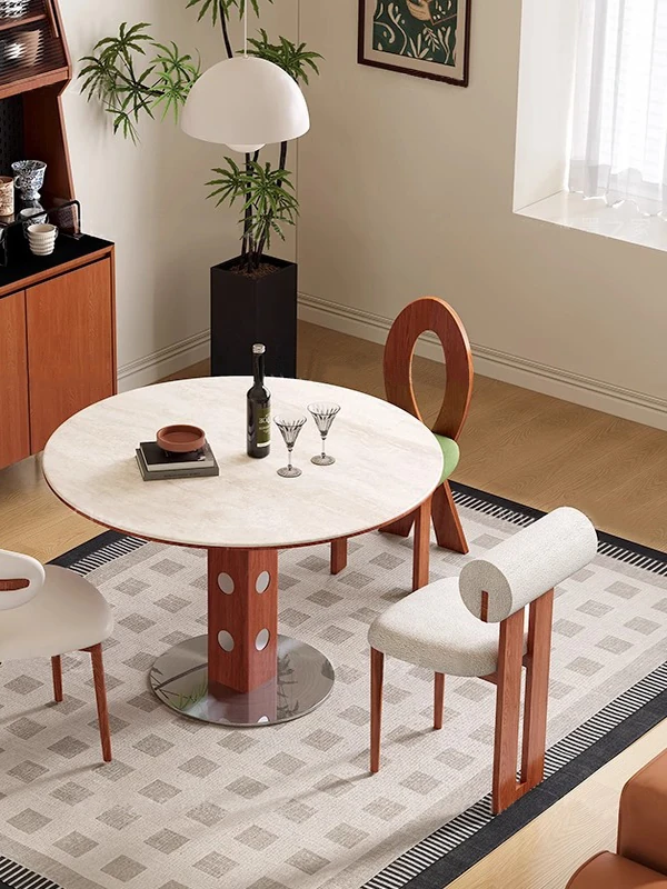 デリフォン岩板洞石テーブル 中古円卓 レトロメタルレッグ 丸型ダイニングテーブル フレンチバウハウススタイル 無垢材製 食卓に最適なエレガントなデザイン!