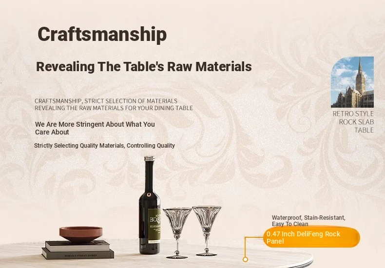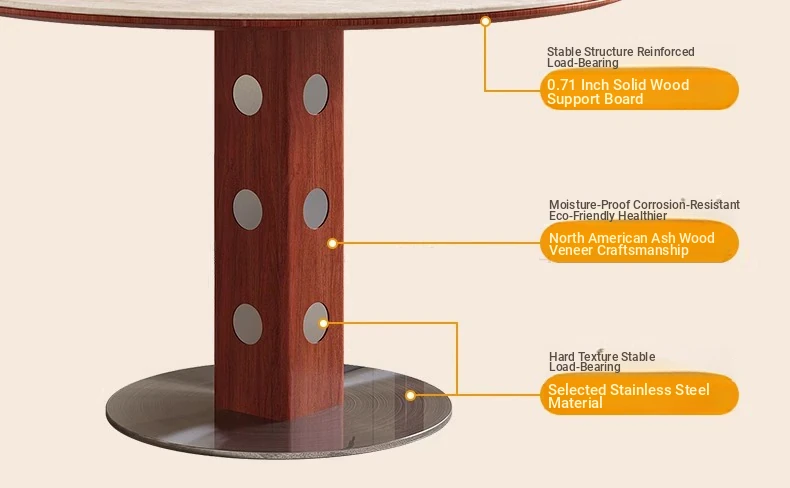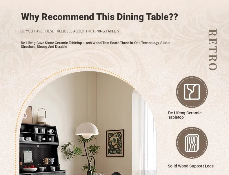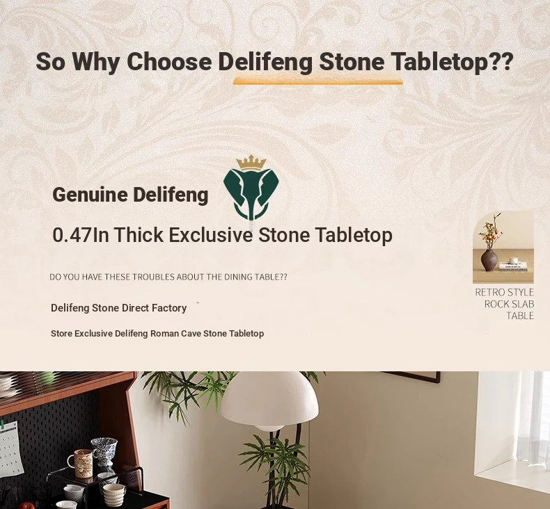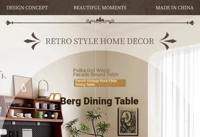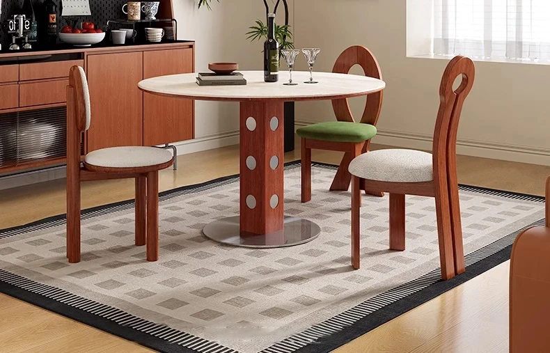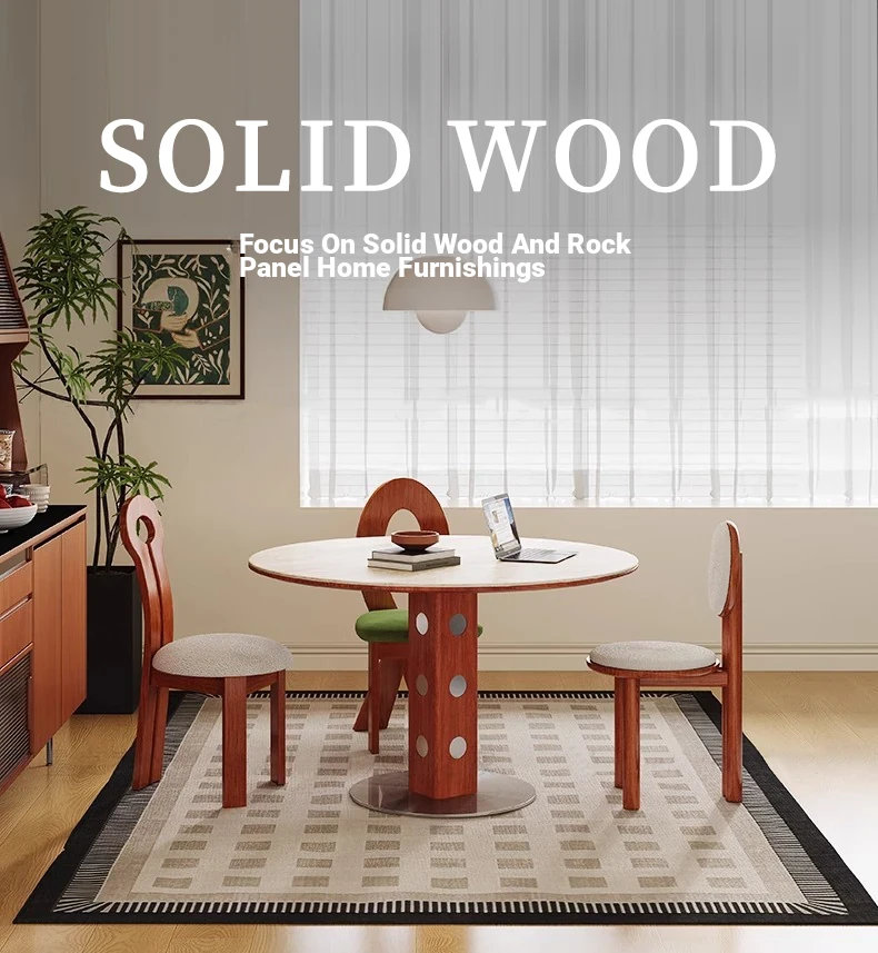デリフォン岩板洞石テーブル 中古円卓 レトロメタルレッグ 丸型ダイニングテーブル フレンチバウハウススタイル 無垢材製 食卓に最適なエレガントなデザイン!