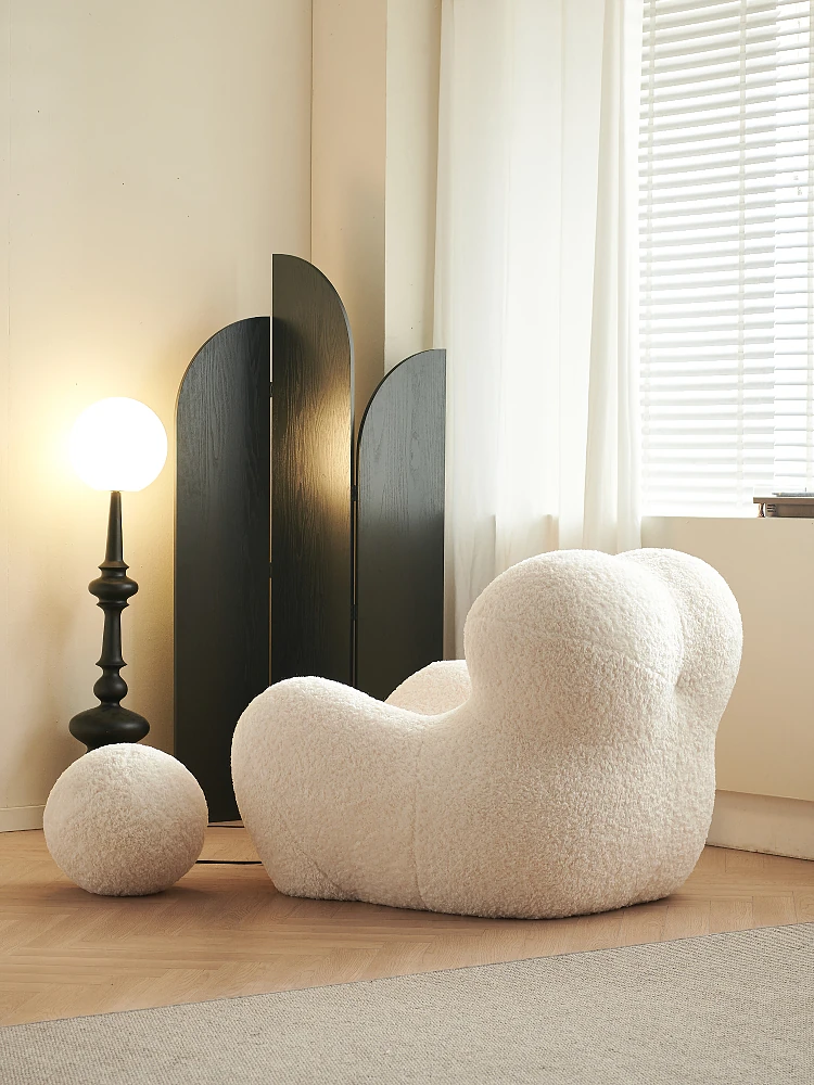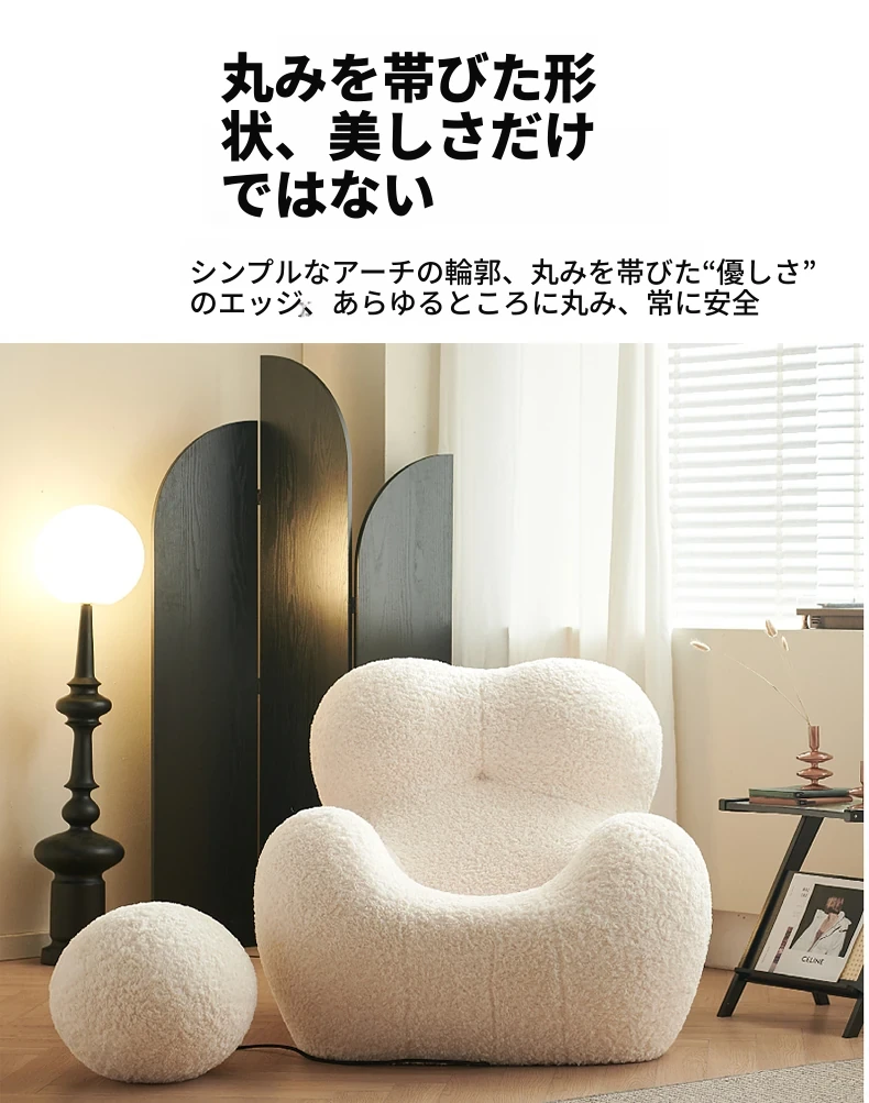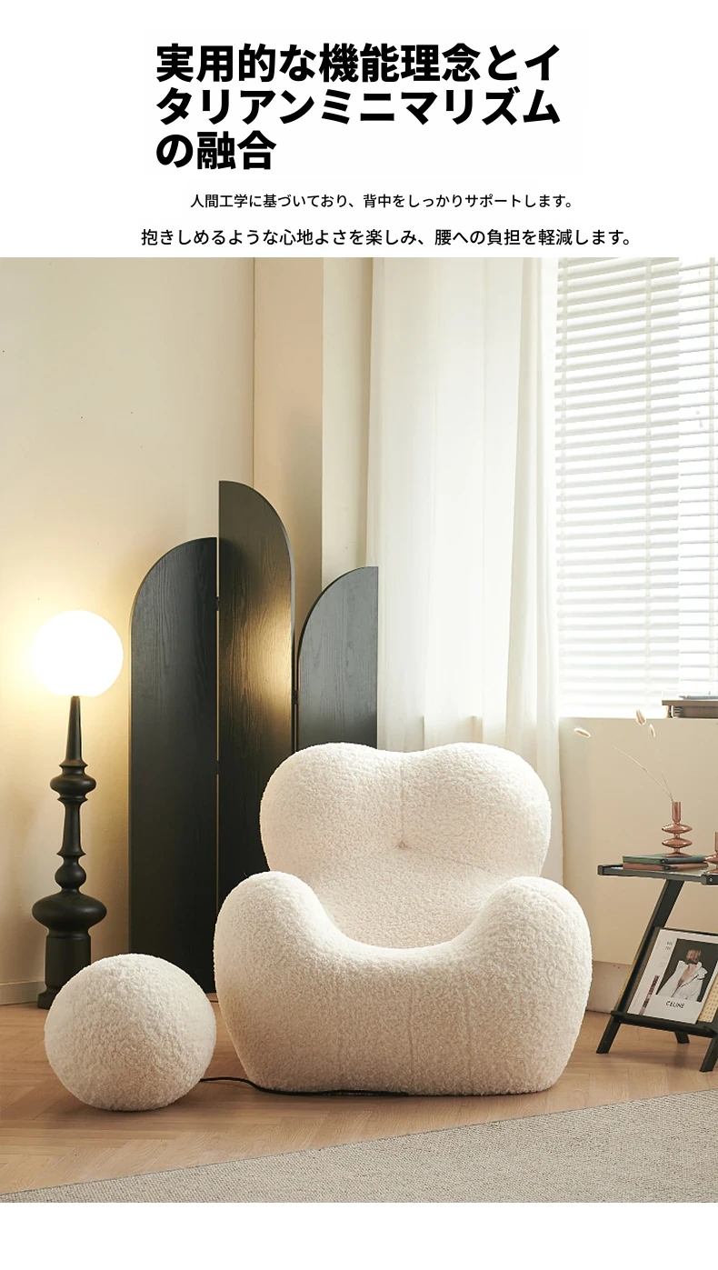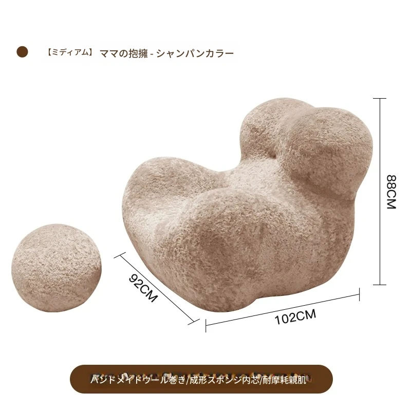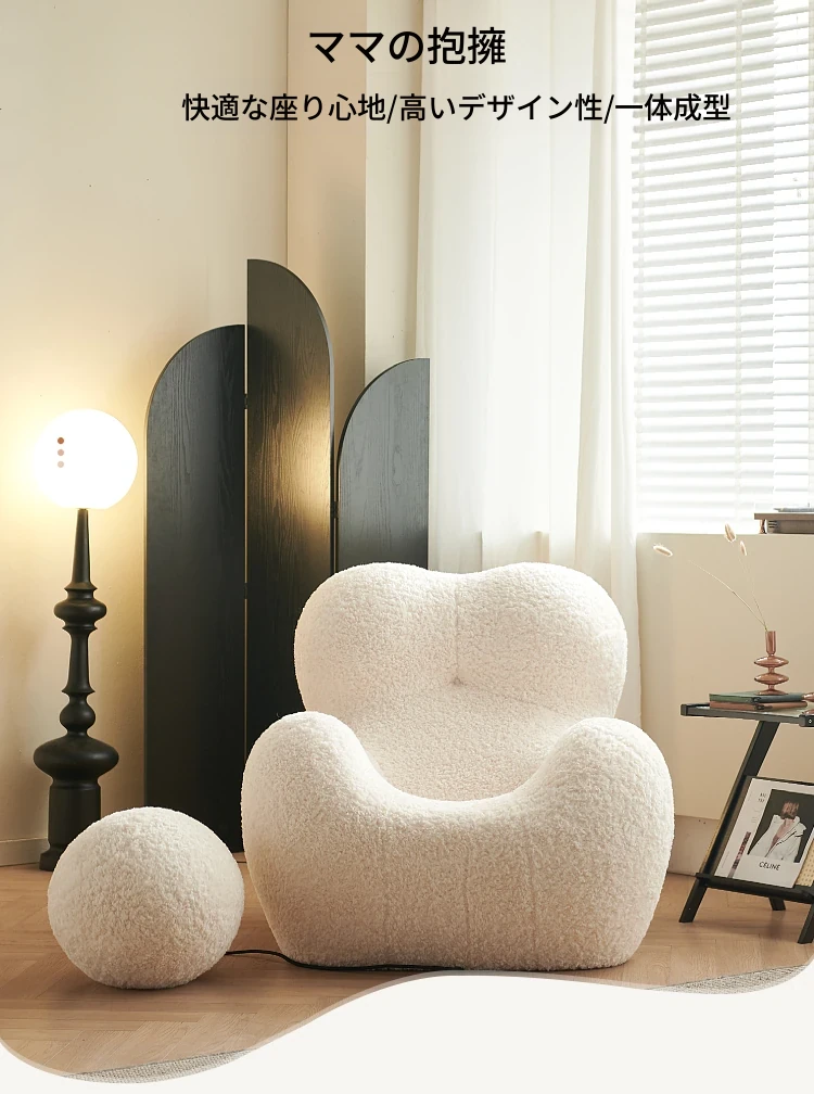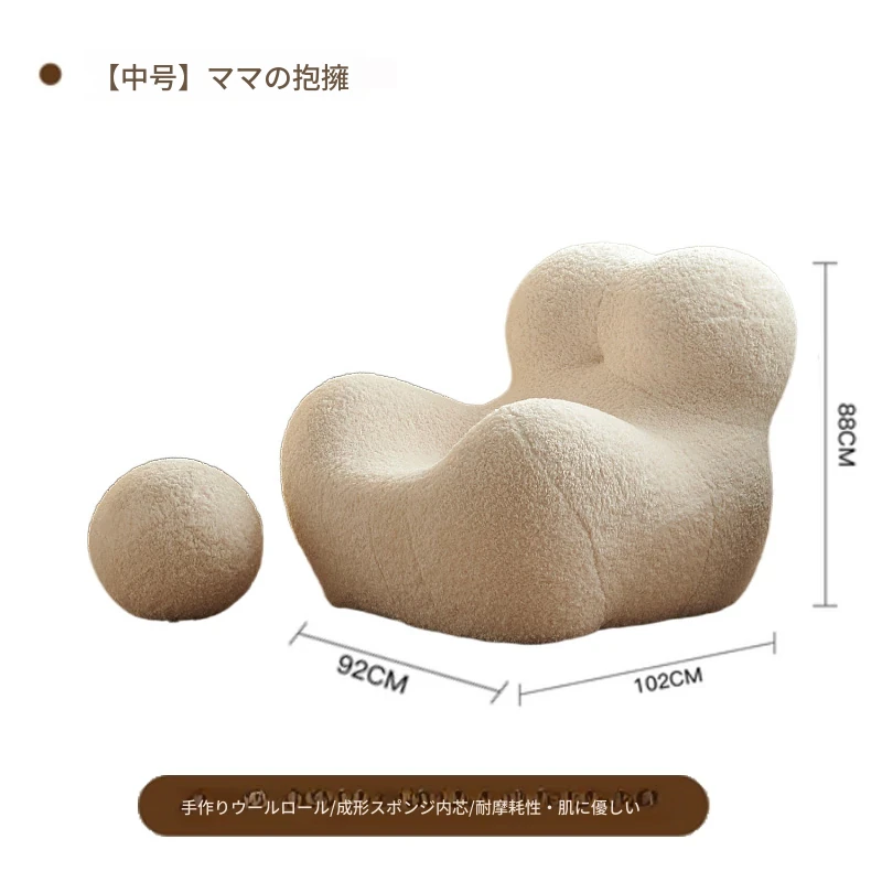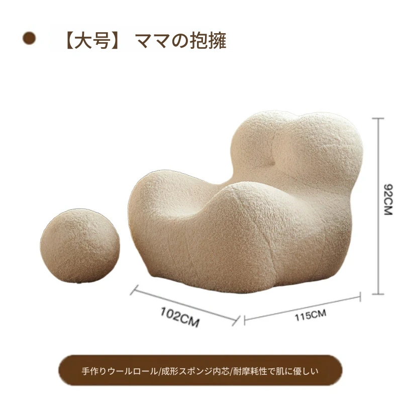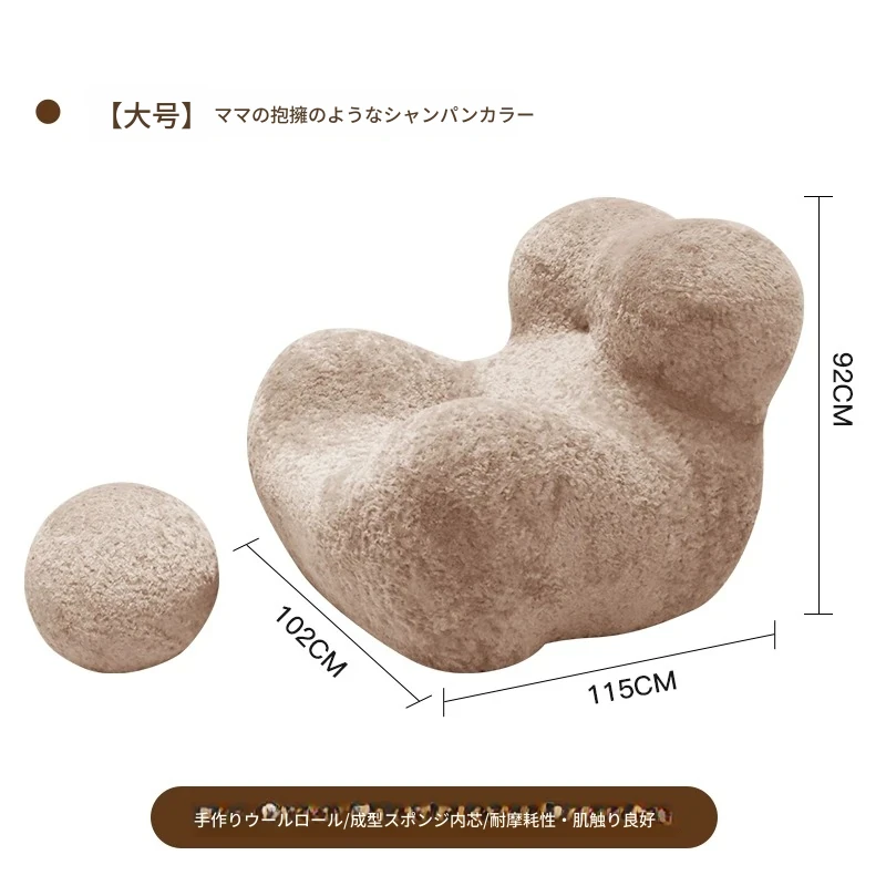 デザイナー羊毛カールママの抱擁、モダンミニマリストのラクダの毛、クリーミー風のリラックスソファチェア。心地よい温もりで、贅沢なくつろぎを提供します!