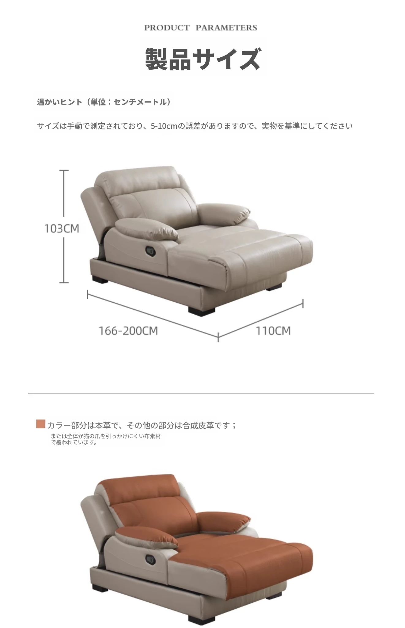 【イタリアンレザー】電動ダブルアームレストのカウチ
