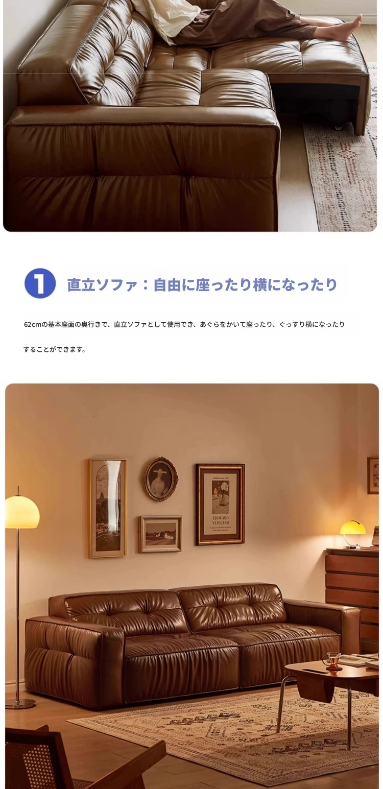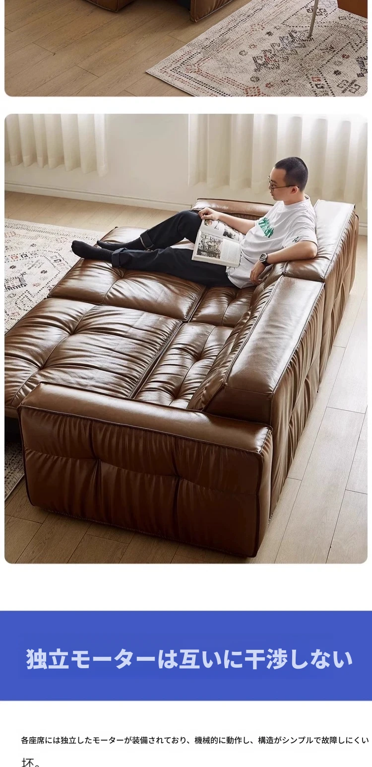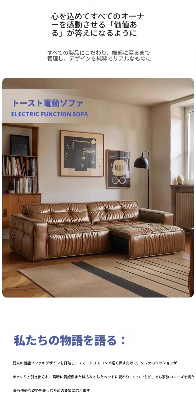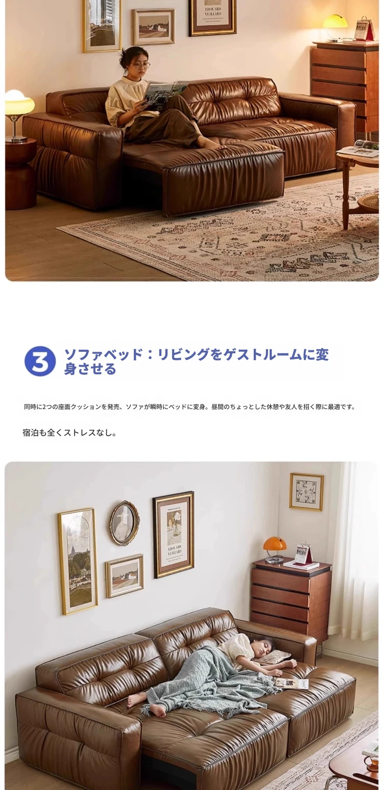 トースト電動スライドソファ|イタリアンミニマル・レトロデザイン|リビングに最適なオイルワックス本革ソファ|背もたれなしで自由なレイアウトを楽しめるソファベッド!