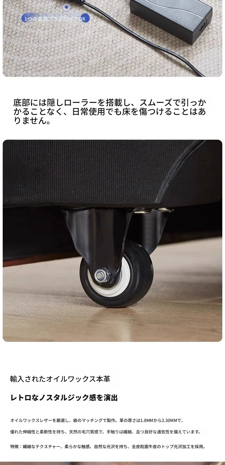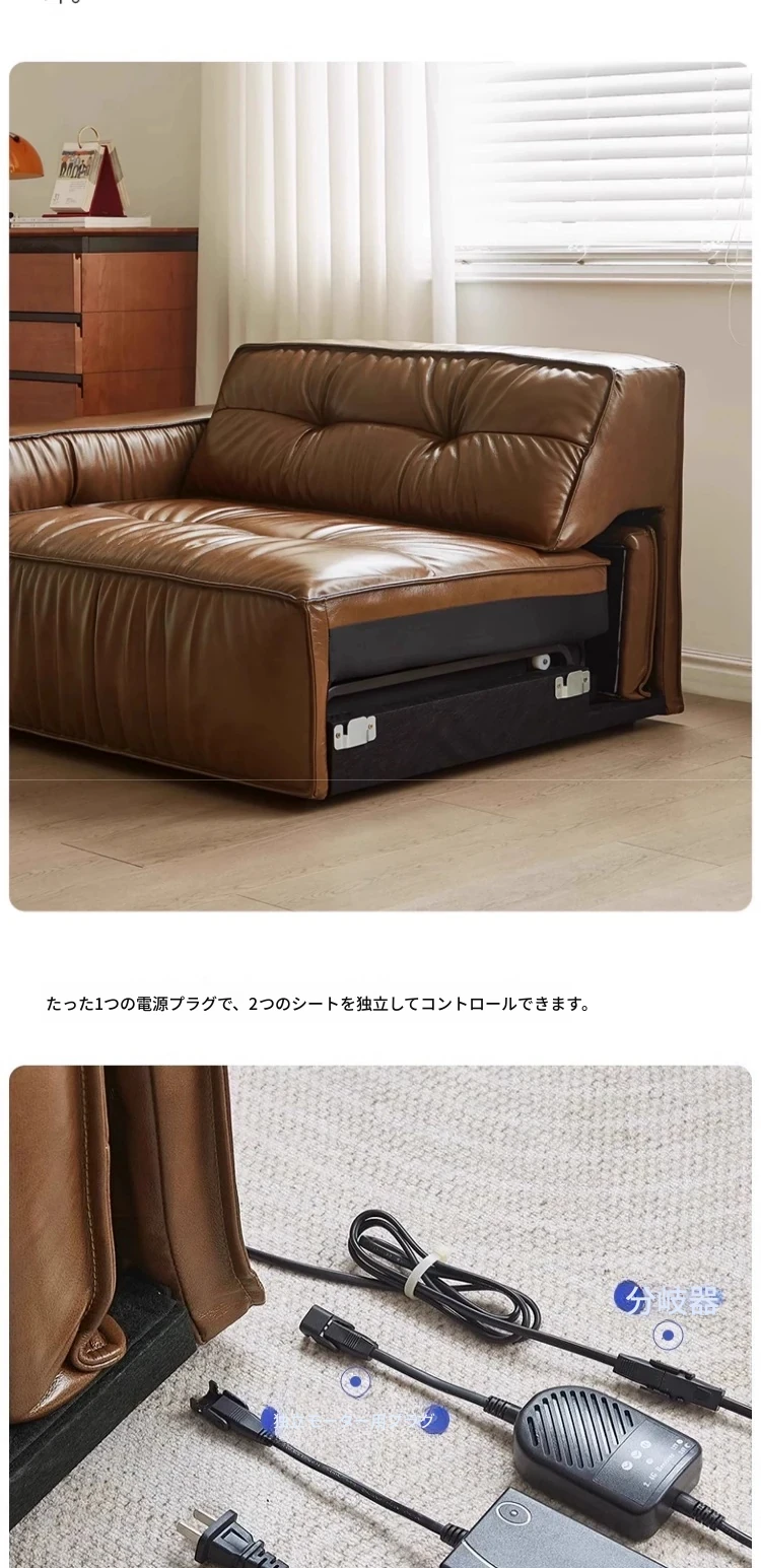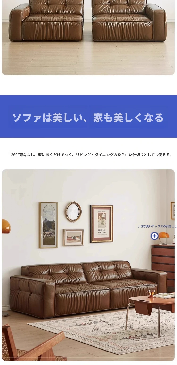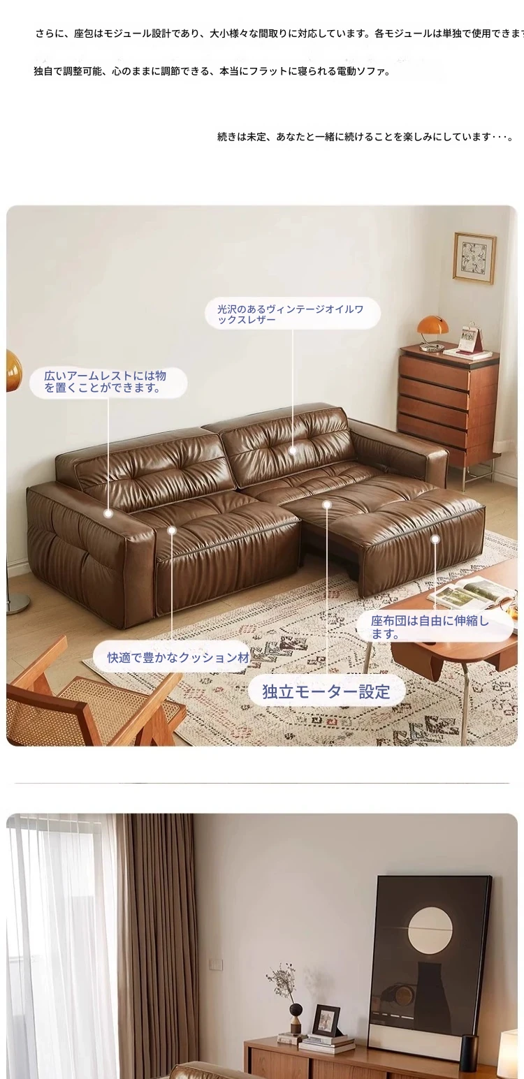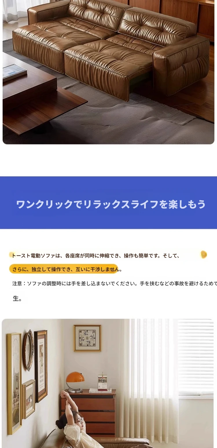 トースト電動スライドソファ|イタリアンミニマル・レトロデザイン|リビングに最適なオイルワックス本革ソファ|背もたれなしで自由なレイアウトを楽しめるソファベッド!