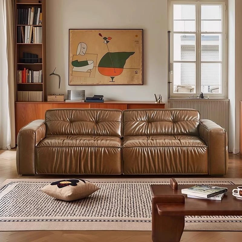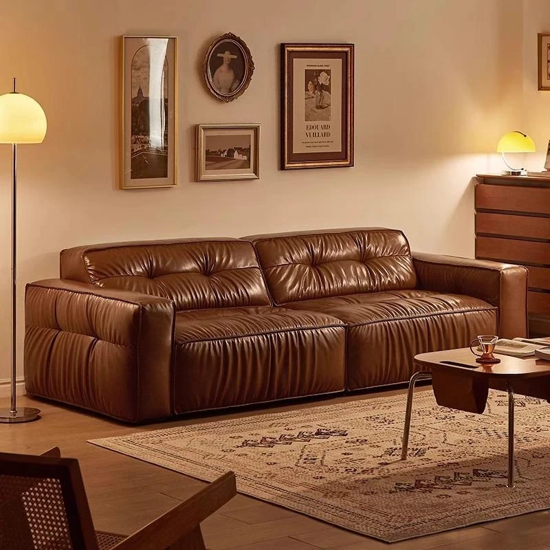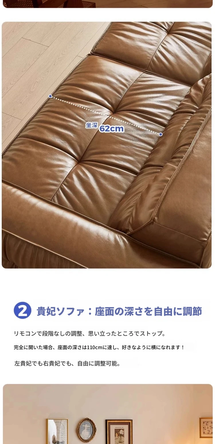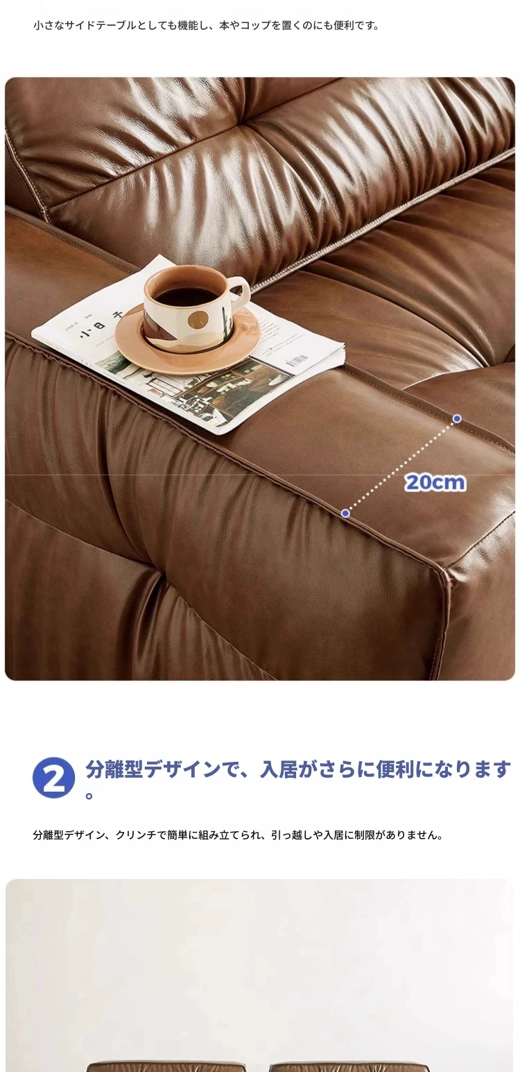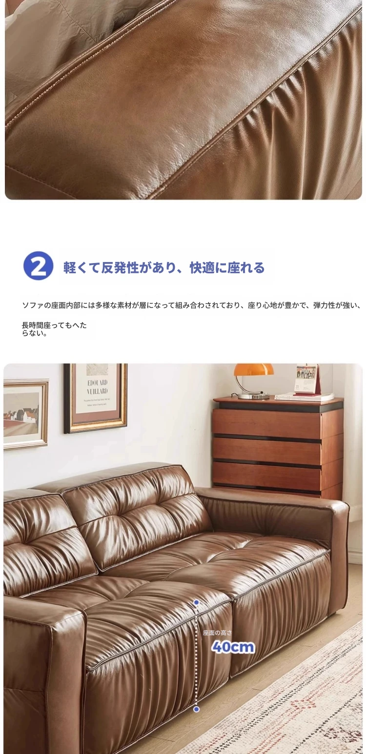 トースト電動スライドソファ|イタリアンミニマル・レトロデザイン|リビングに最適なオイルワックス本革ソファ|背もたれなしで自由なレイアウトを楽しめるソファベッド!