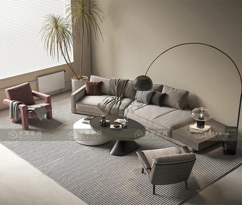 イタリアンミニマリズムの別荘スタイル、平面モデルルーム!ホテルロビーや販売所に最適な、洗練された直排ピアノキーソファ。リラックス空間を演出し、上質なひとときを提供します。