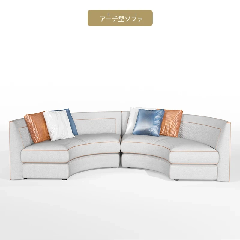 イタリアンミニマリストの波紋デザインソファ - ユニークな形状で、民宿や美容院、医療美のロビーに最適なアーチ型布製ソファ。お洒落な空間を演出し、心地よいひとときを提供します!