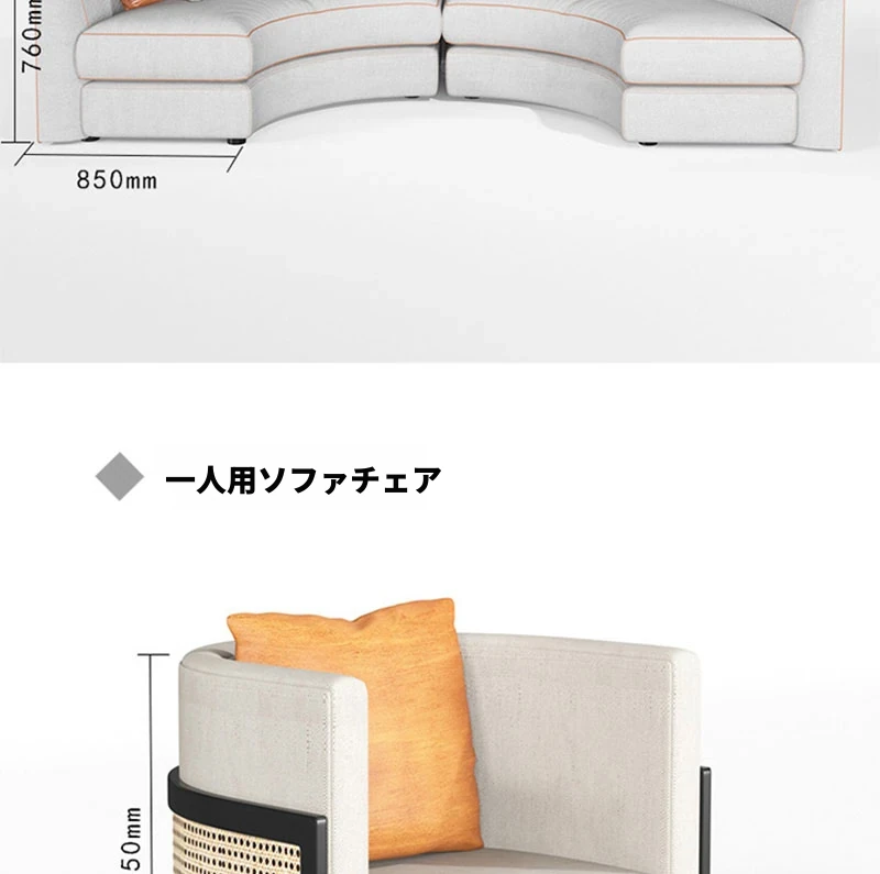 クリーム風の布製ワンワン一人用ソファ|モダンでシンプルなデザイン|寝室、バルコニー、リビングに最適なリラックスチェア|快適なひとときを演出します!