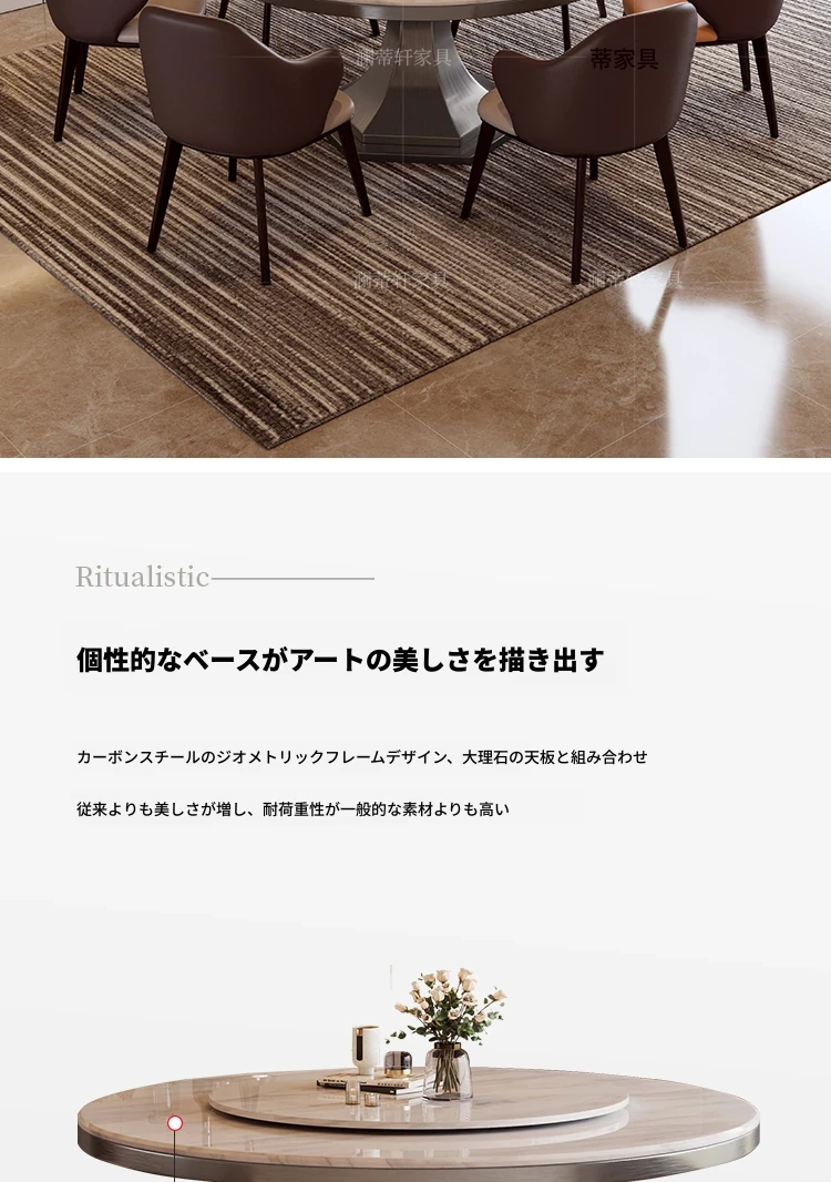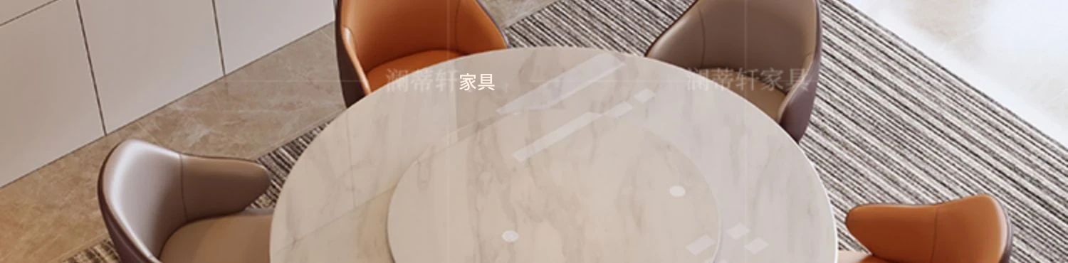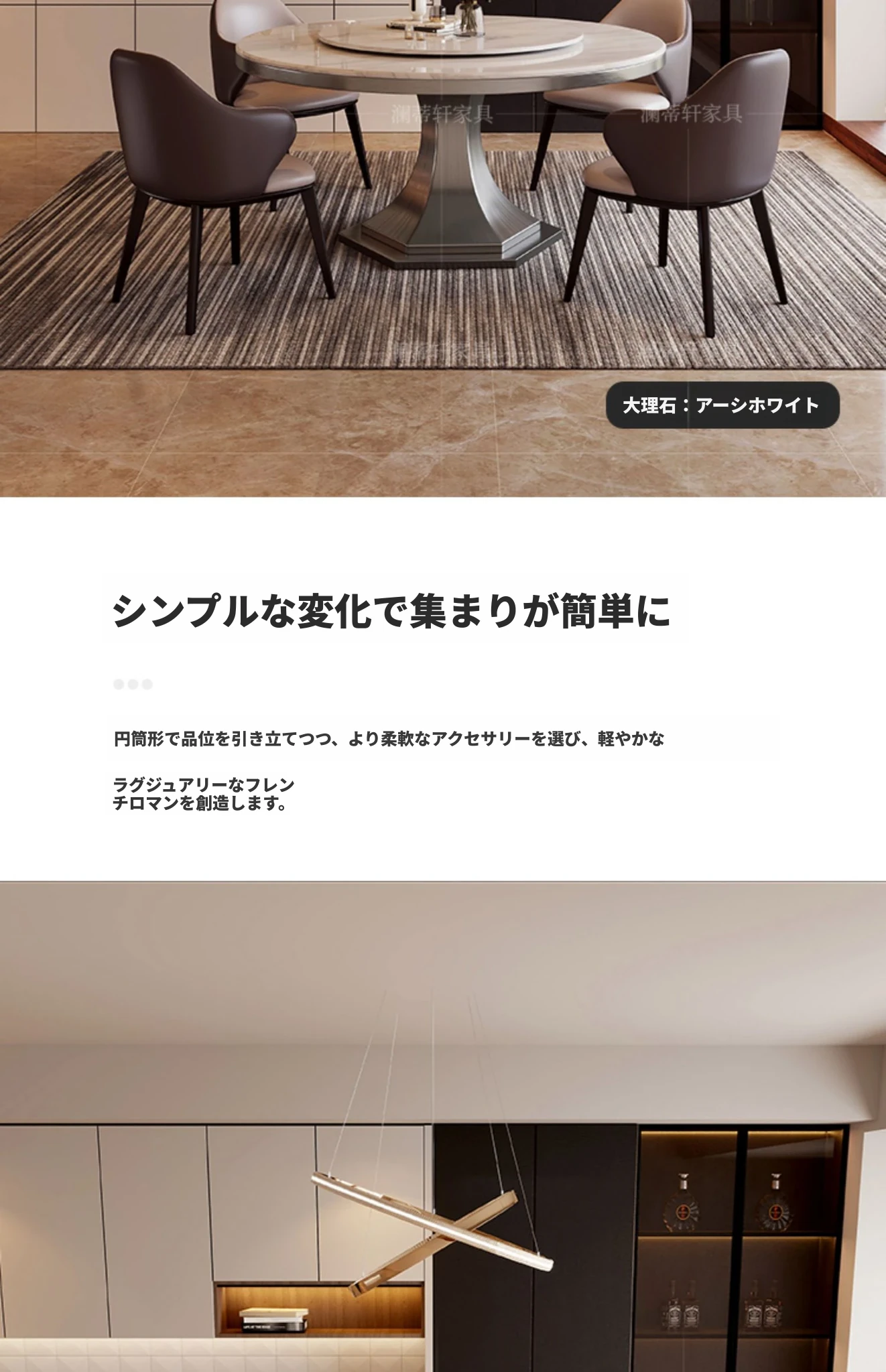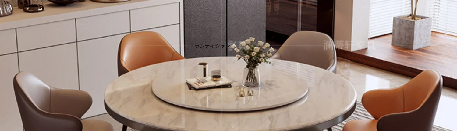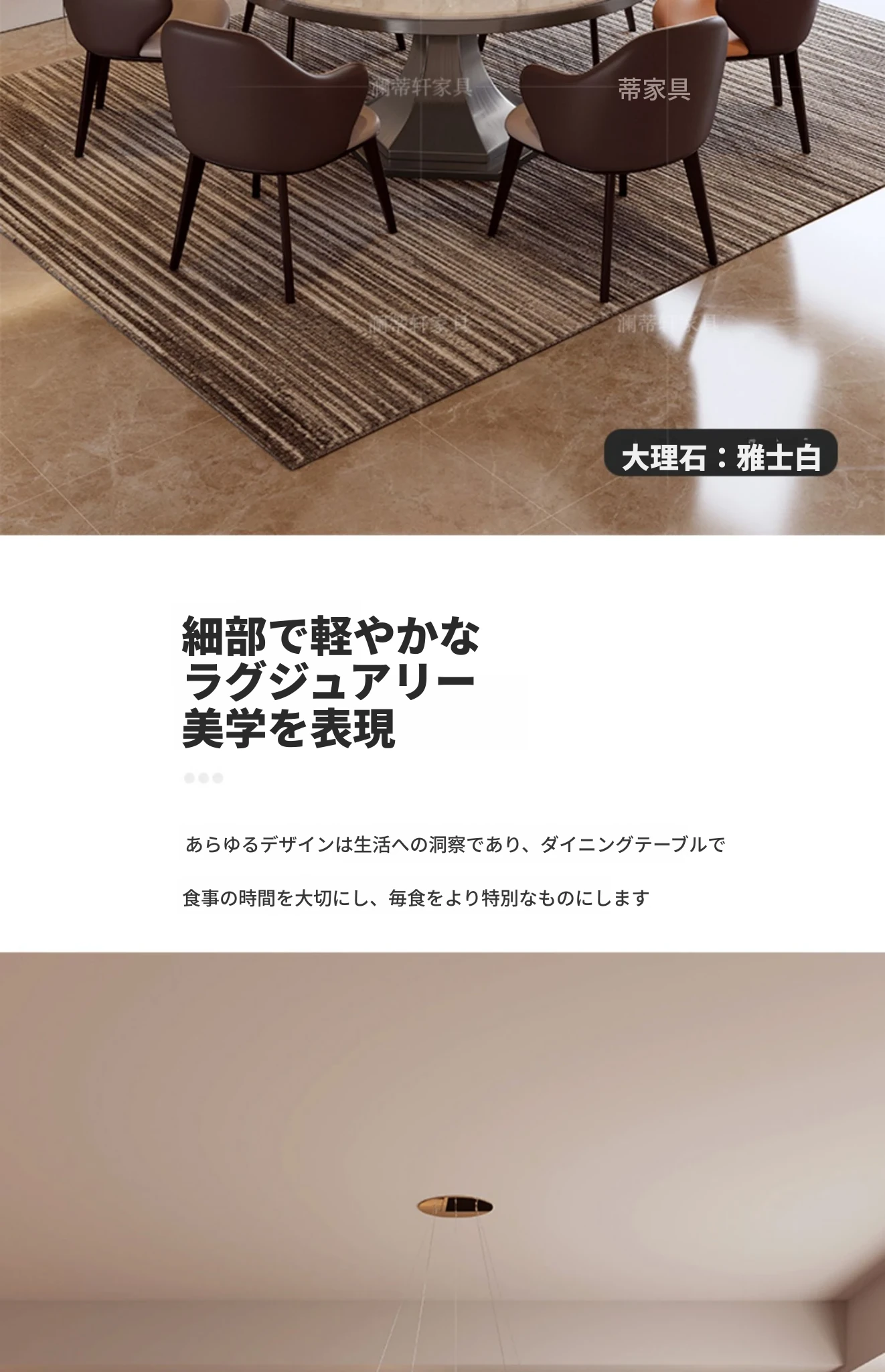 高級現代シンプルデザインの円形大理石ダイニングテーブルセット - 回転プレート付き、イタリアンラグジュアリーな雰囲気を演出する家用ダイニングテーブルとチェアの組み合わせ!