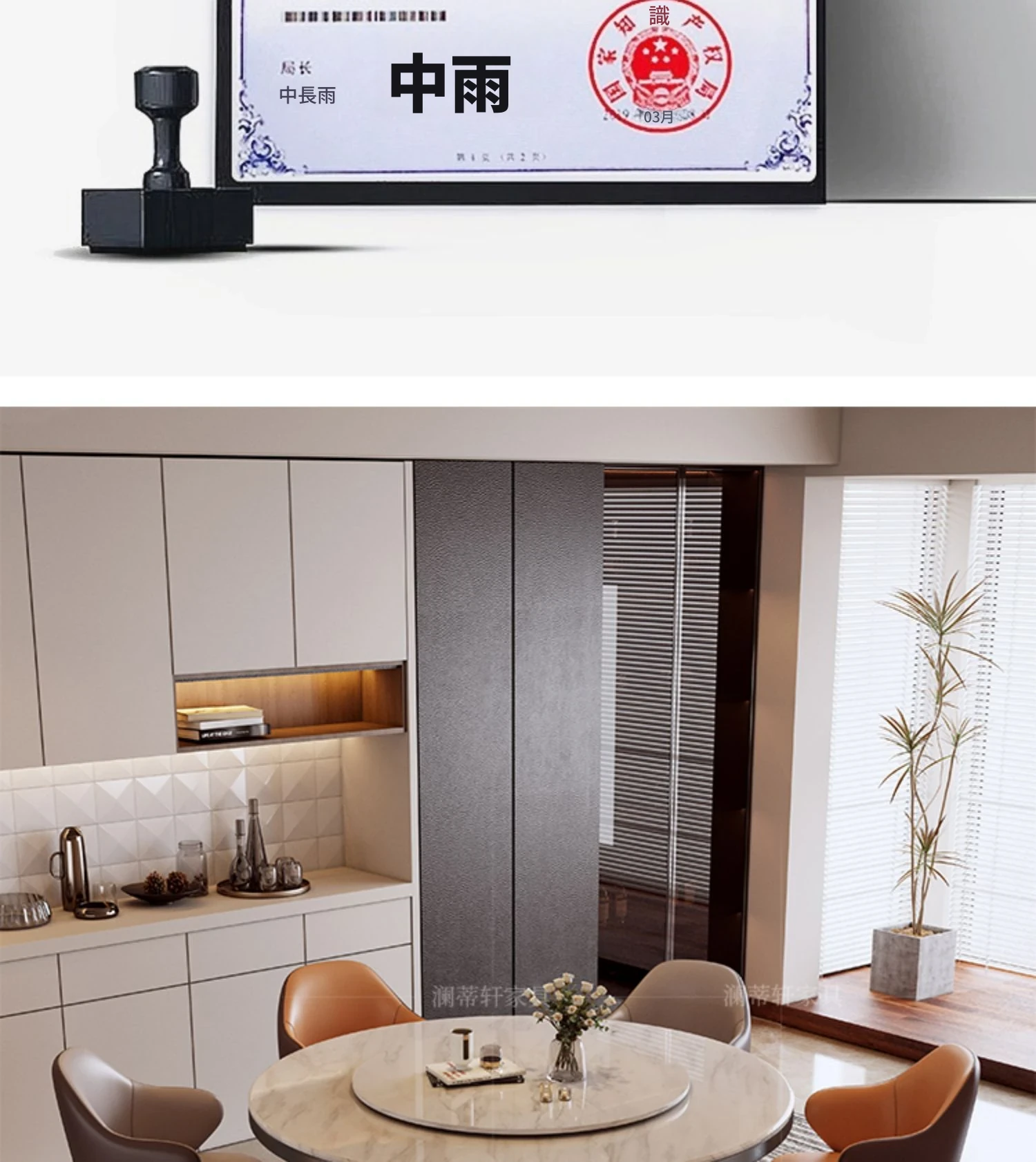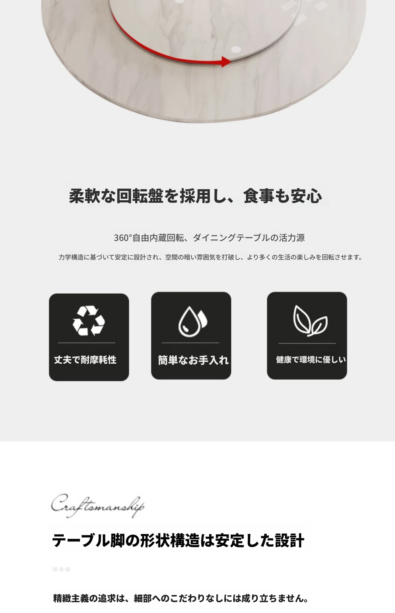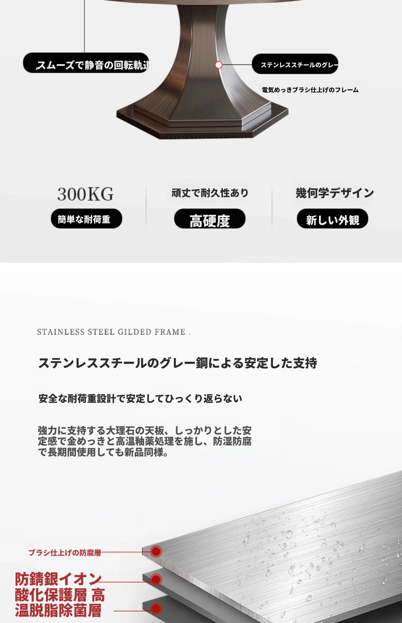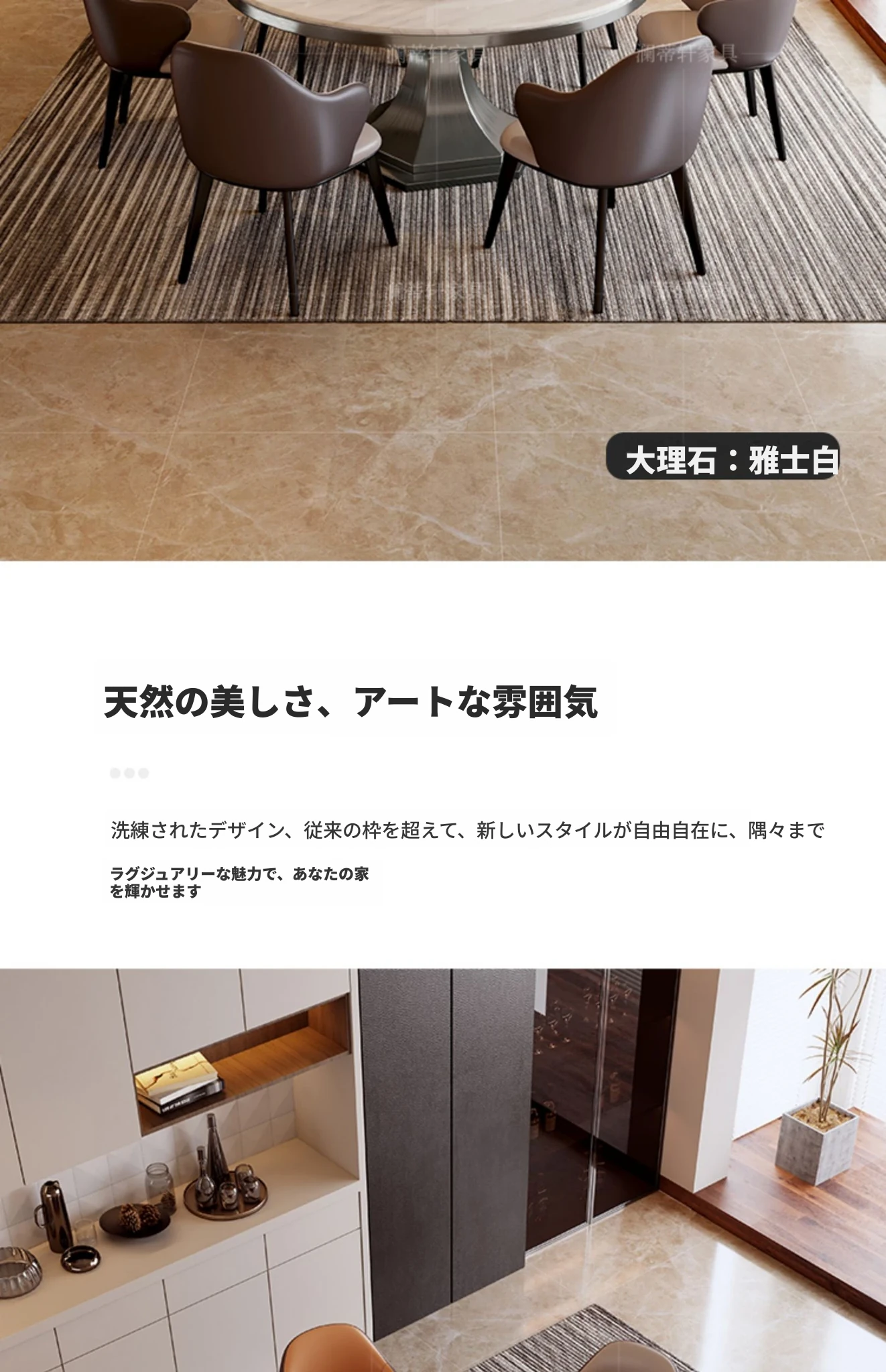 高級現代シンプルデザインの円形大理石ダイニングテーブルセット - 回転プレート付き、イタリアンラグジュアリーな雰囲気を演出する家用ダイニングテーブルとチェアの組み合わせ!