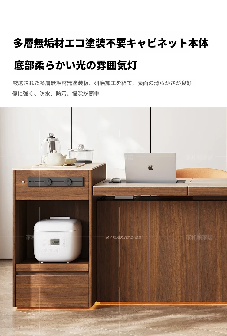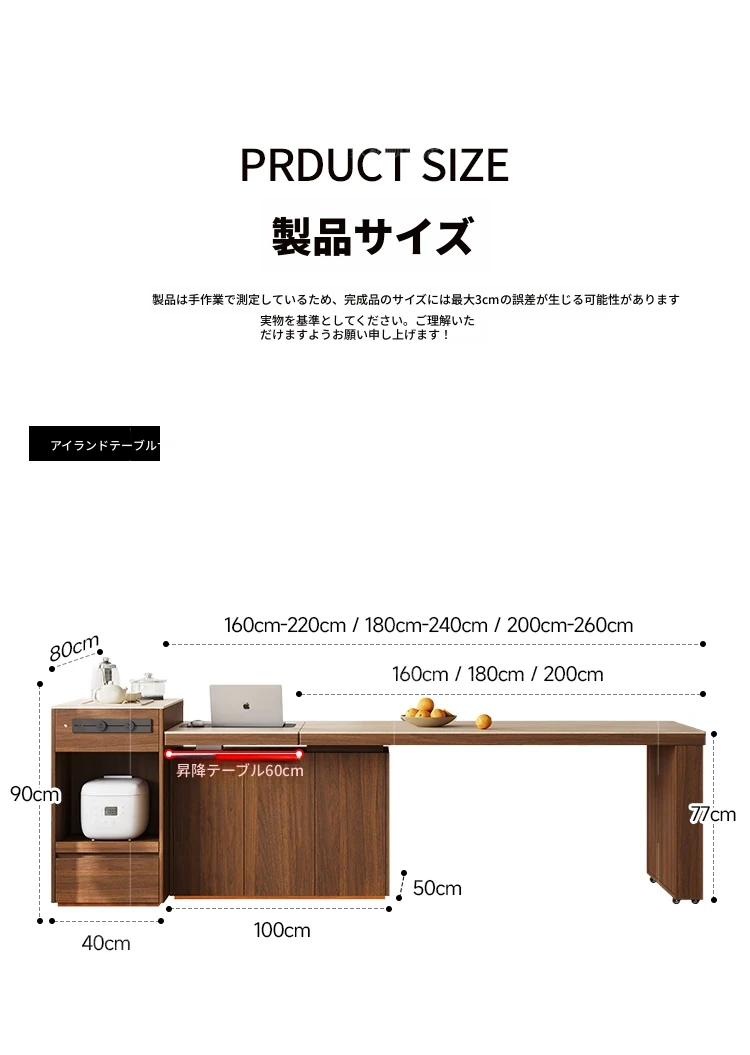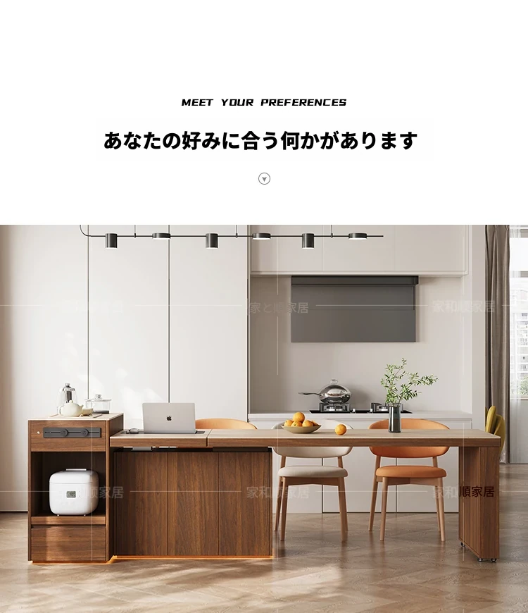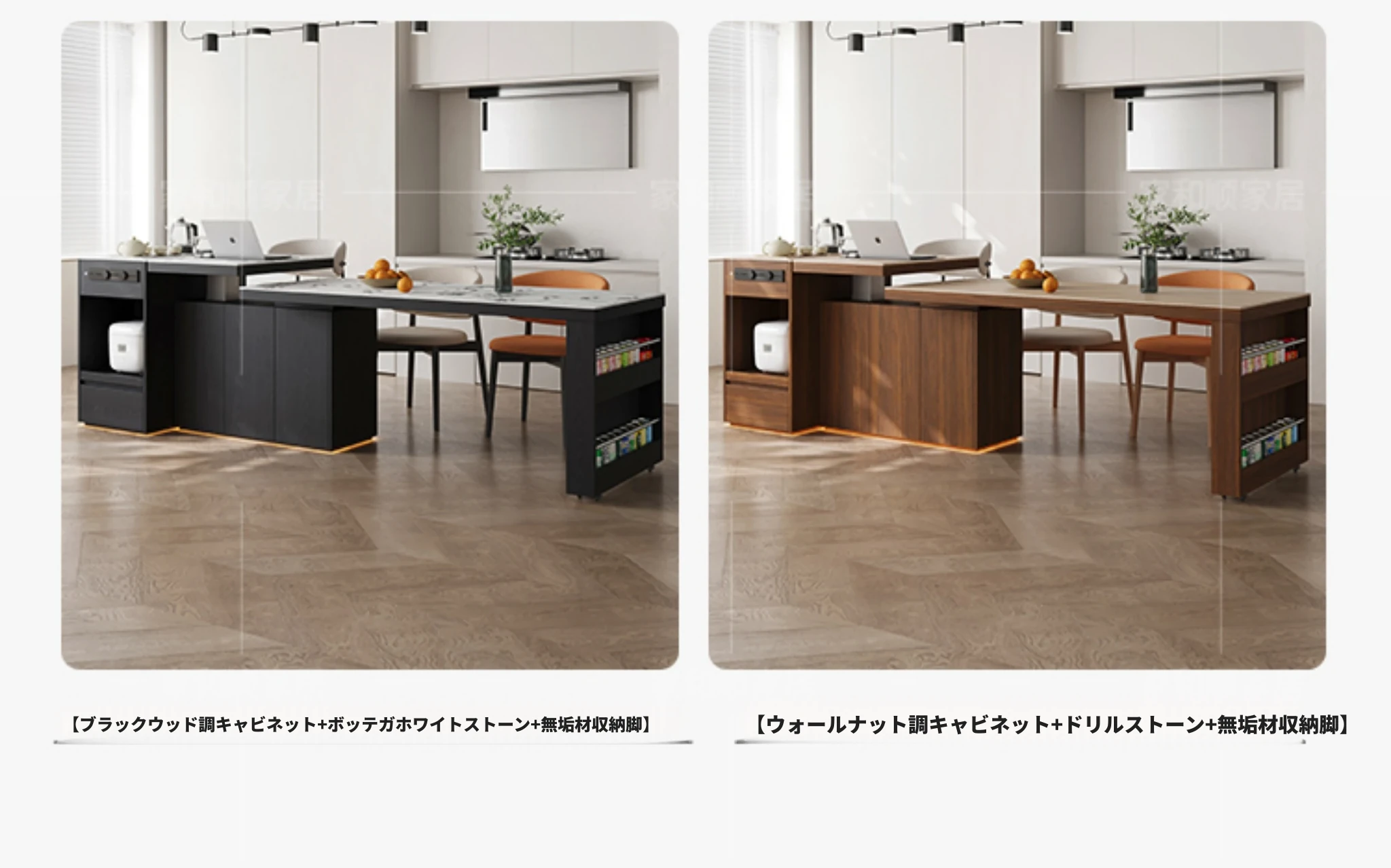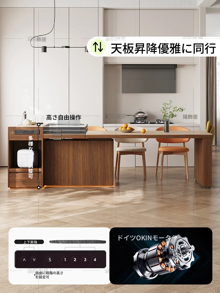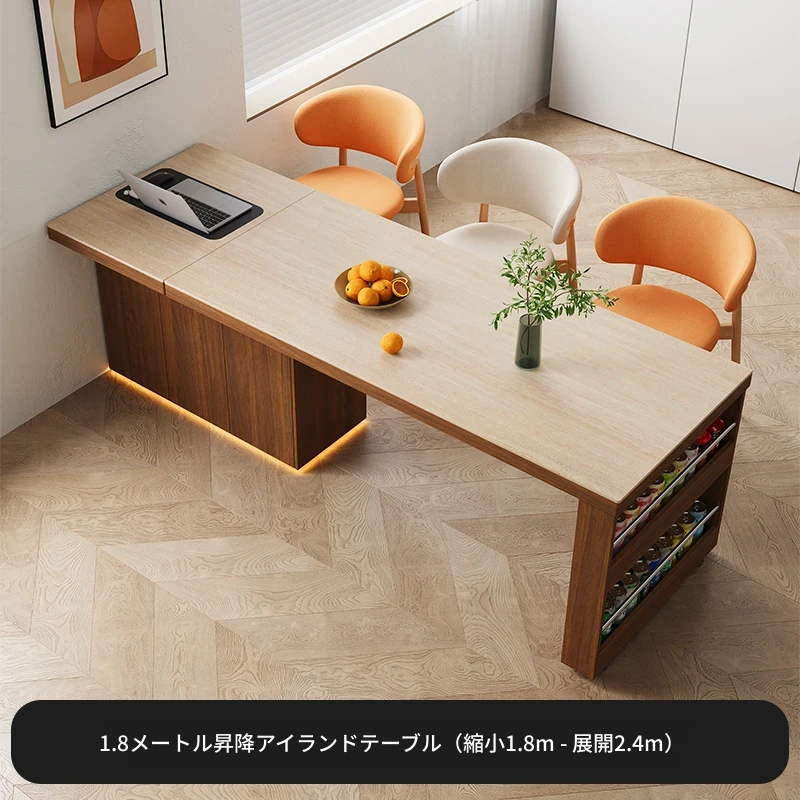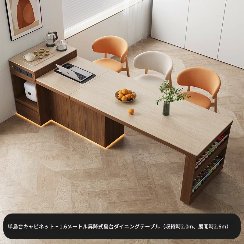 単独アイランドキャビネット+1.8メートル昇降アイランドテーブル(縮小1.8-展開2.4m)