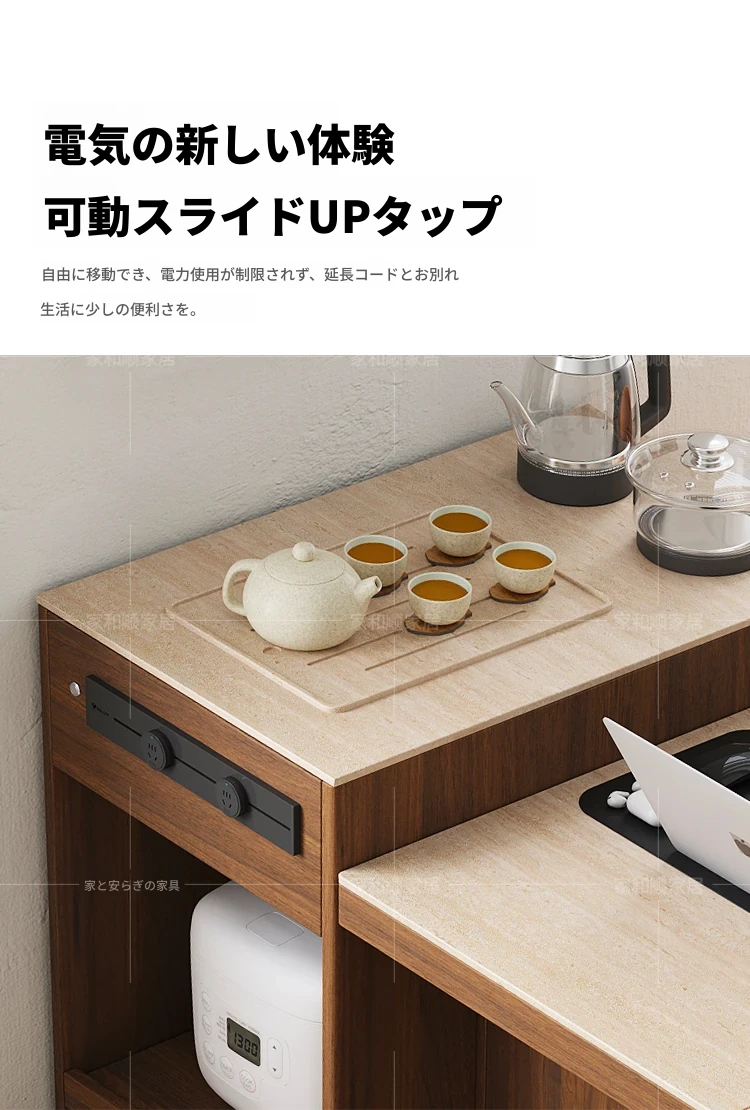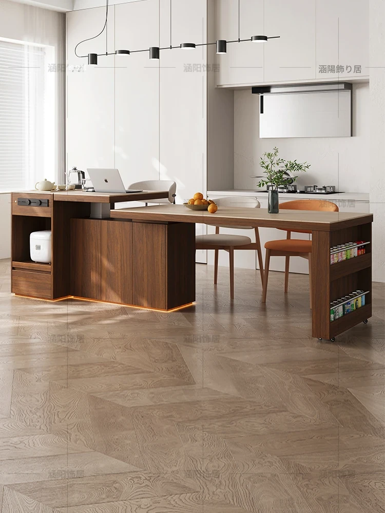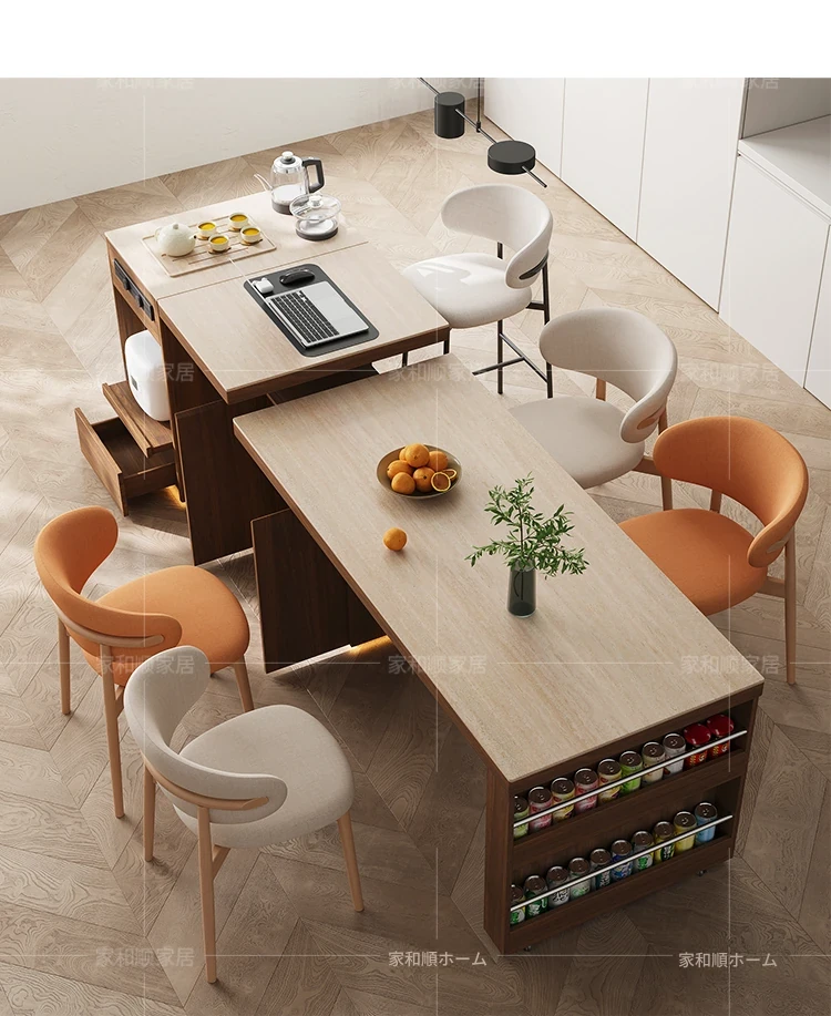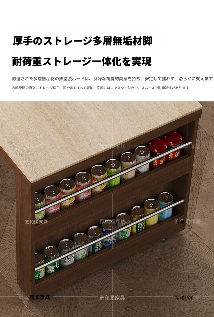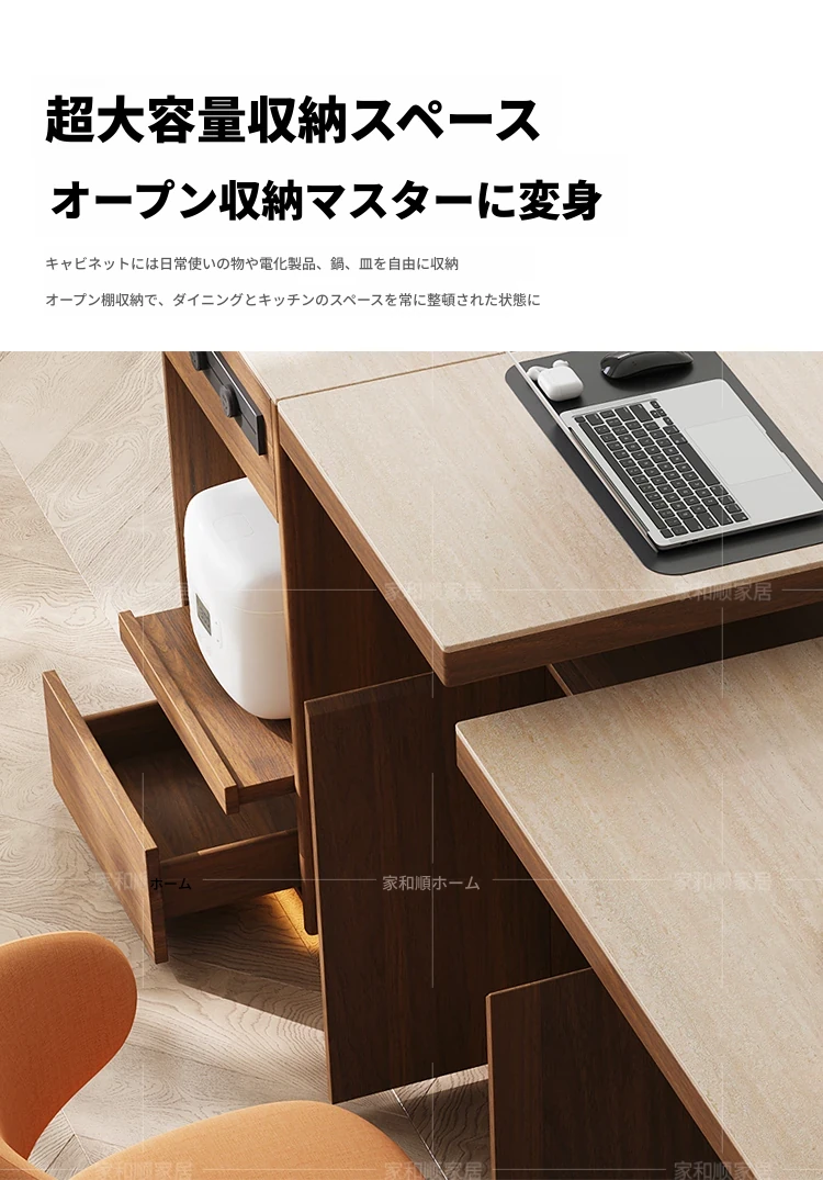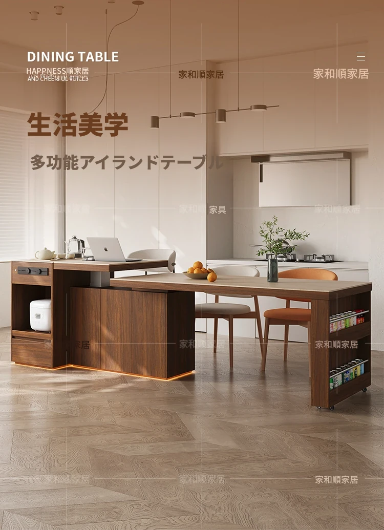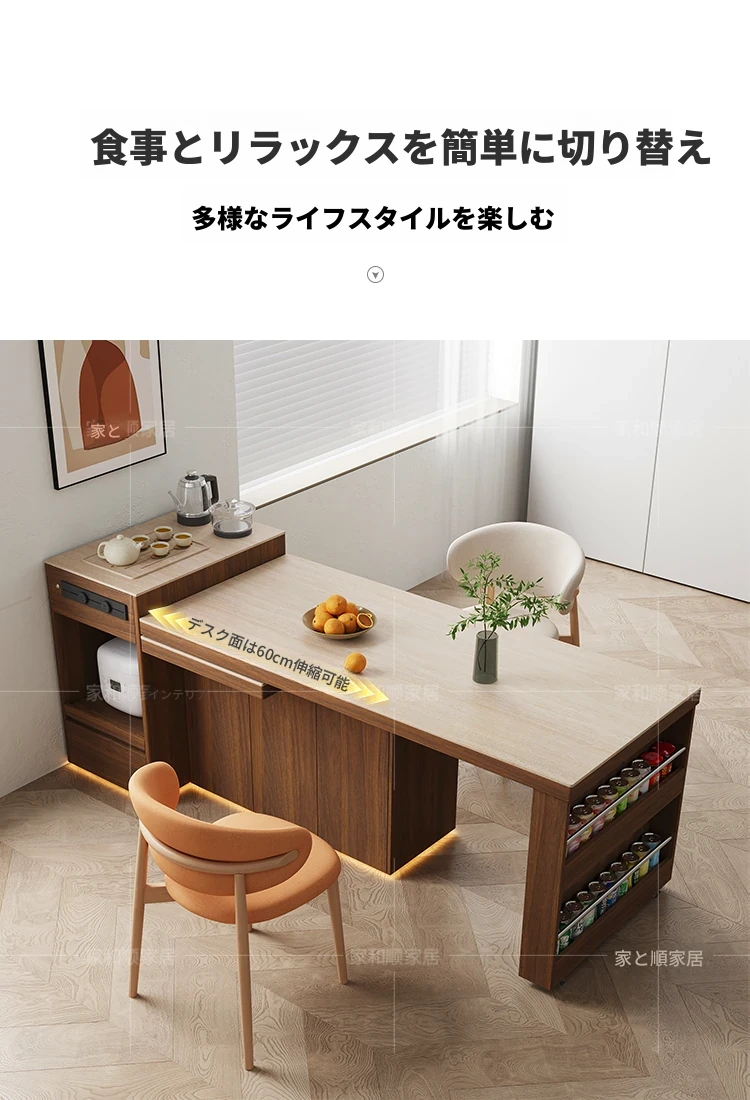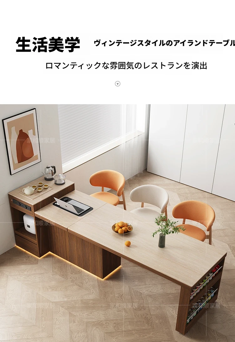 単独アイランドキャビネット+1.8メートル昇降アイランドテーブル(縮小1.8-展開2.4m)