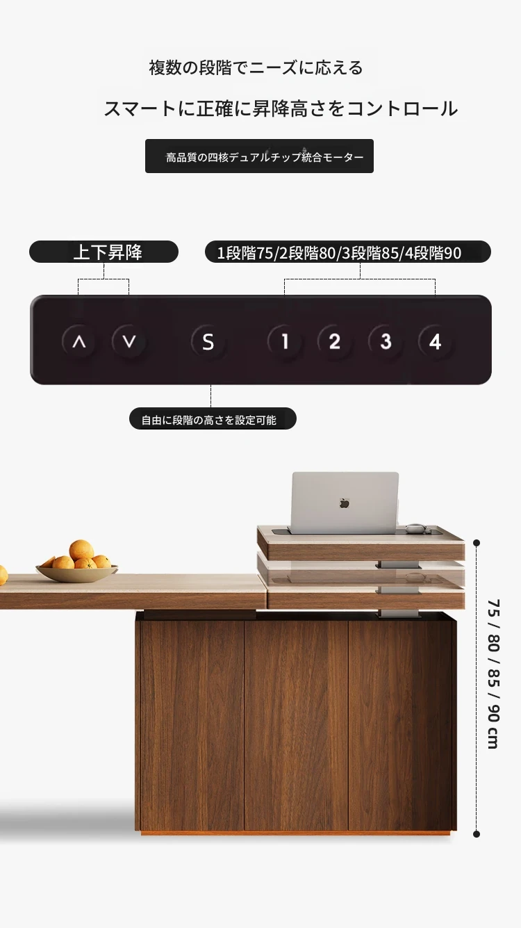 単独アイランドキャビネット+2.0メートル昇降アイランドテーブル(縮小2.0-展開2.6m)