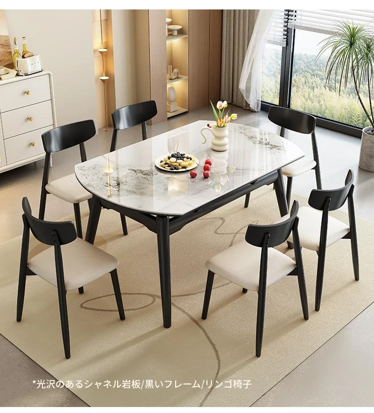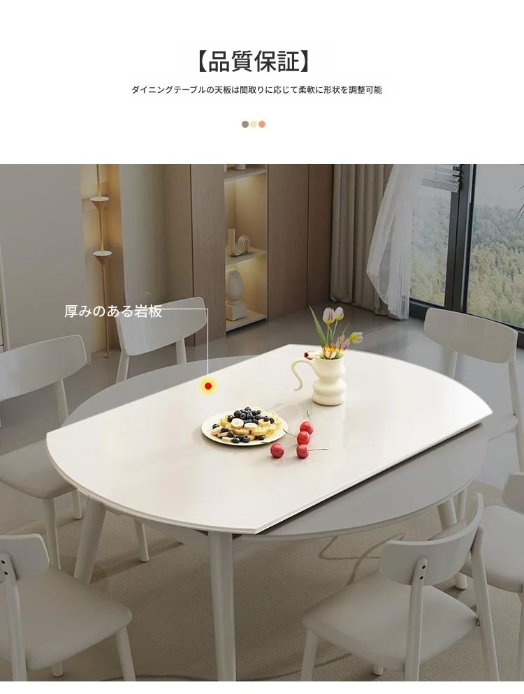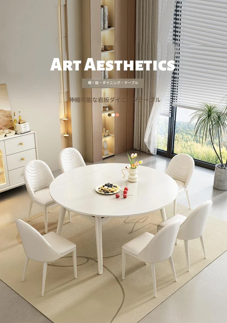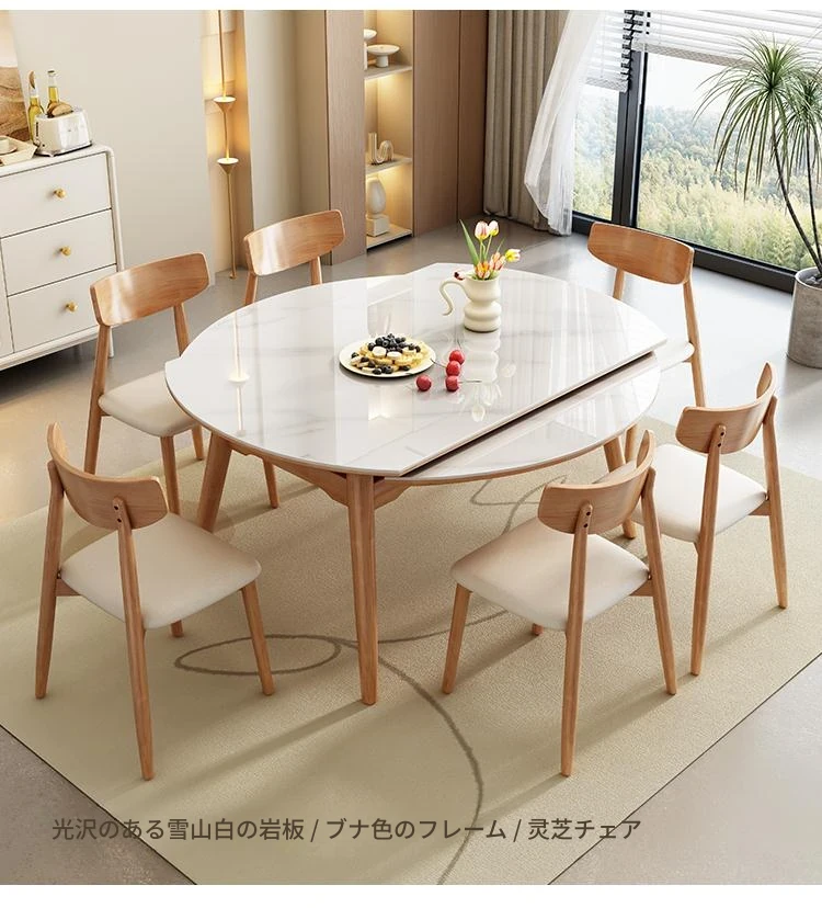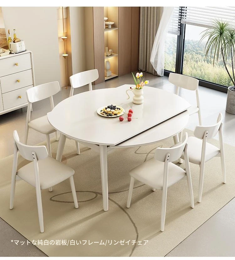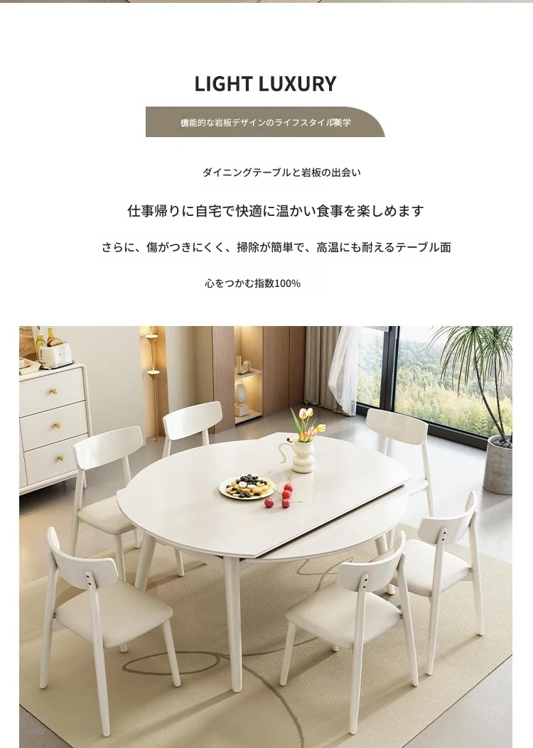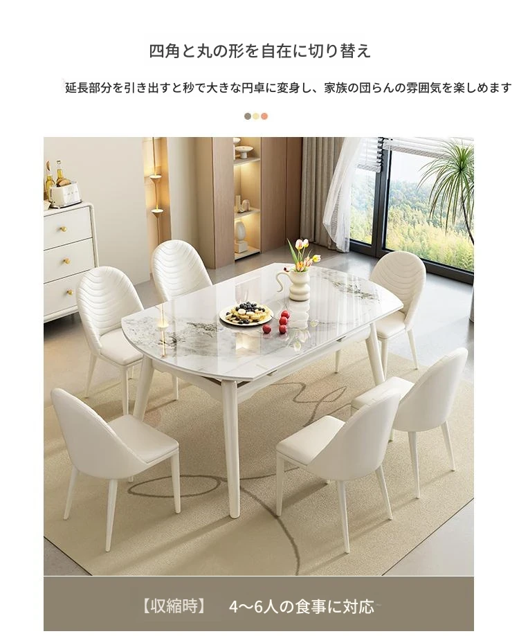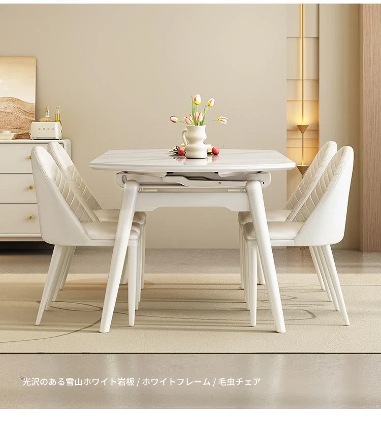 【香港送料無料】クリーム風の岩板ダイニングテーブル&チェアセット - 小型住宅向けの現代的でシンプルなデザイン、伸縮可能な天然木製ダイニングテーブルで快適な食事時間をお楽しみください!