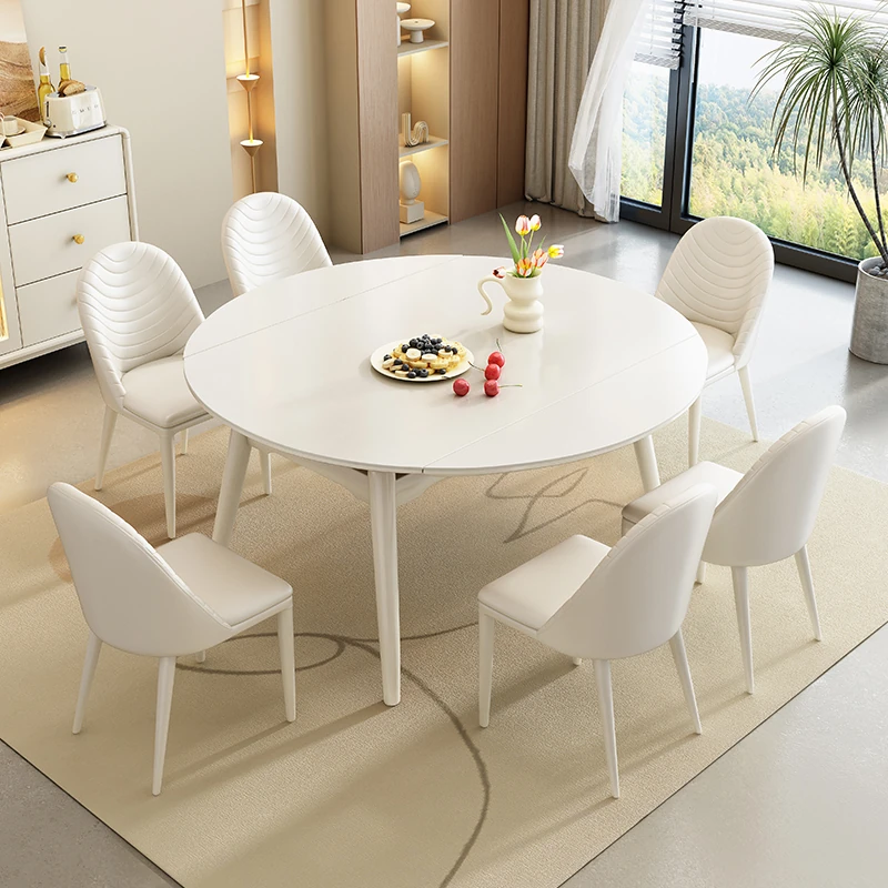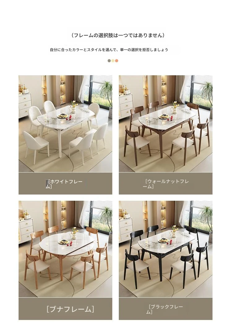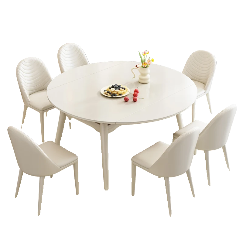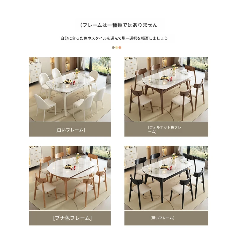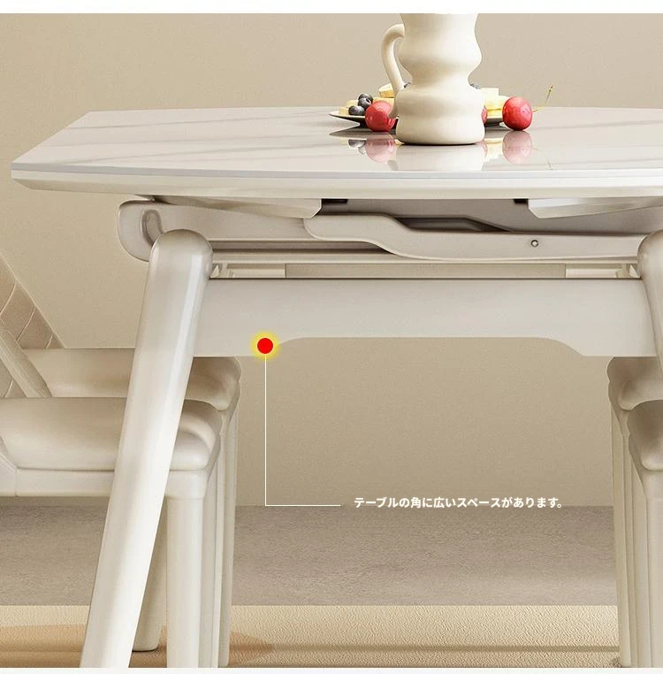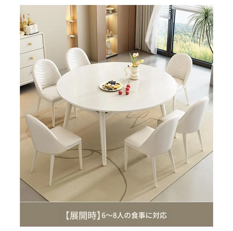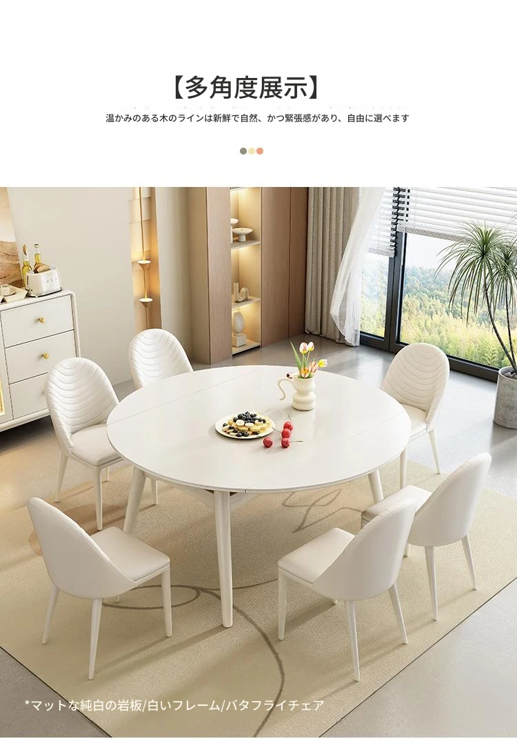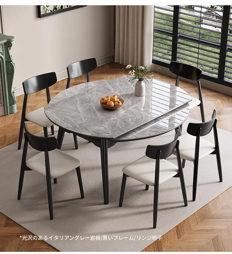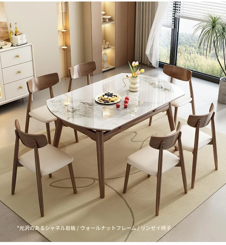 【香港送料無料】クリーム風の岩板ダイニングテーブル&チェアセット - 小型住宅向けの現代的でシンプルなデザイン、伸縮可能な天然木製ダイニングテーブルで快適な食事時間をお楽しみください!