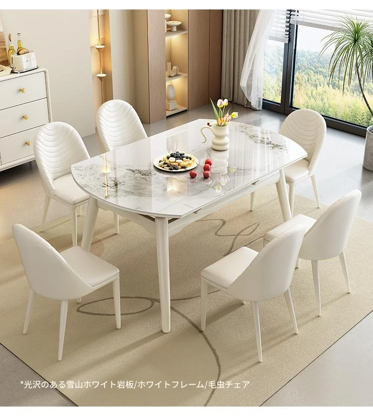 【12MM岩板】ダイニングテーブル+6毛毛虫チェア