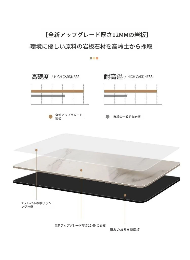 【12MM岩板】1台用ダイニングテーブル+電磁調理器