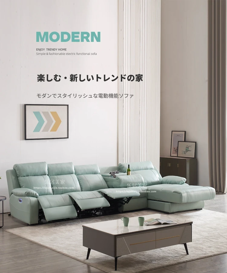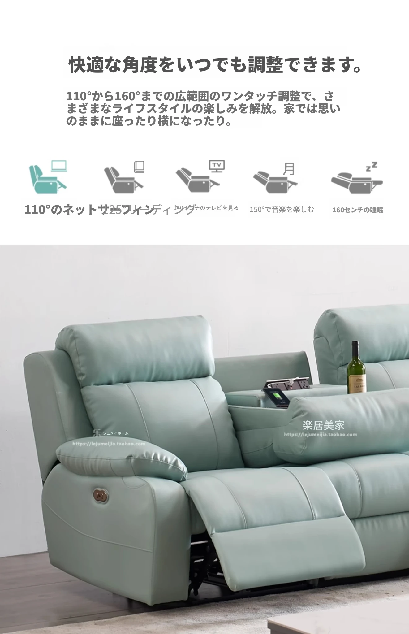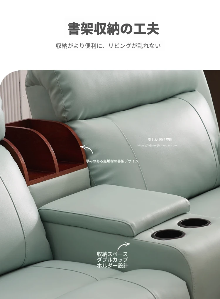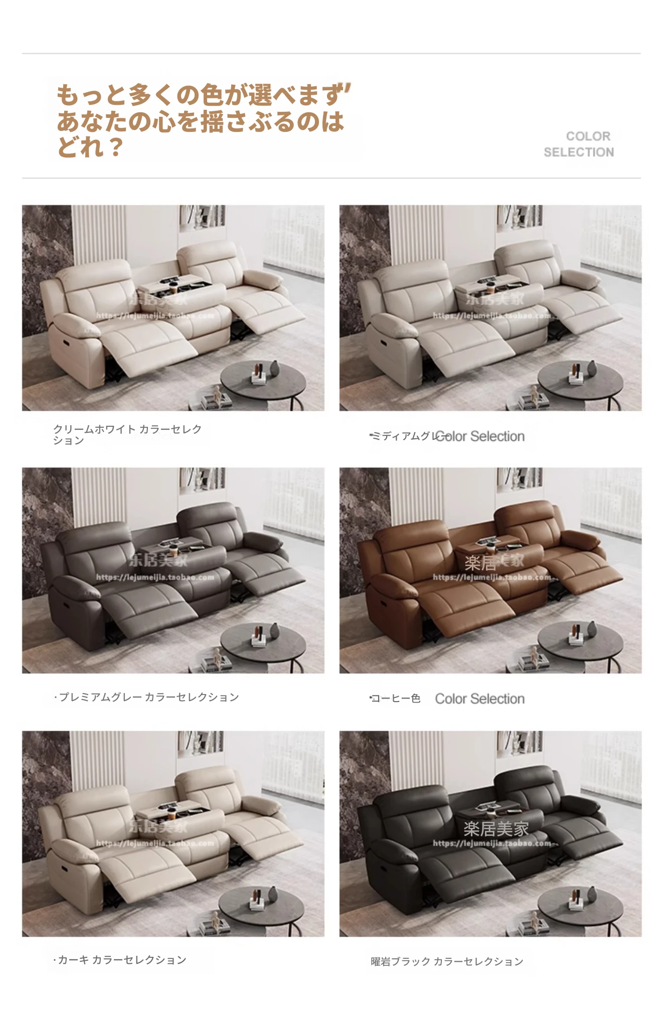 本革マルチファンクションソファー|高級レザー使用の電動リクライニング|現代的なデザインで、小さな部屋にもぴったり|家庭用シネマ体験を提供するラグジュアリーなリビング空間を実現!