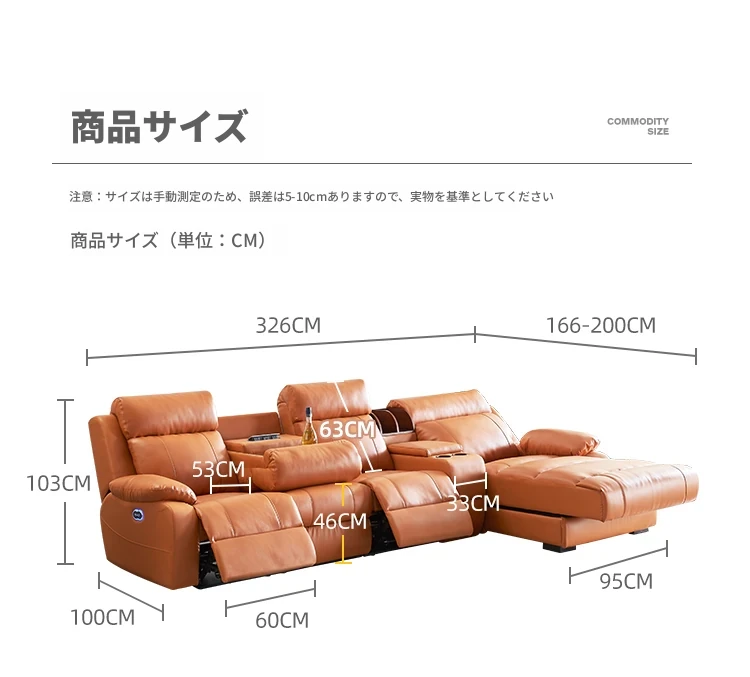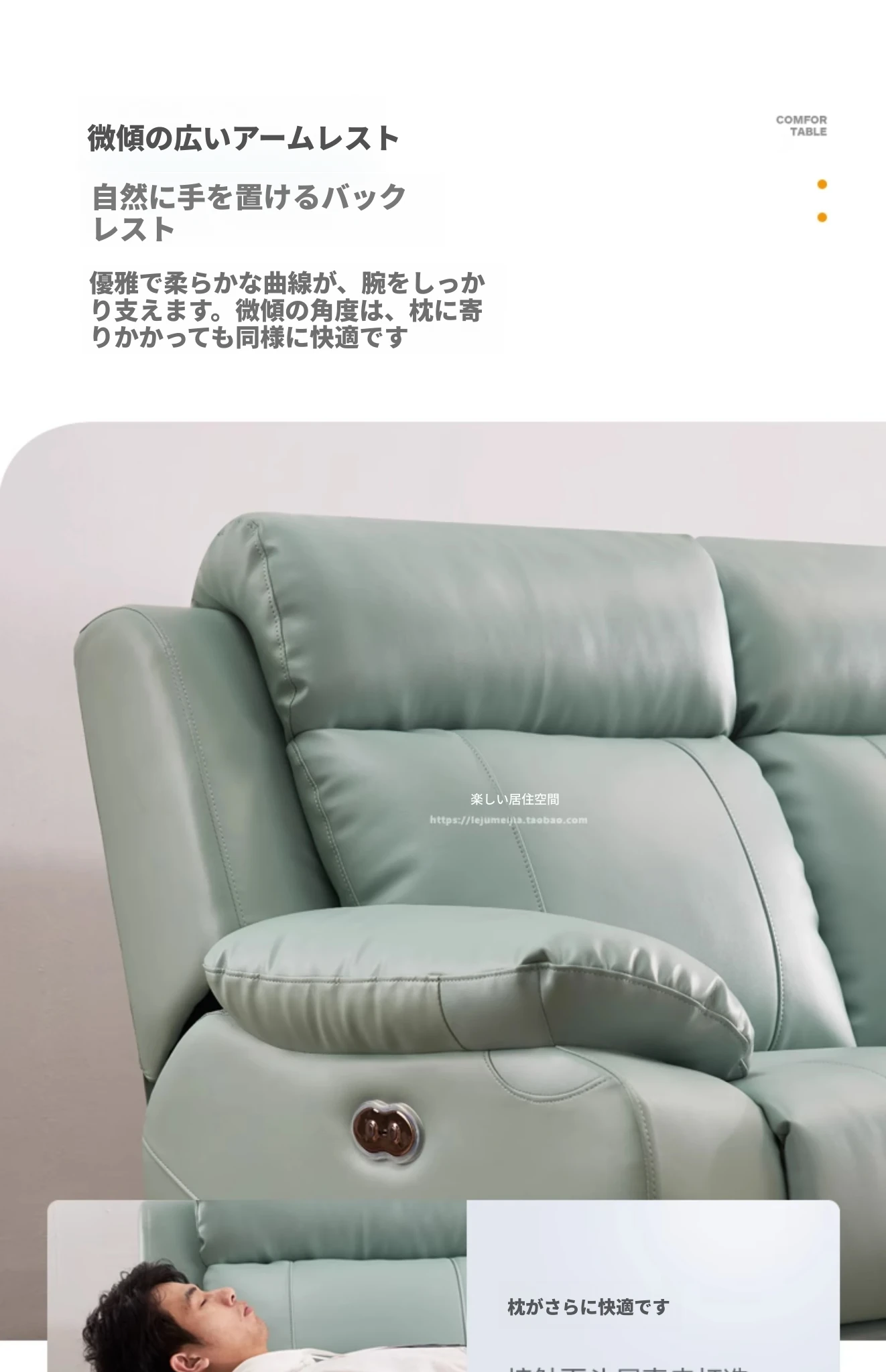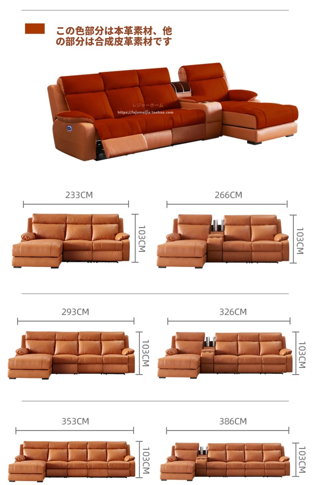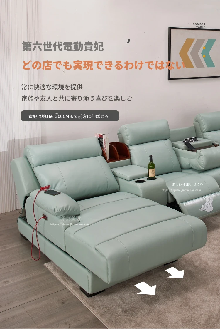本革マルチファンクションソファー|高級レザー使用の電動リクライニング|現代的なデザインで、小さな部屋にもぴったり|家庭用シネマ体験を提供するラグジュアリーなリビング空間を実現!