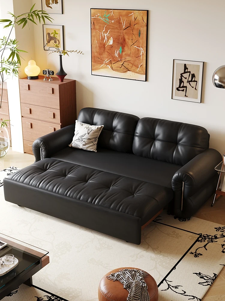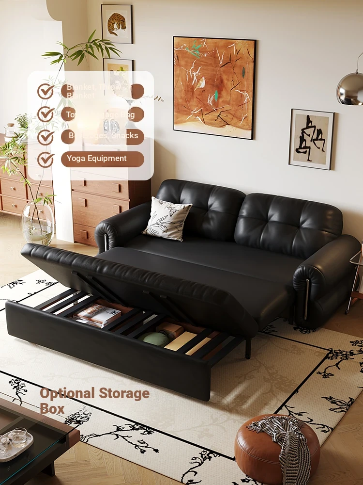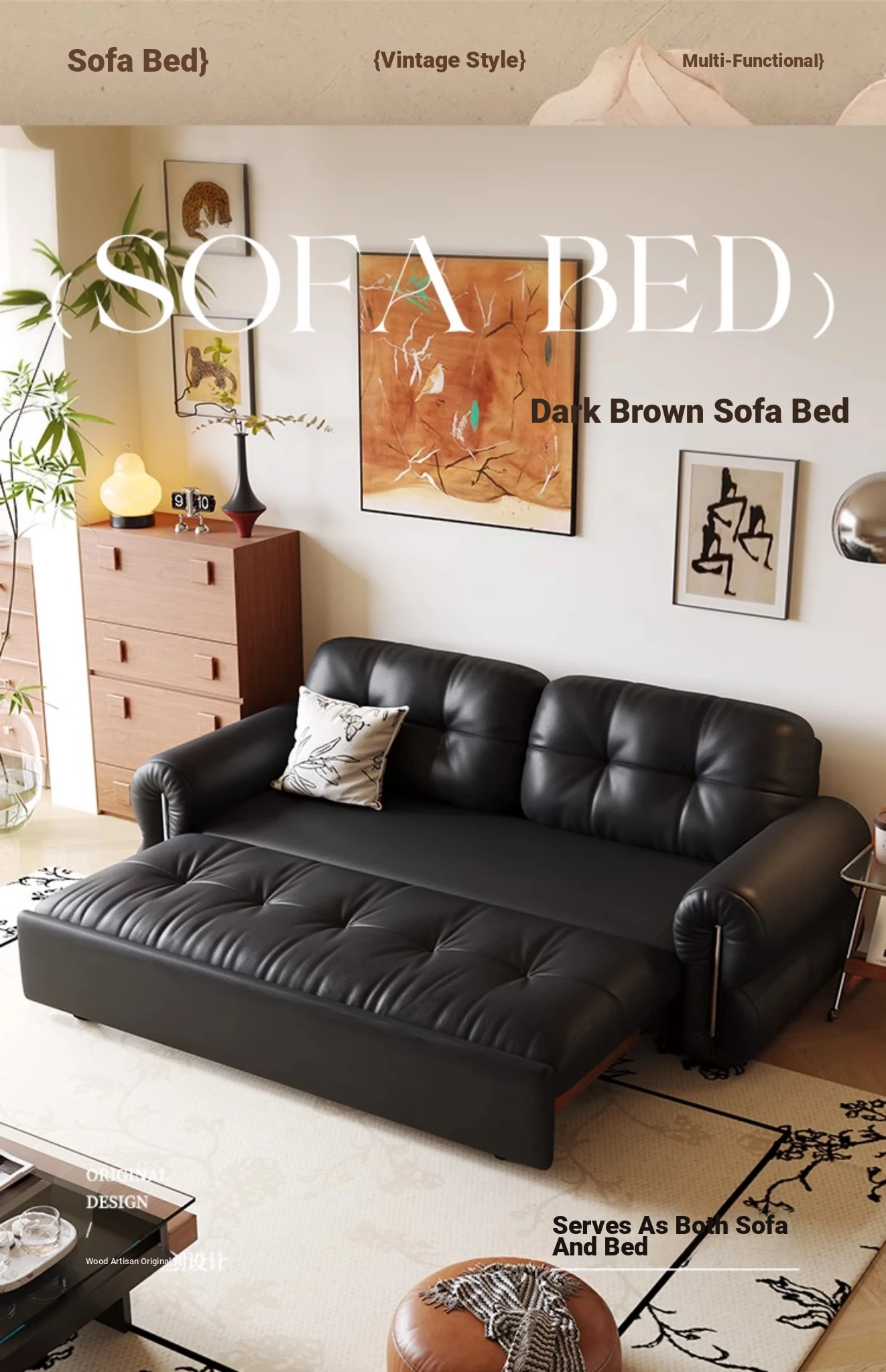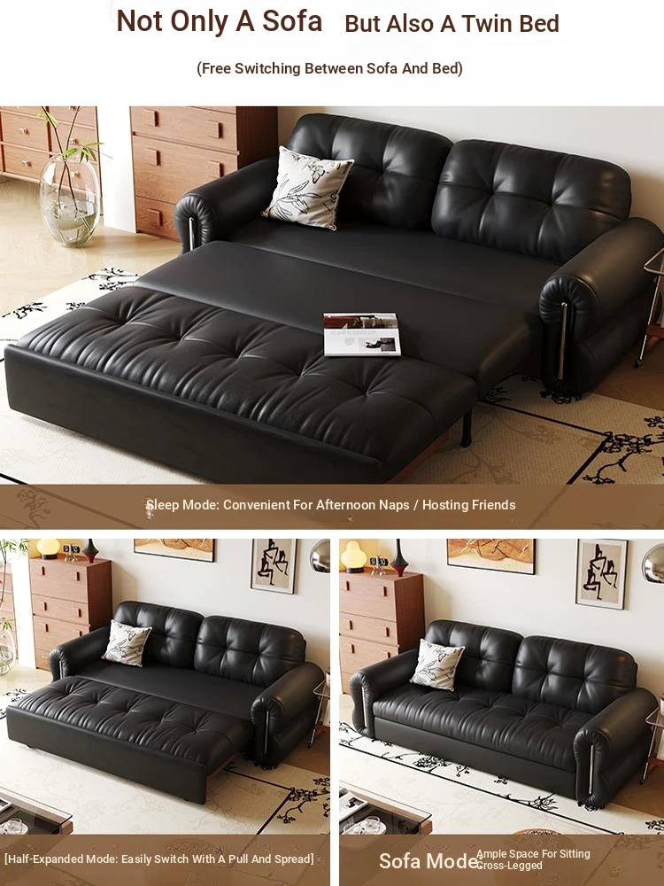 Government-Subsidized Wooden Fengshui Sofa Bed - Vintage Style, Perfect for Small Living Rooms, Retractable with Storage - 2025 New Model
