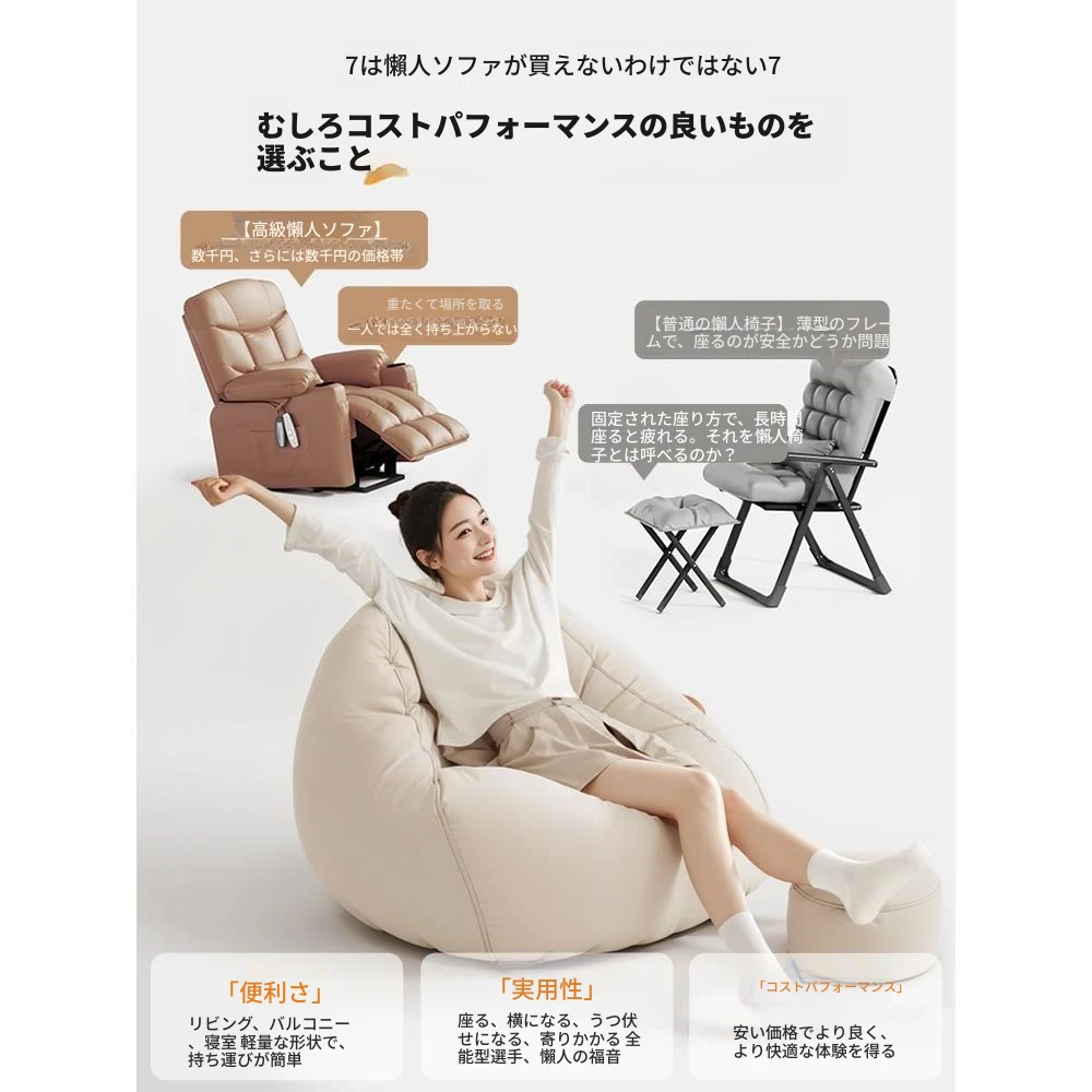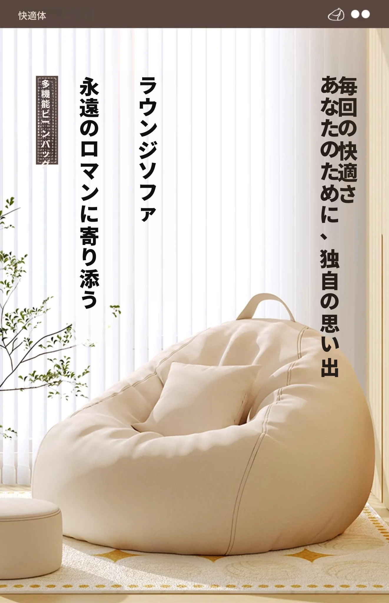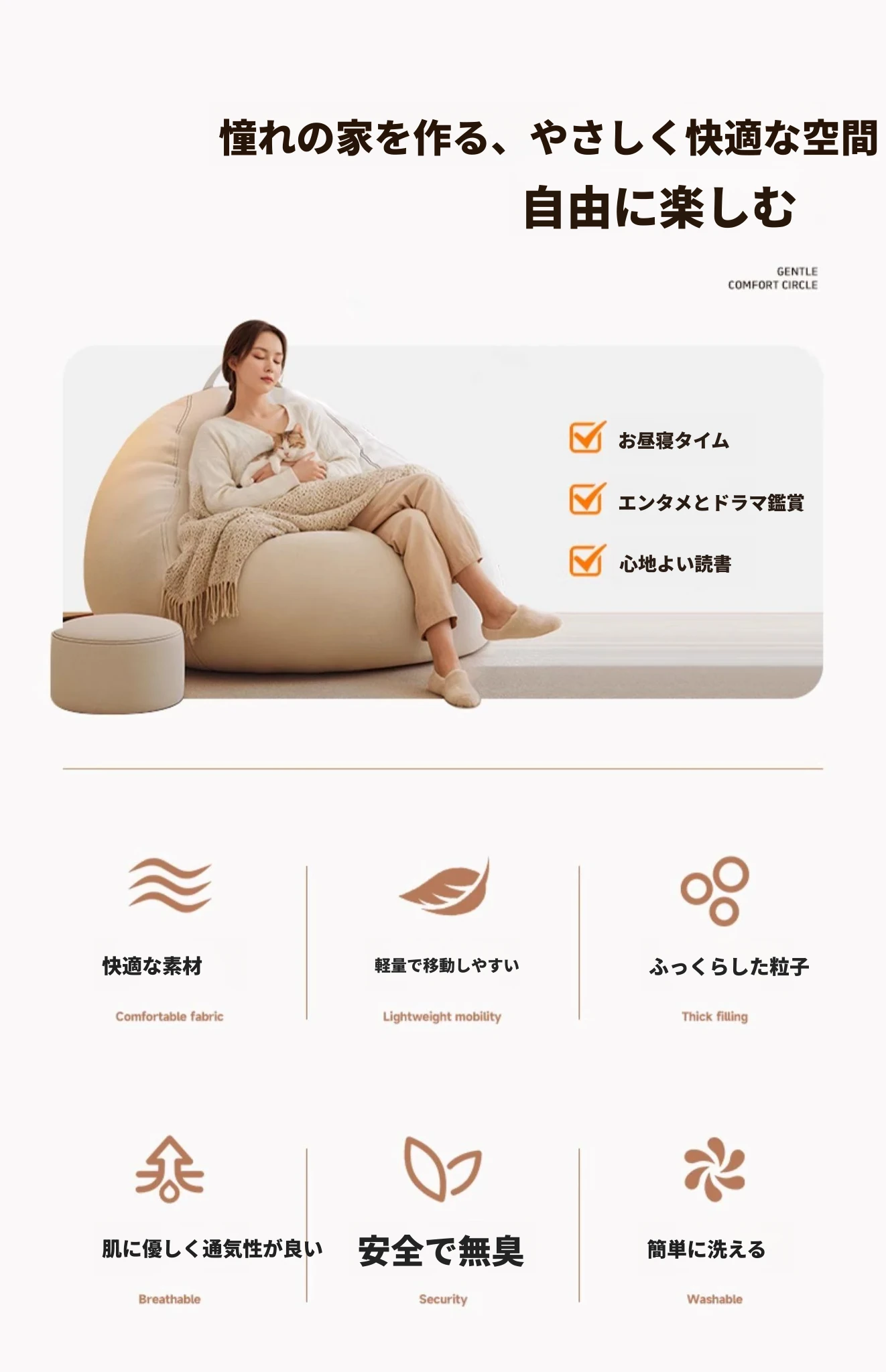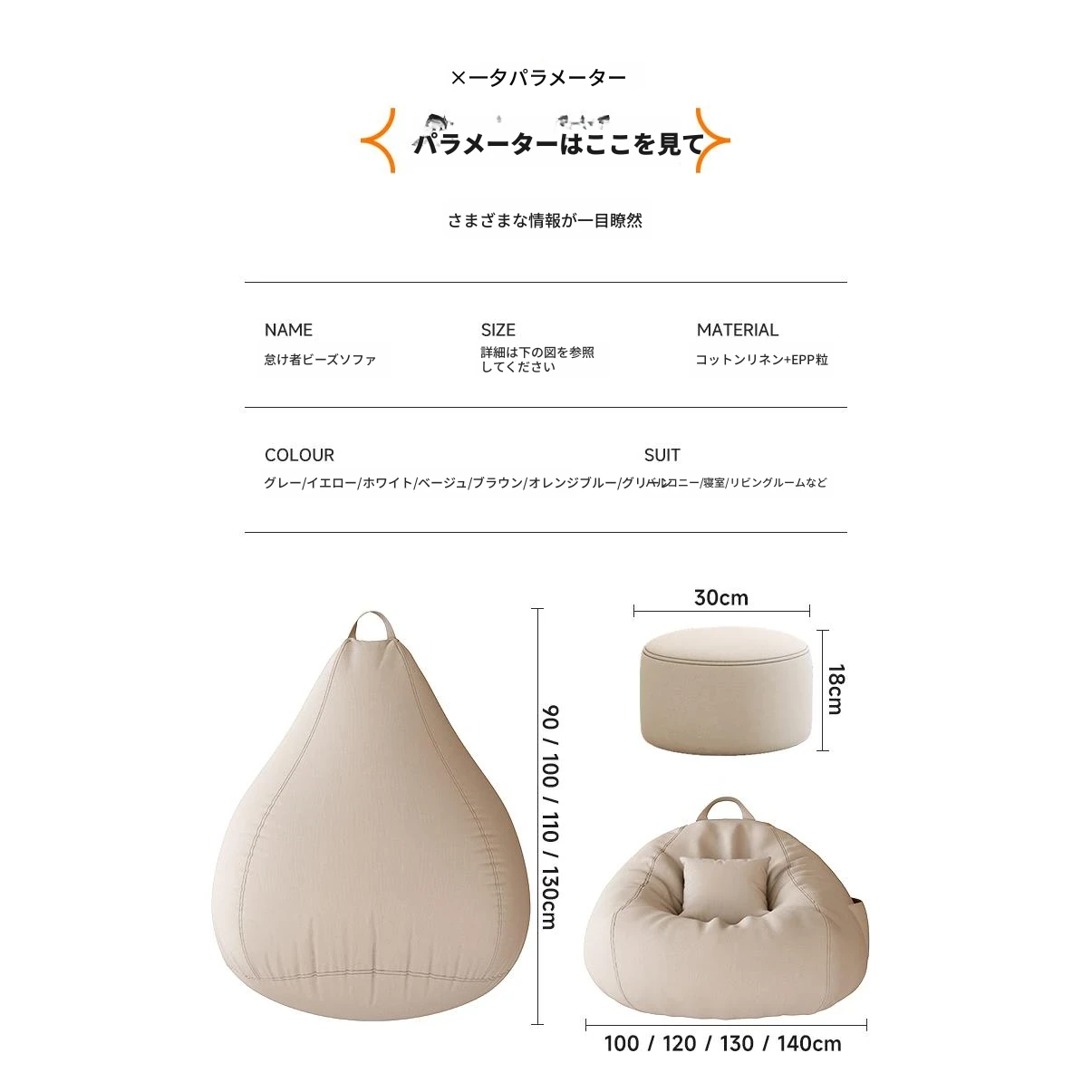 ✅アップグレード厚手防水技術布⭐巨無霸130*150/クリームホワイト(クッション+フットレスト+独立した洗える内袋付き)