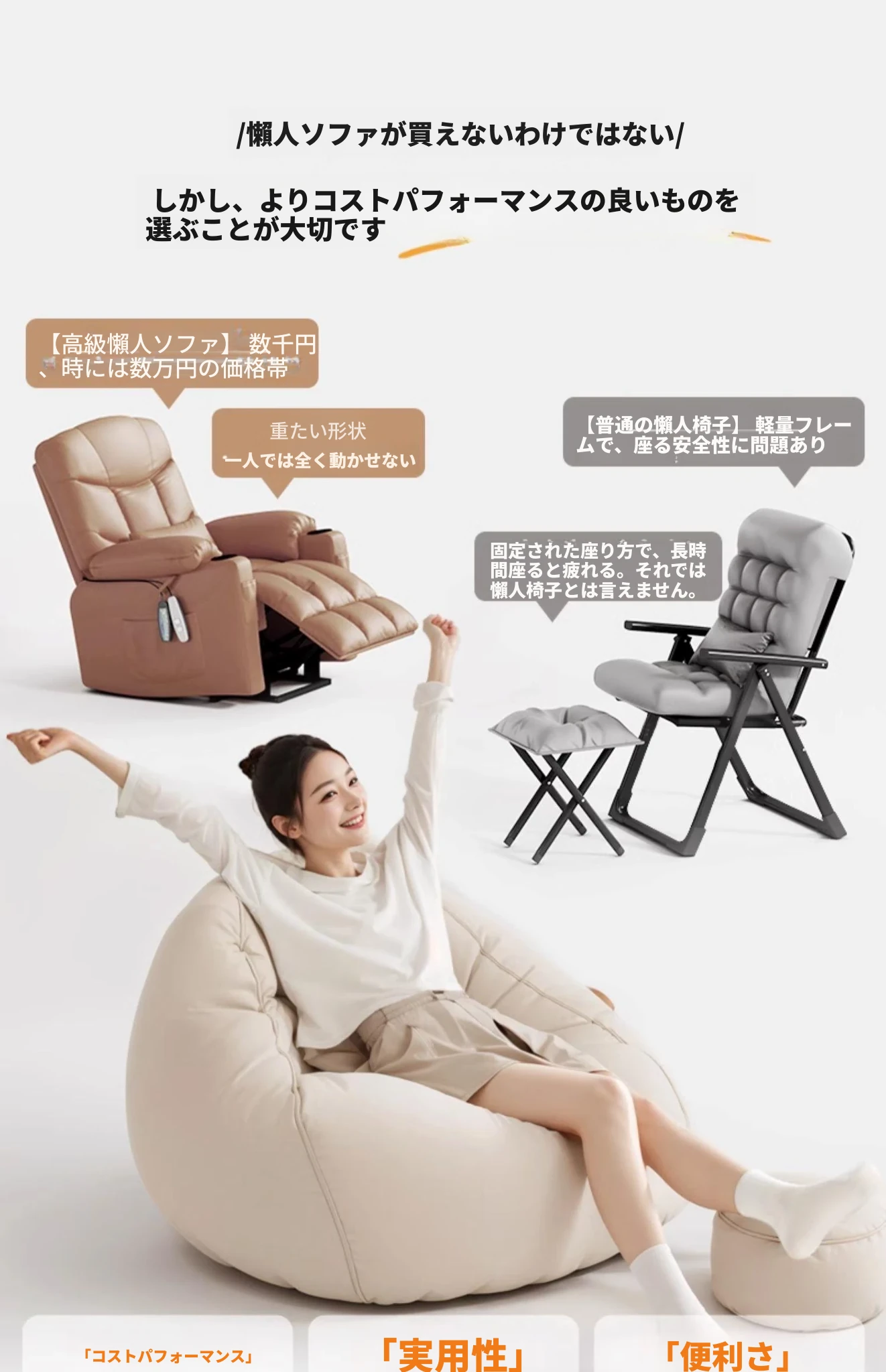 香港送料無料!リラックスできる一人用ソファ、寝転んでもOK!クッション性抜群のビーズソファ。寝室やバルコニー、窓辺、畳にも最適!快適なひとときをお届けします。