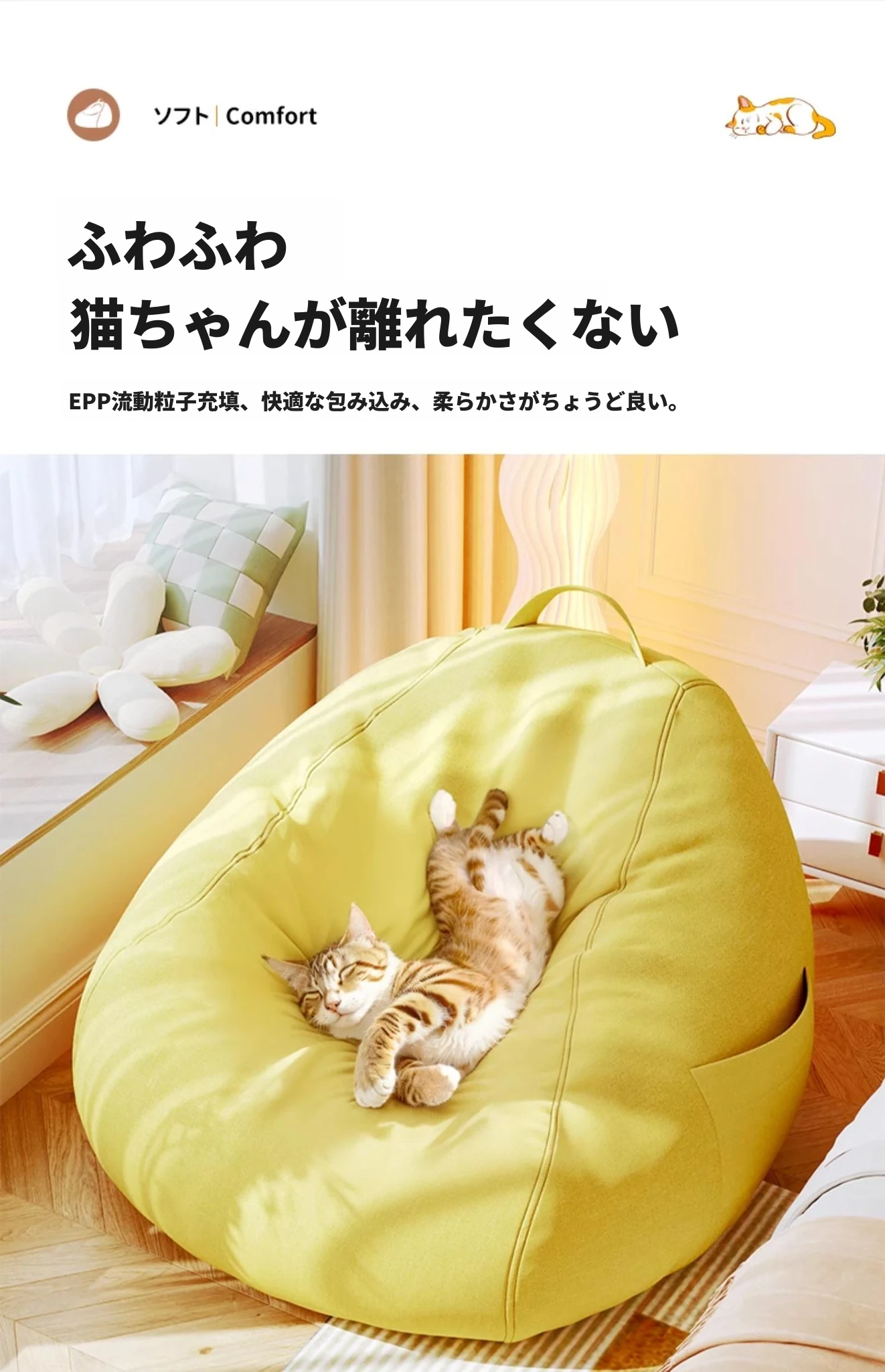 ✅アップグレード厚手防水技術布⭐巨無霸130*150/スイートイエロー(クッション+フットレスト+独立した洗える内袋付き)