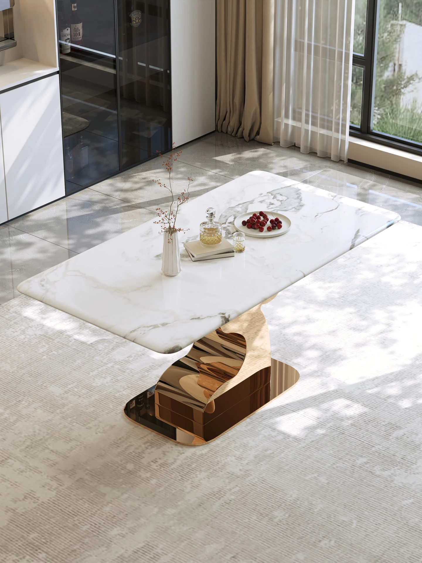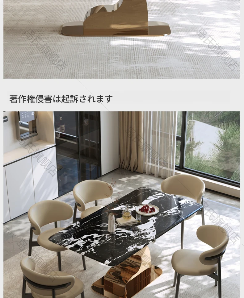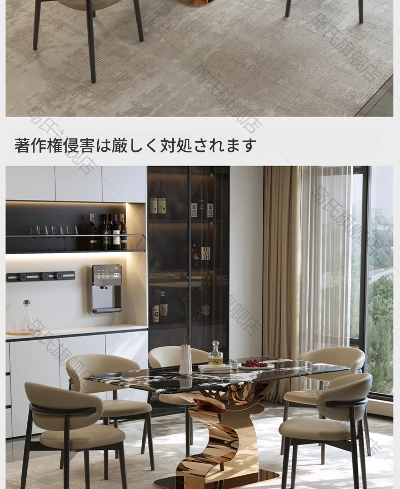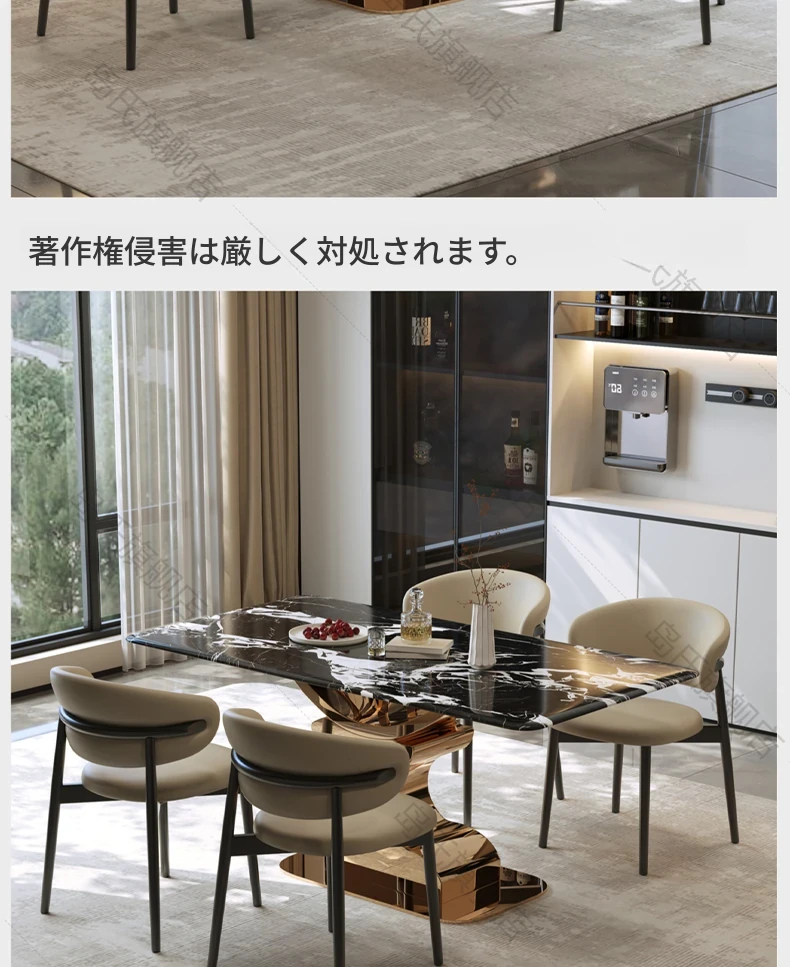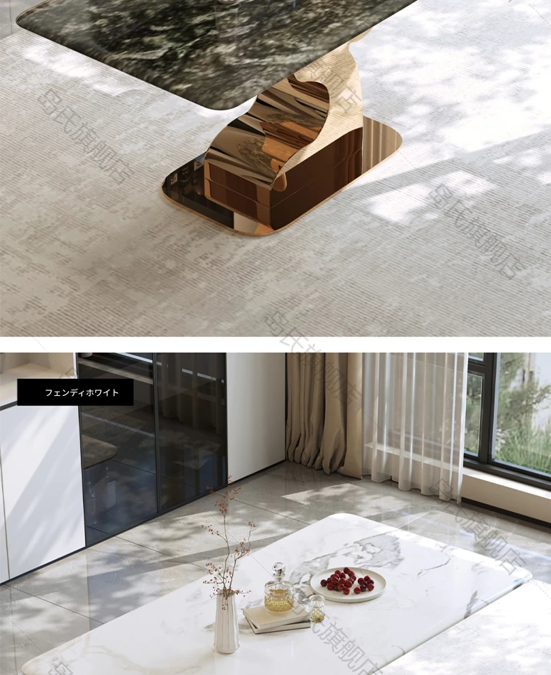 島氏デザイナーオリジナルの鹿角エレガントストーンダイニングテーブル - モダンで高級感あふれる長方形の食卓セット、家族や友人との特別なひとときを演出します。快適な椅子付きで、リラックスした食事を楽しめます。