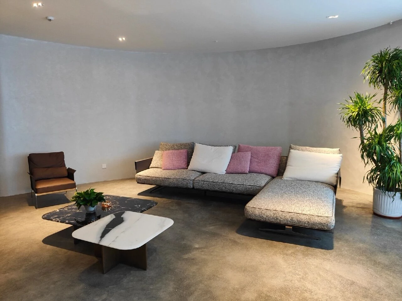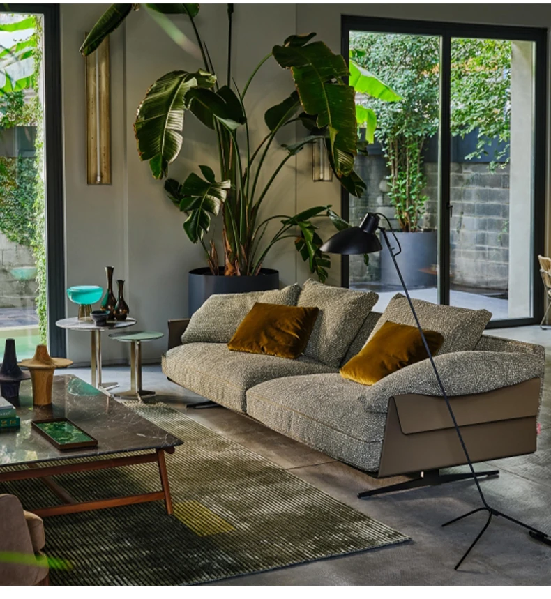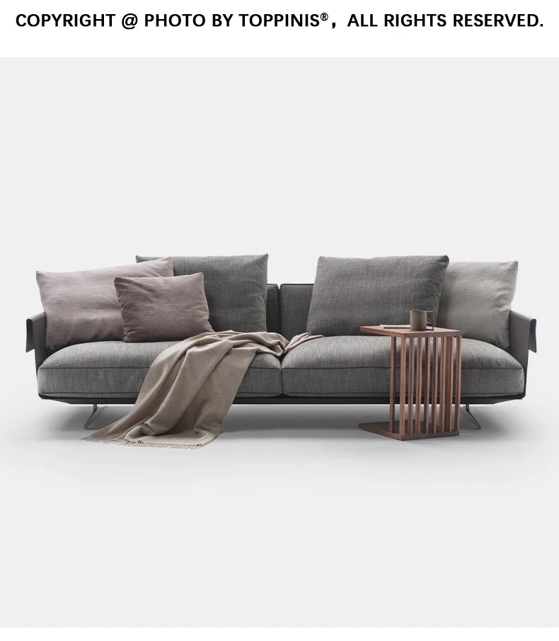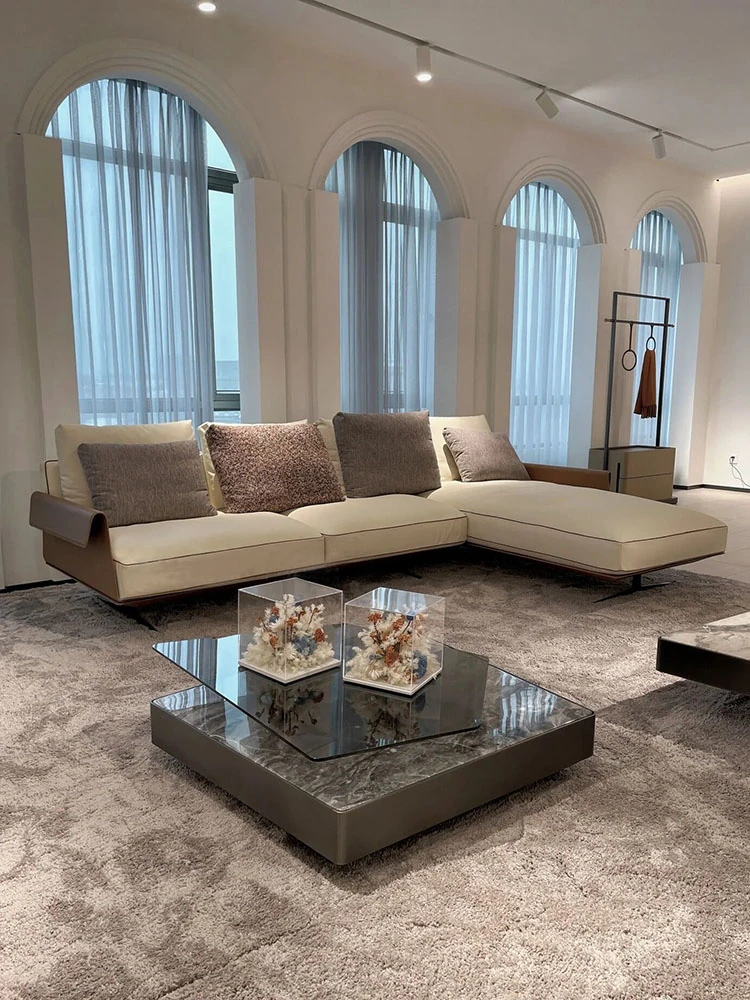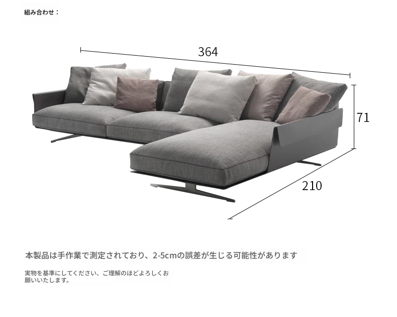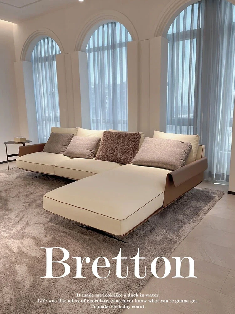 イタリア製ブレトンソファ - シンプルでモダンなヴィラ向けフレアコーナーコットンリネンソファ、贅沢な居心地を提供!