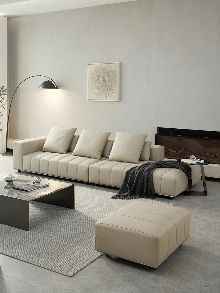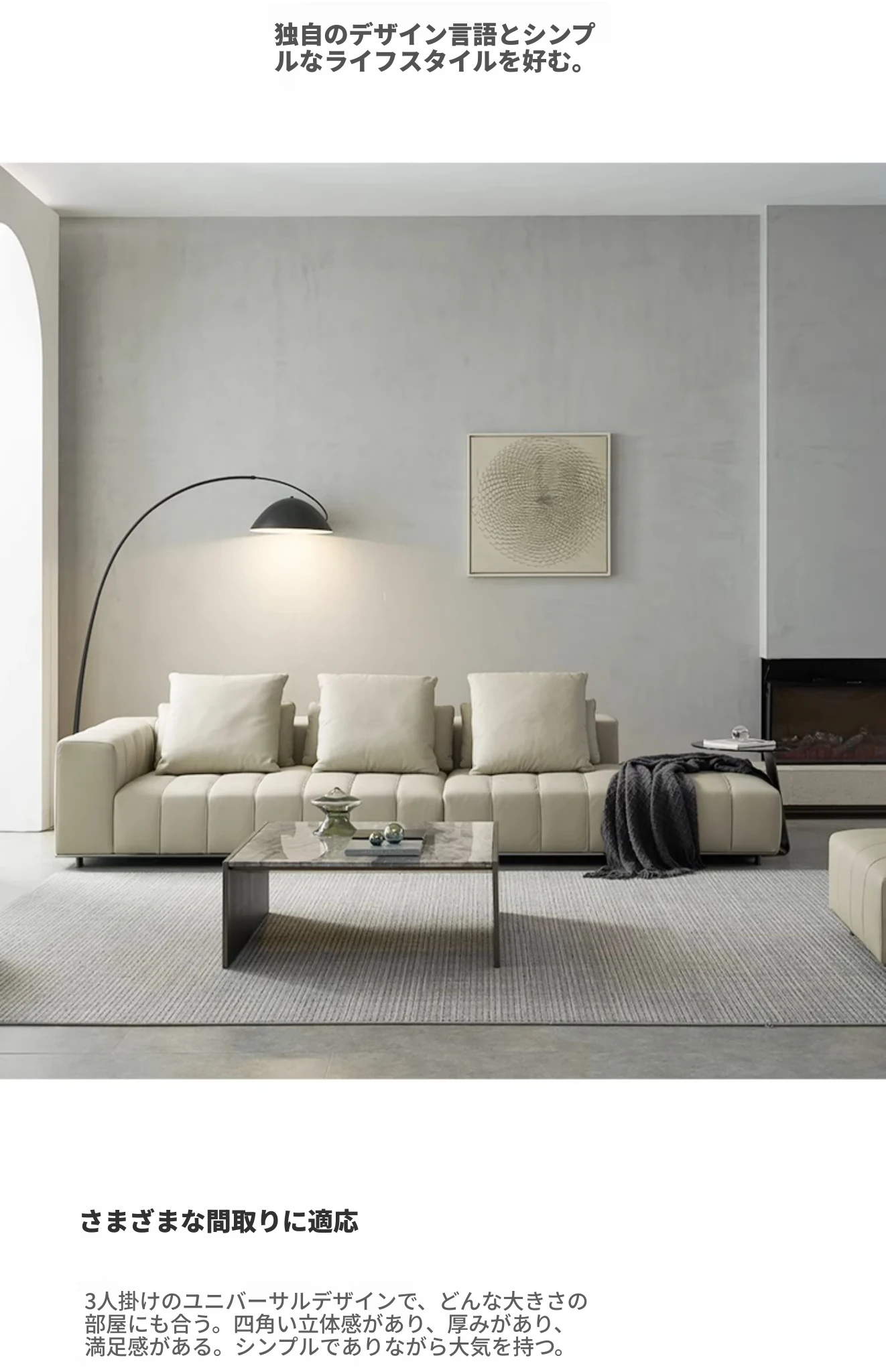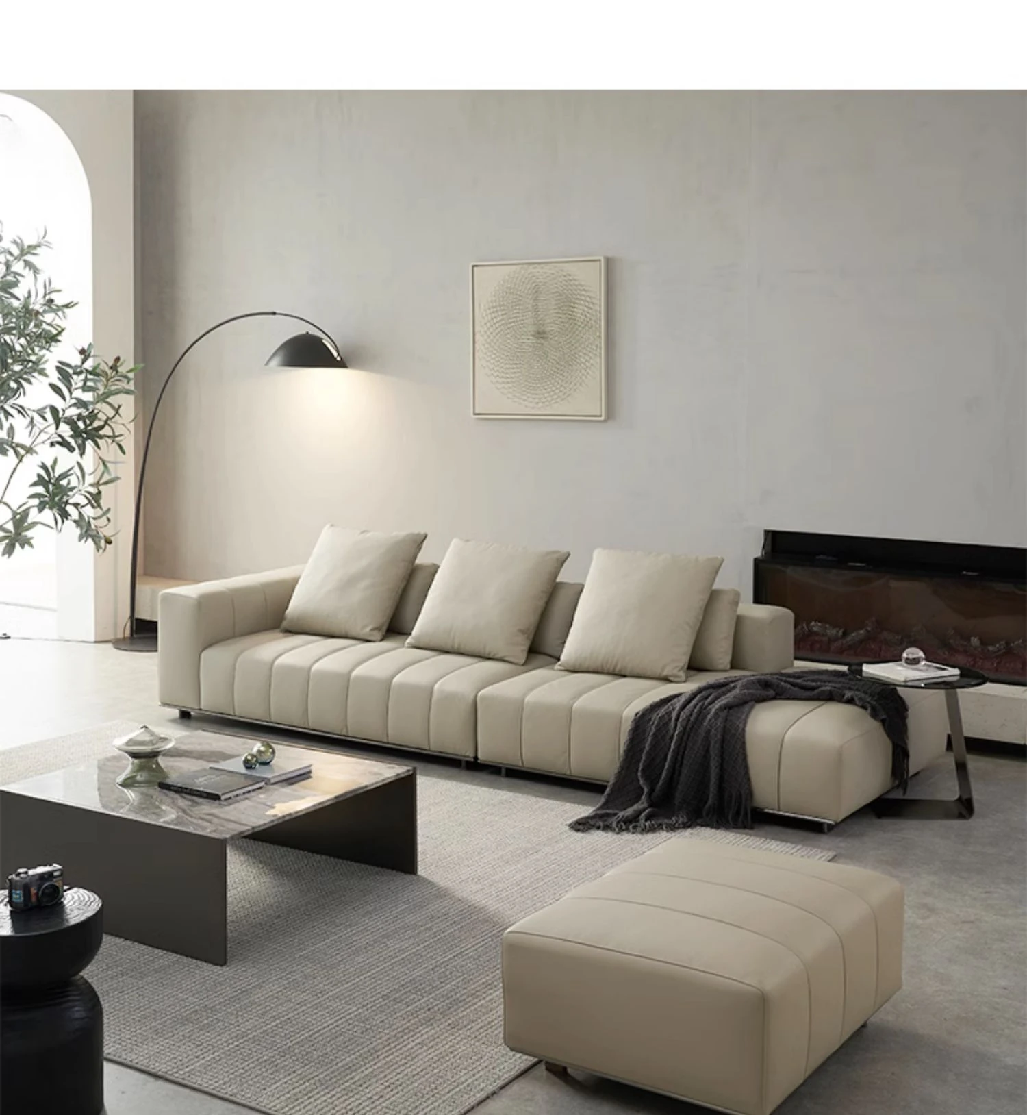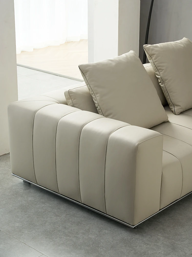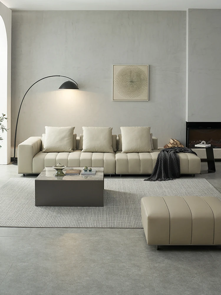 イタリアンデザインのラグジュアリー本革コーナーソファ - シンプルで洗練されたピアノキーのスタイル、ヴィラのモデルルームにぴったり!