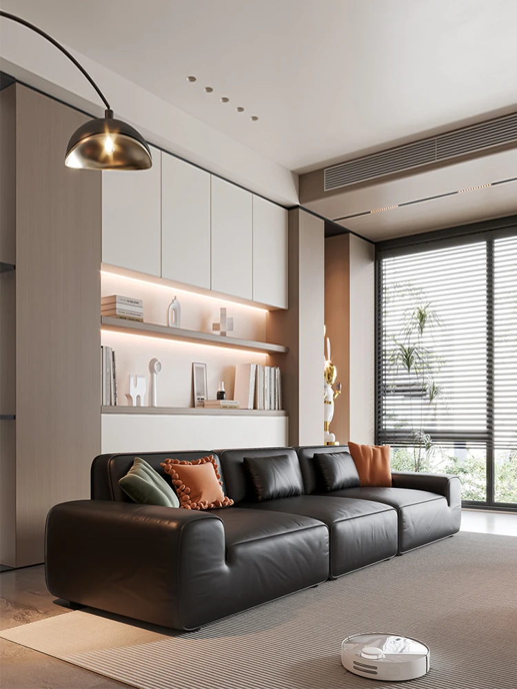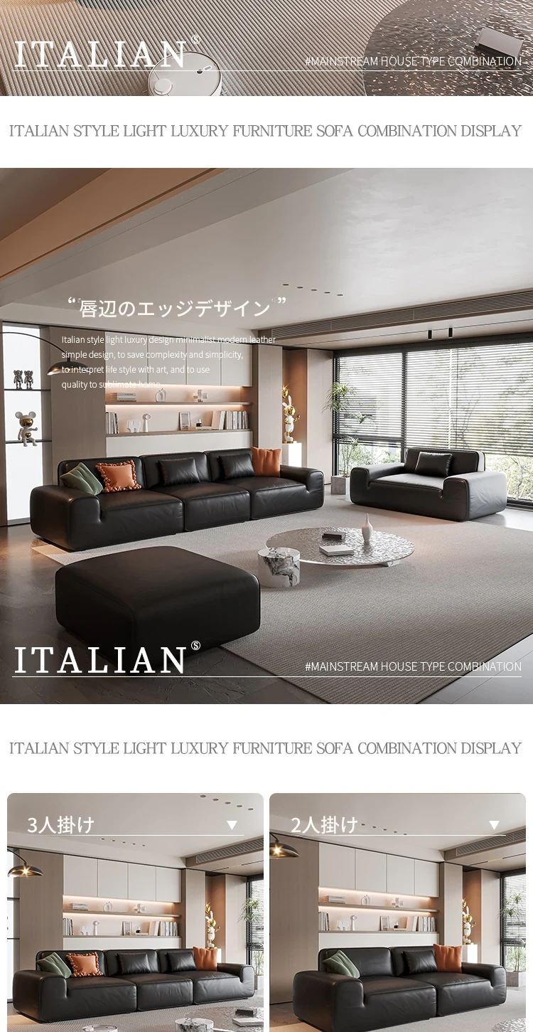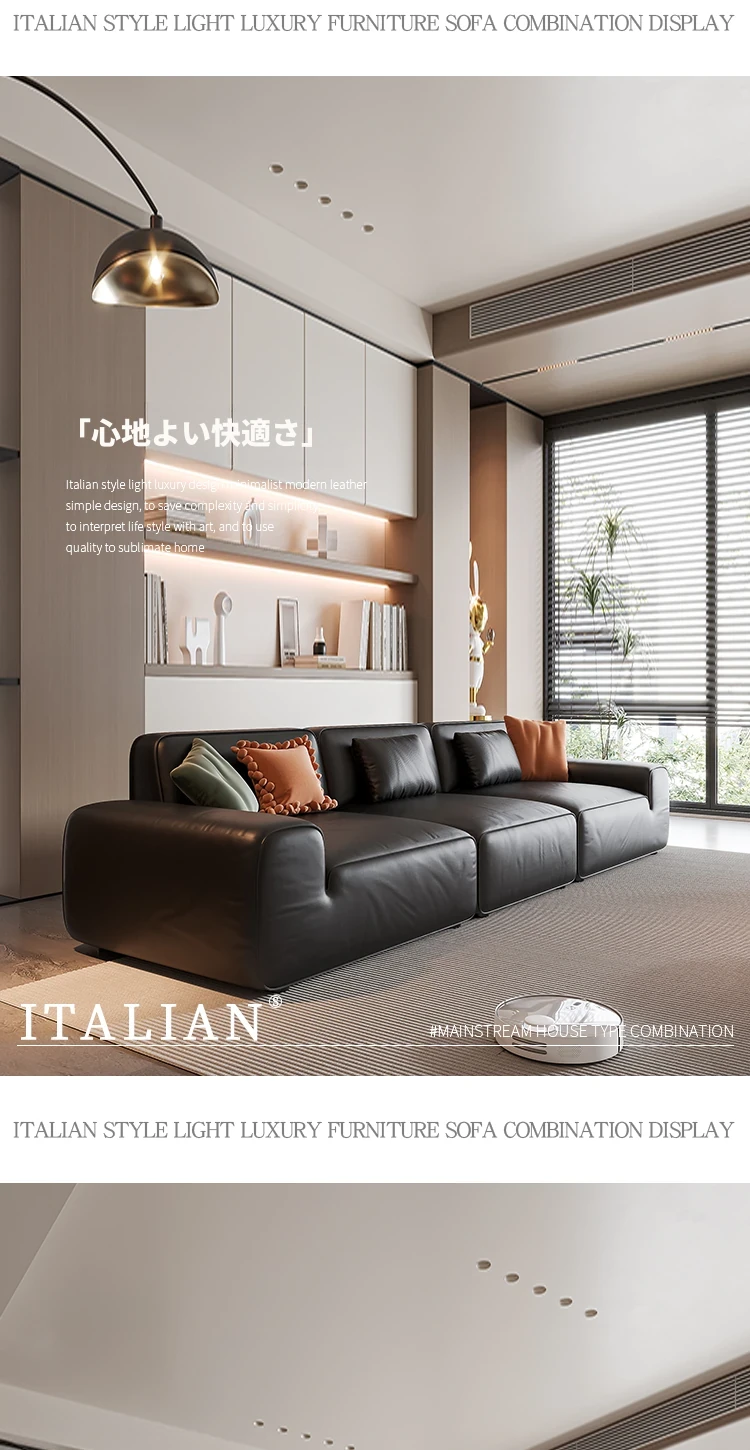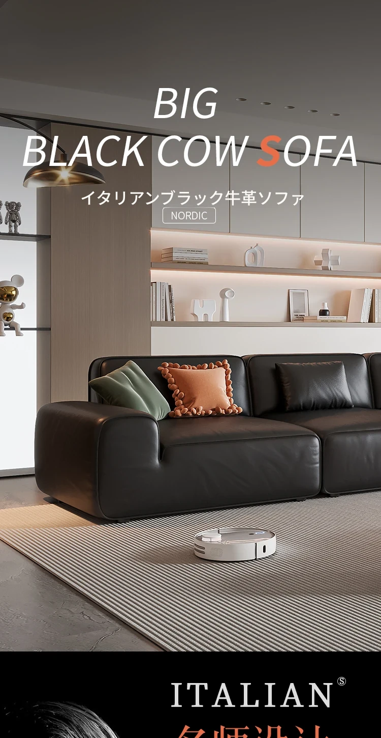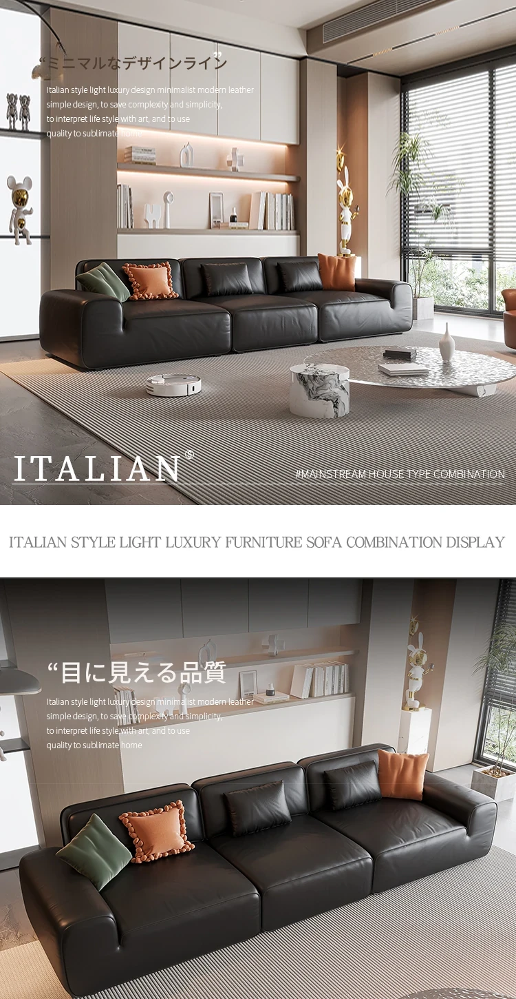 イタリア輸入 本革 MD夏図 大型ブラックレザーソファ ストレートトーフブロック イタリアンライトラグジュアリー ミニマリスト家具