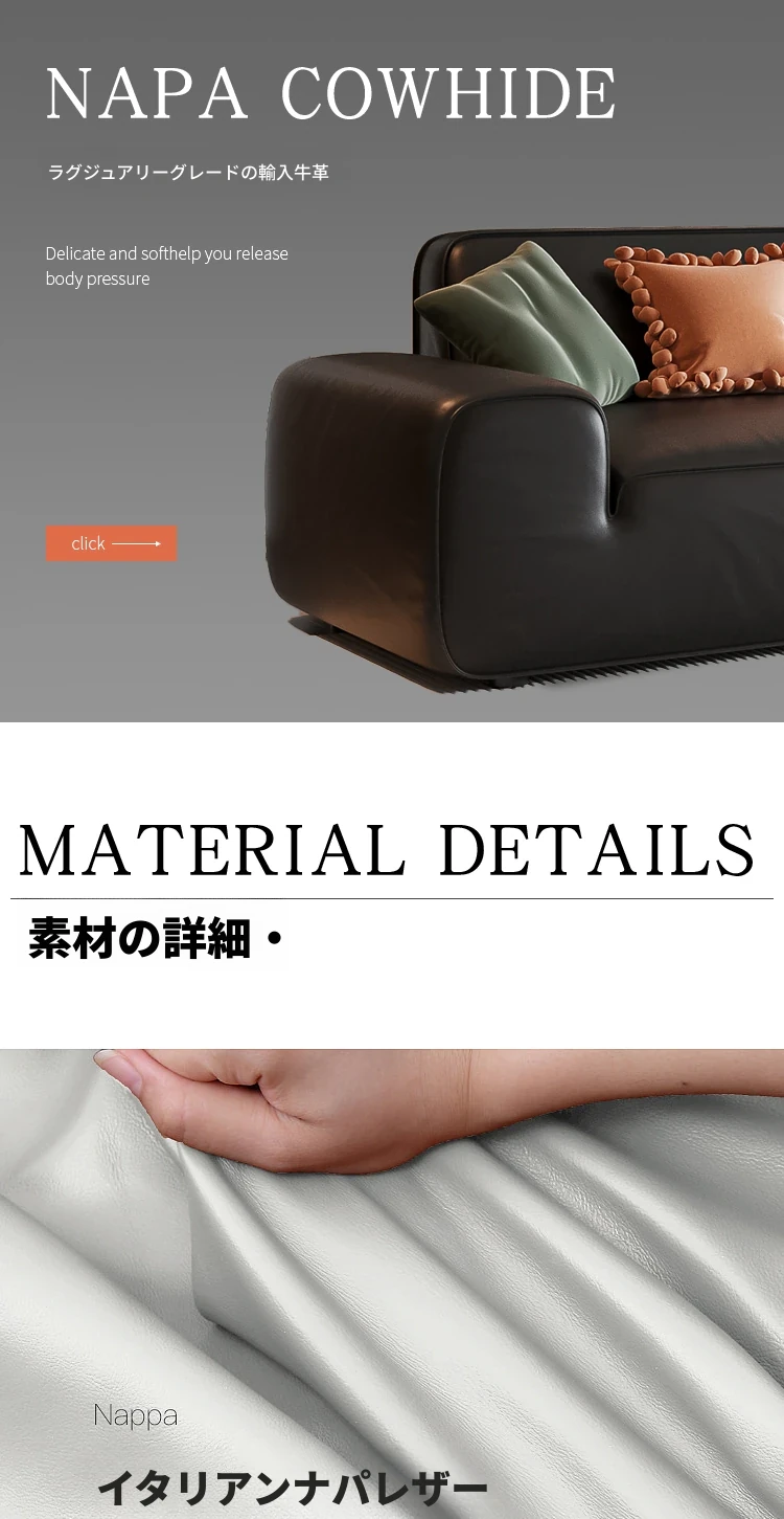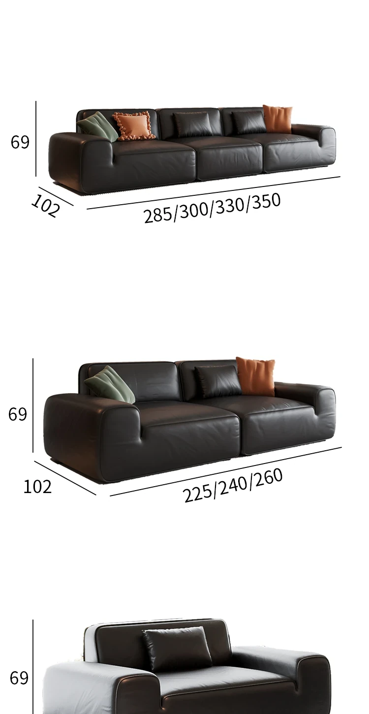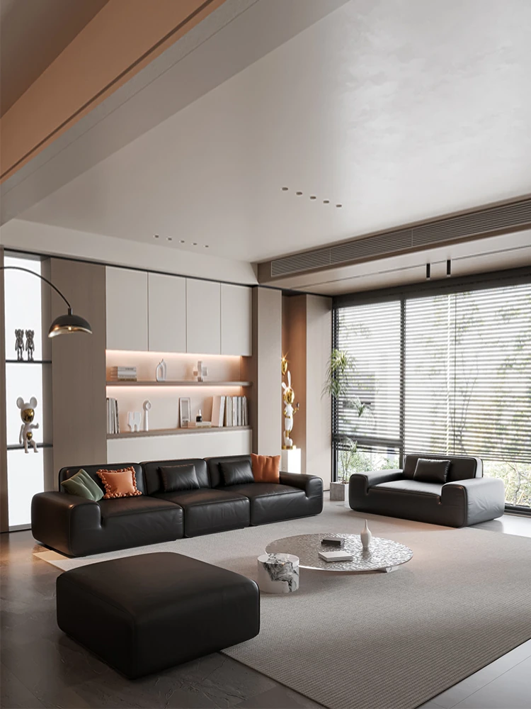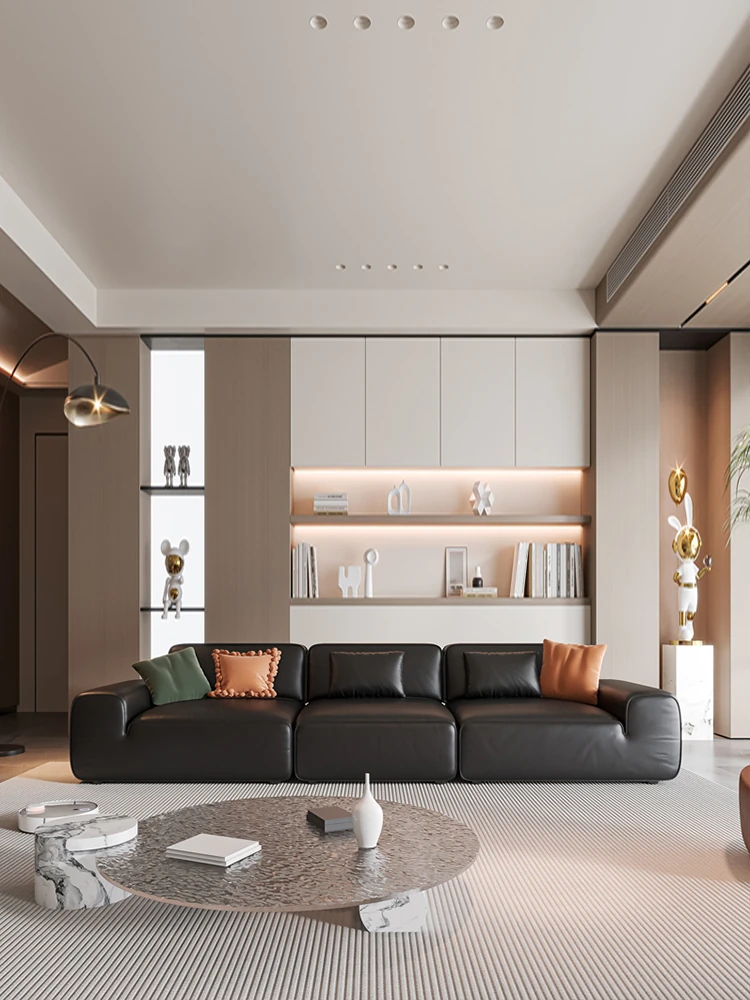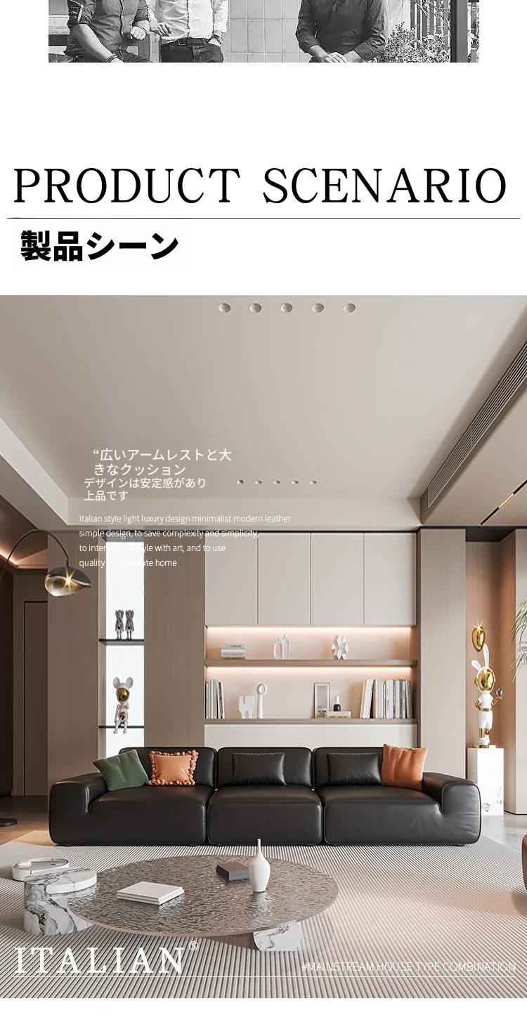イタリア輸入 本革 MD夏図 大型ブラックレザーソファ ストレートトーフブロック イタリアンライトラグジュアリー ミニマリスト家具