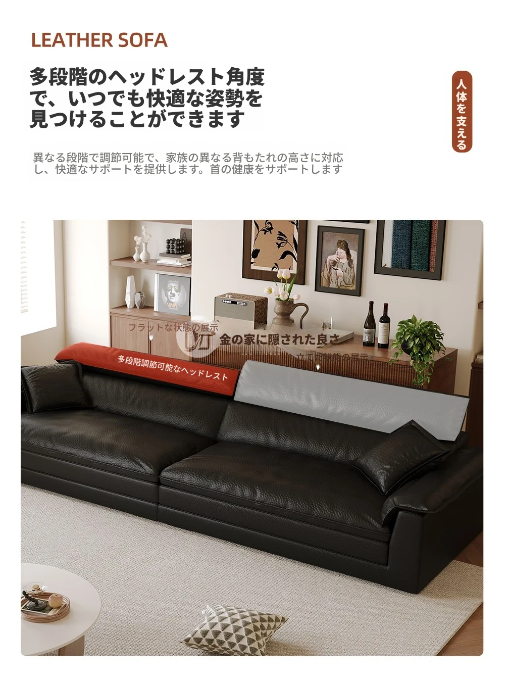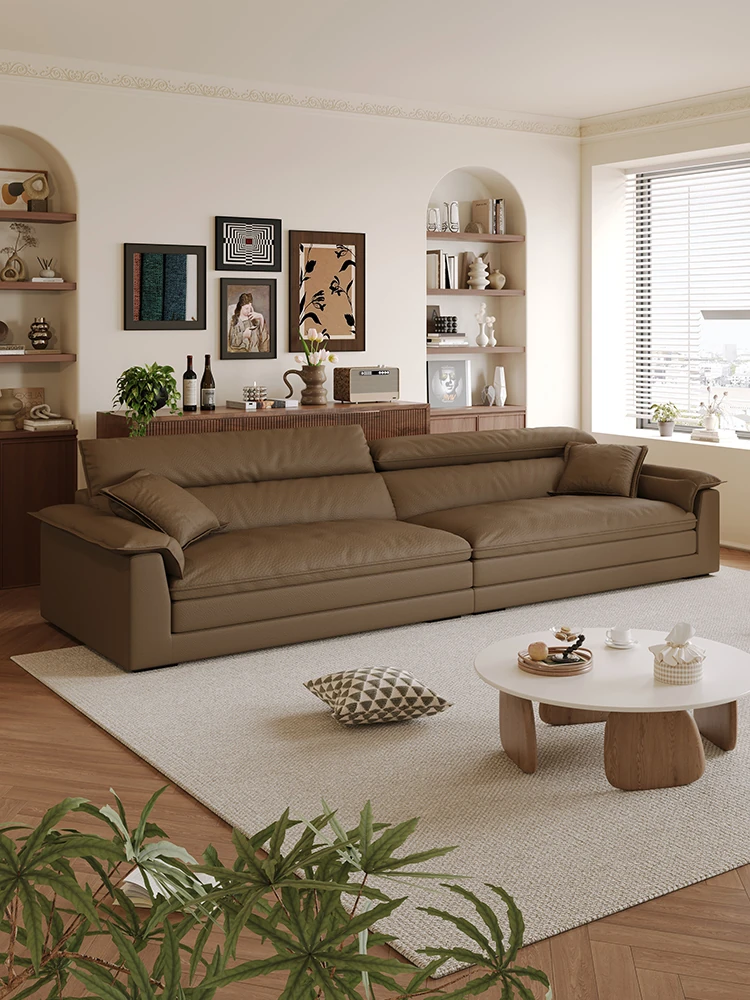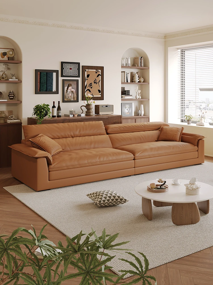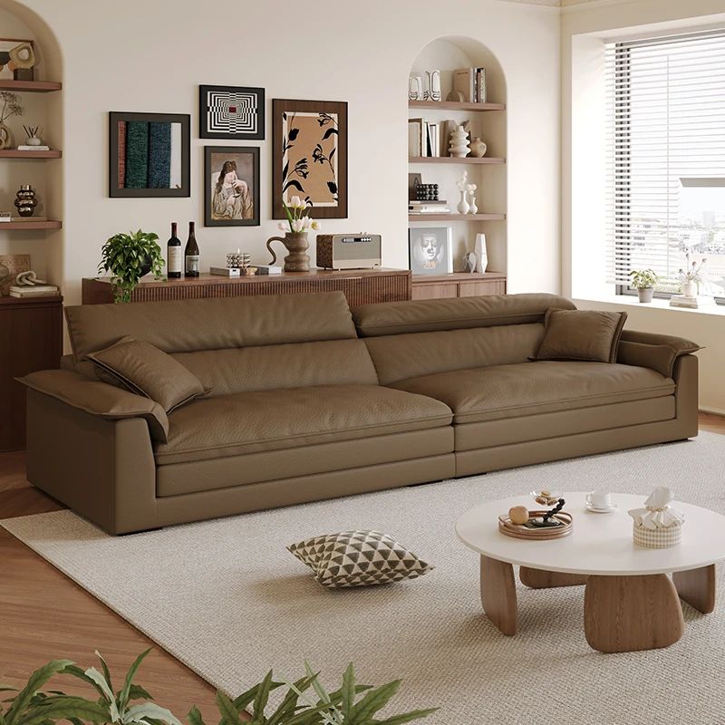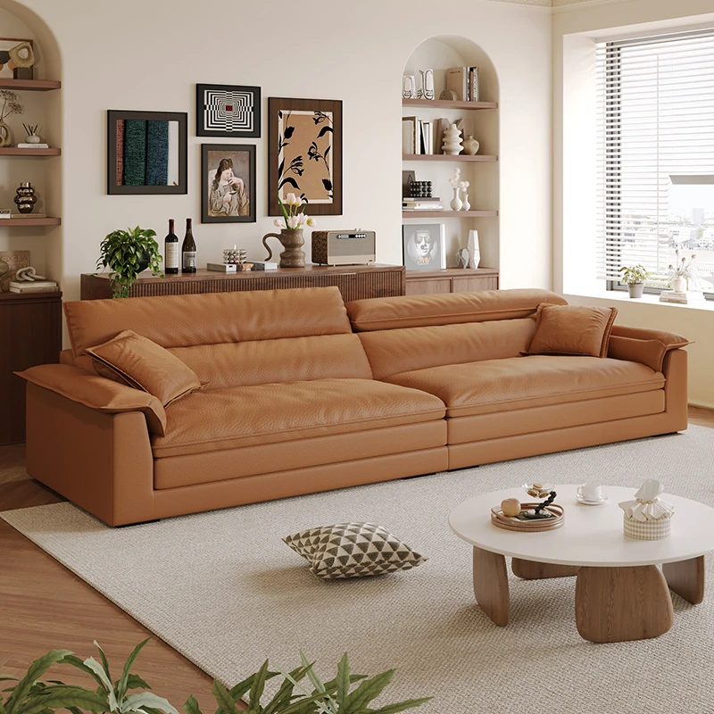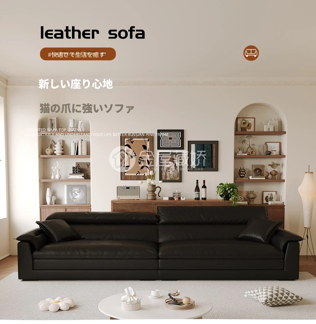 イタリアンミニマルキャットスクラッチ皮革リビング船型ソファー、調整可能なヘッドレスト、超ワイドシート、直立機能付き!快適さとスタイルを兼ね備えたあなたのリビングにぴったりの一品!
