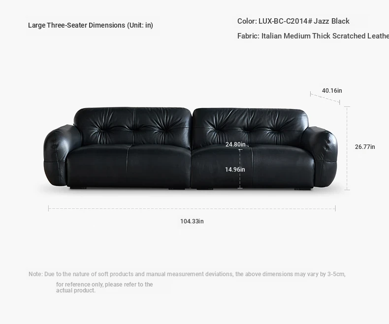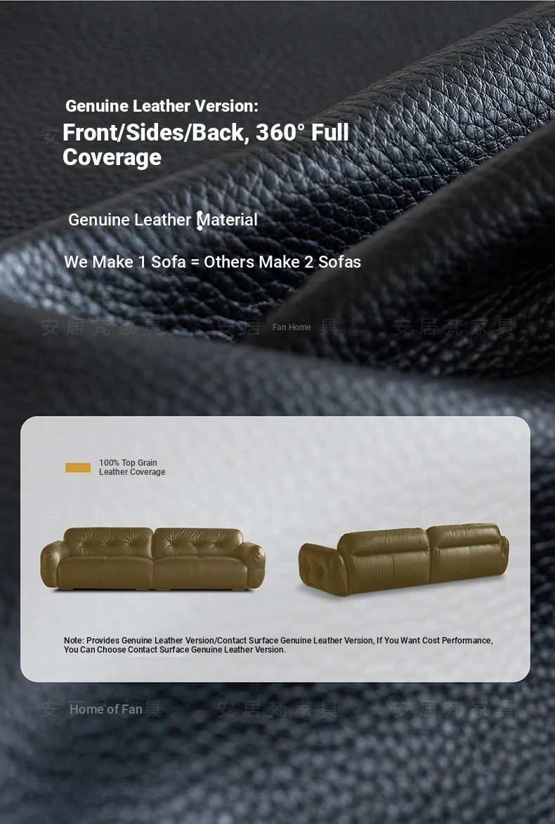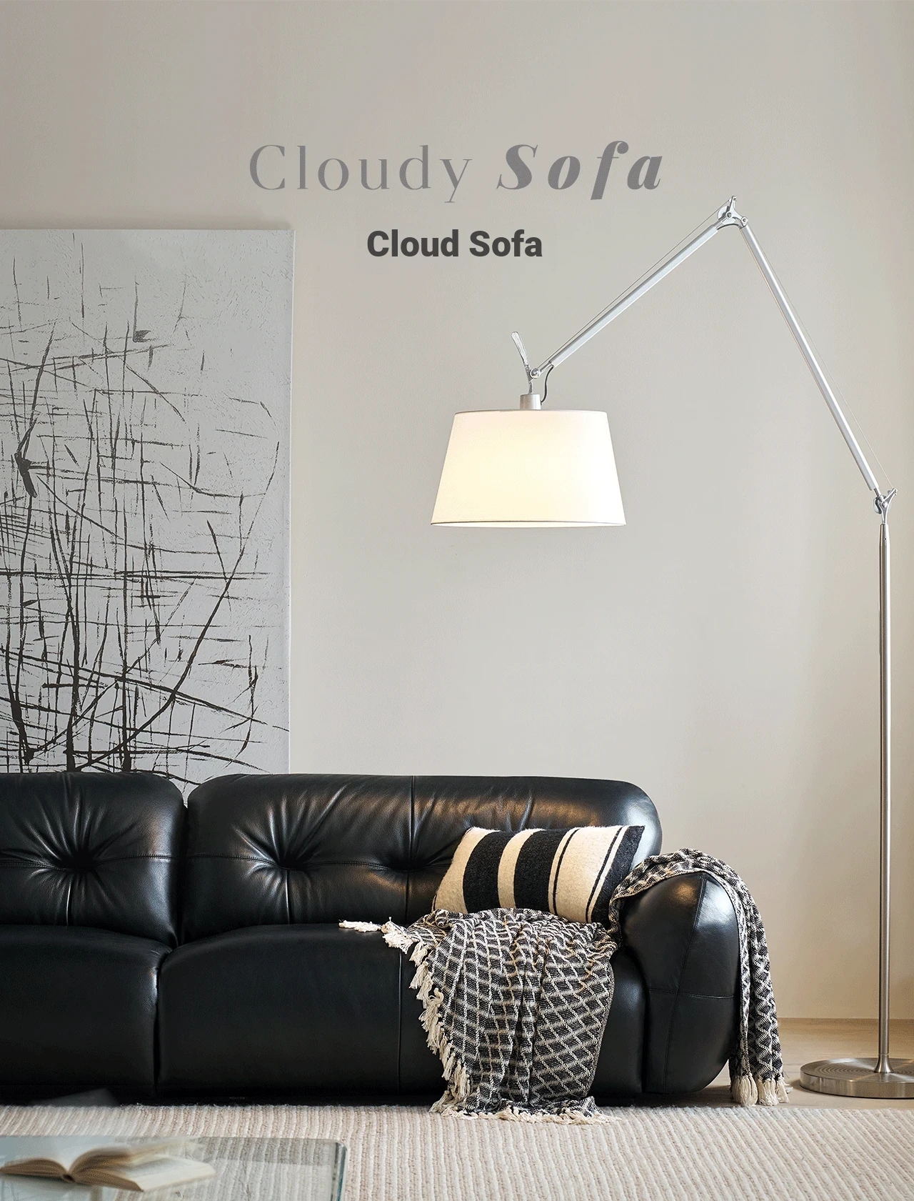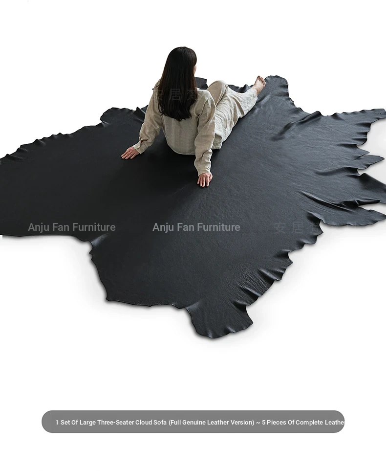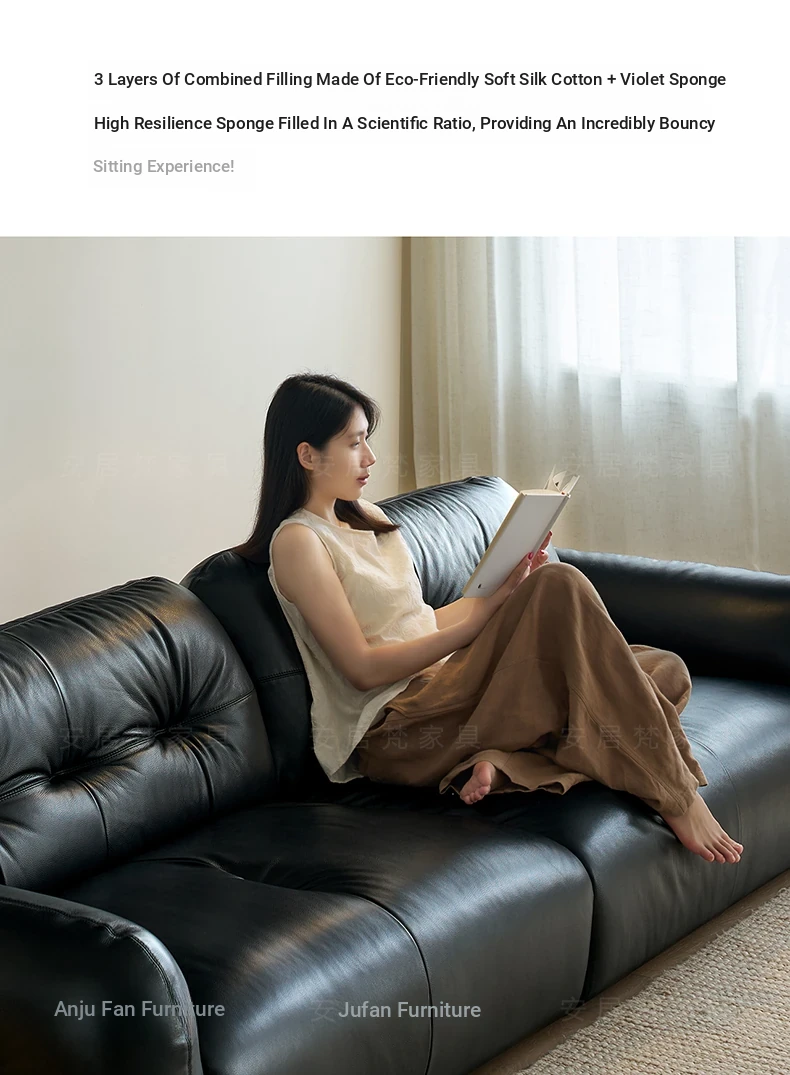 Italian Minimalist Genuine Leather Sofa - Modern Retro Style Black Cloud-Shape Sofa for Small Living Rooms