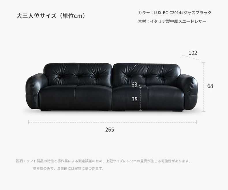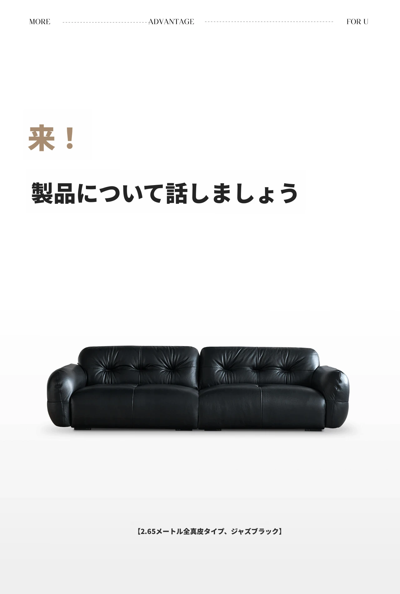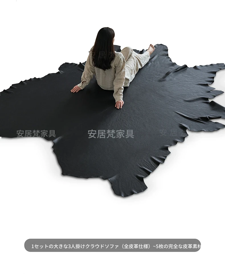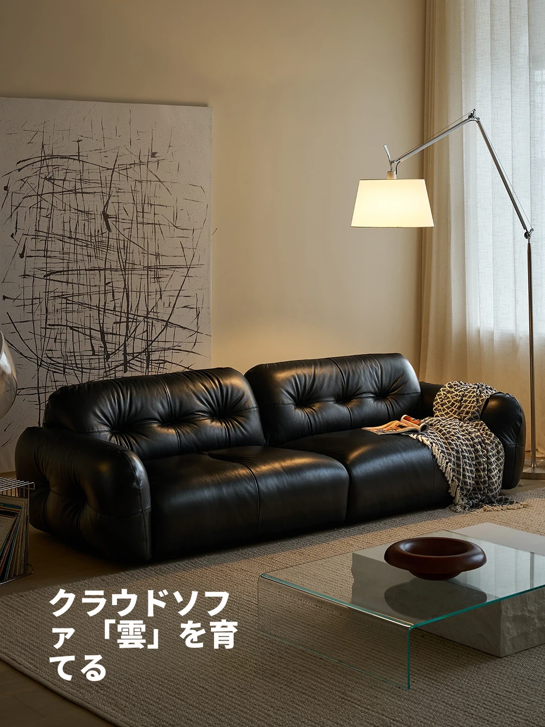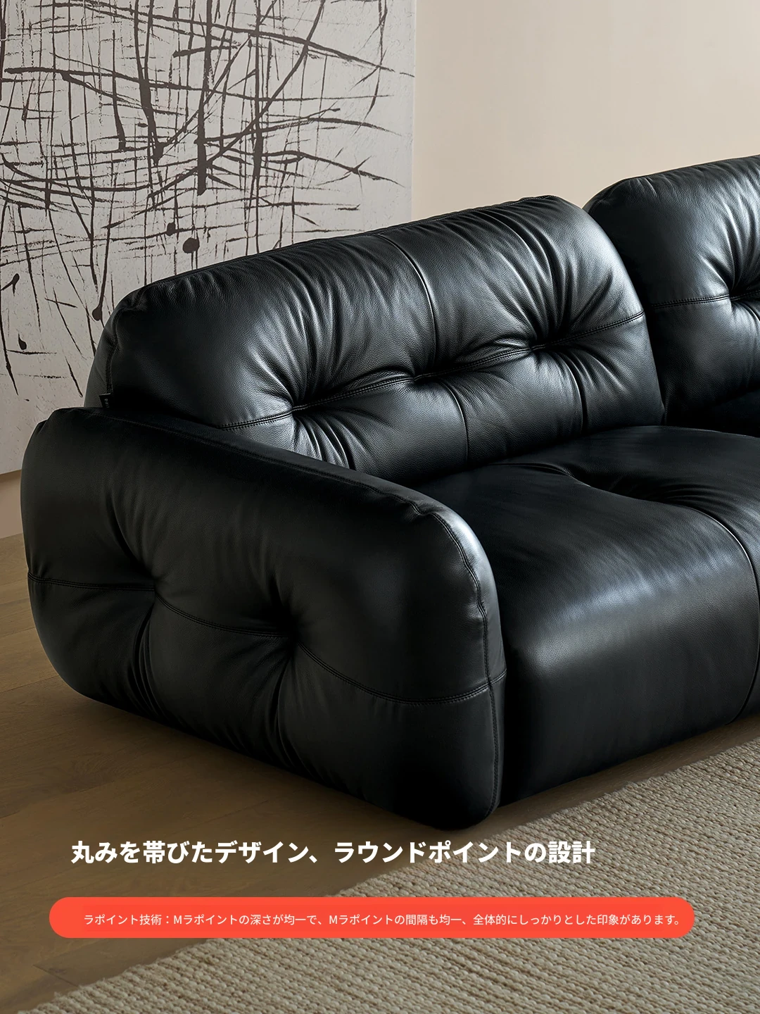 イタリアンミニマルデザイン本革ソファ|現代的でシンプルなレトロスタイルのブラック|小さなリビングにぴったりな直線的クラウドソファ