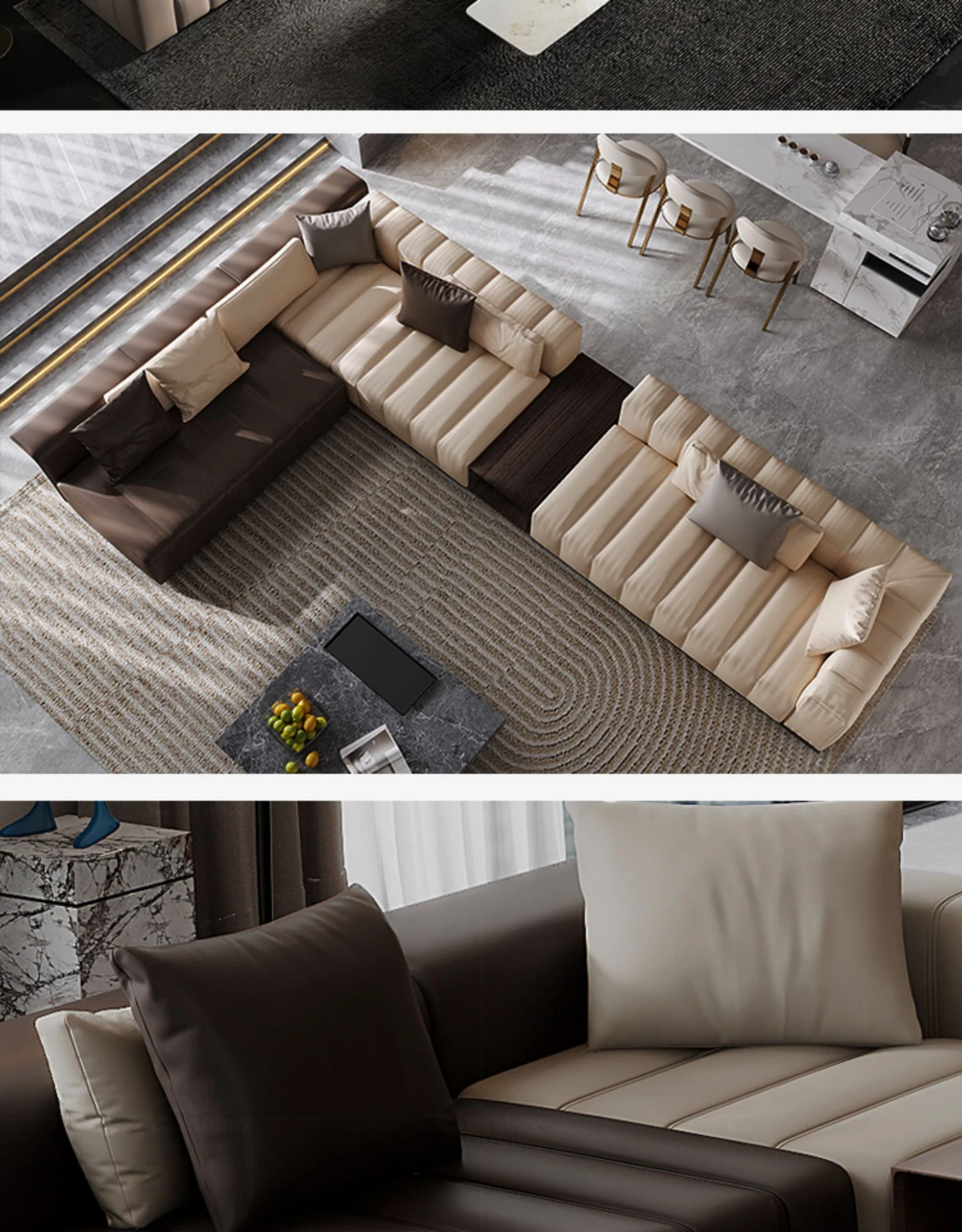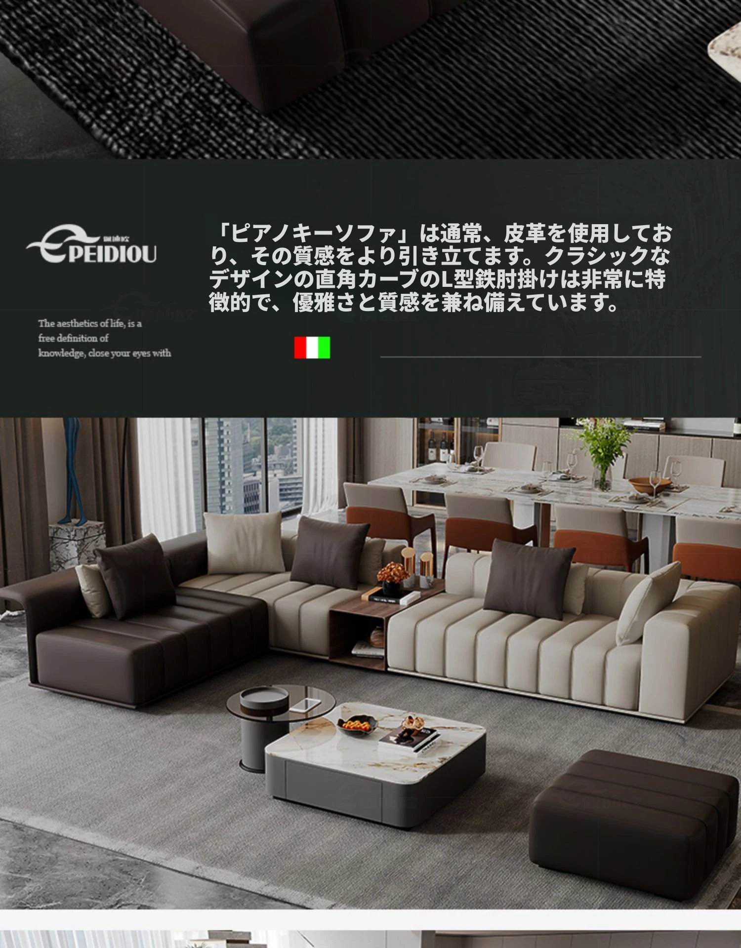 イタリアンミニマリズム 本革ソファ 本物の牛革 使用 ピアノキー デザイン ヴィラ向け 大平面用 使いやすいフリーマンリビングコーナーソファ 最高の快適さを提供します!