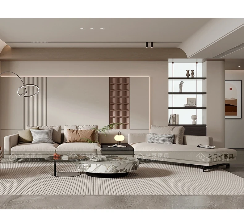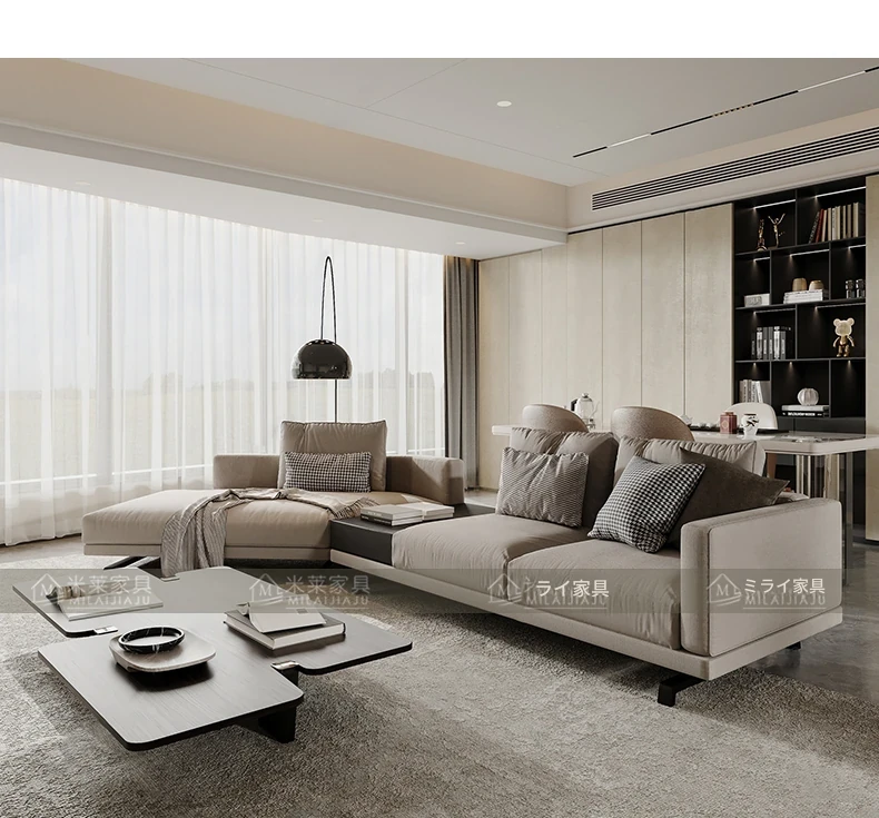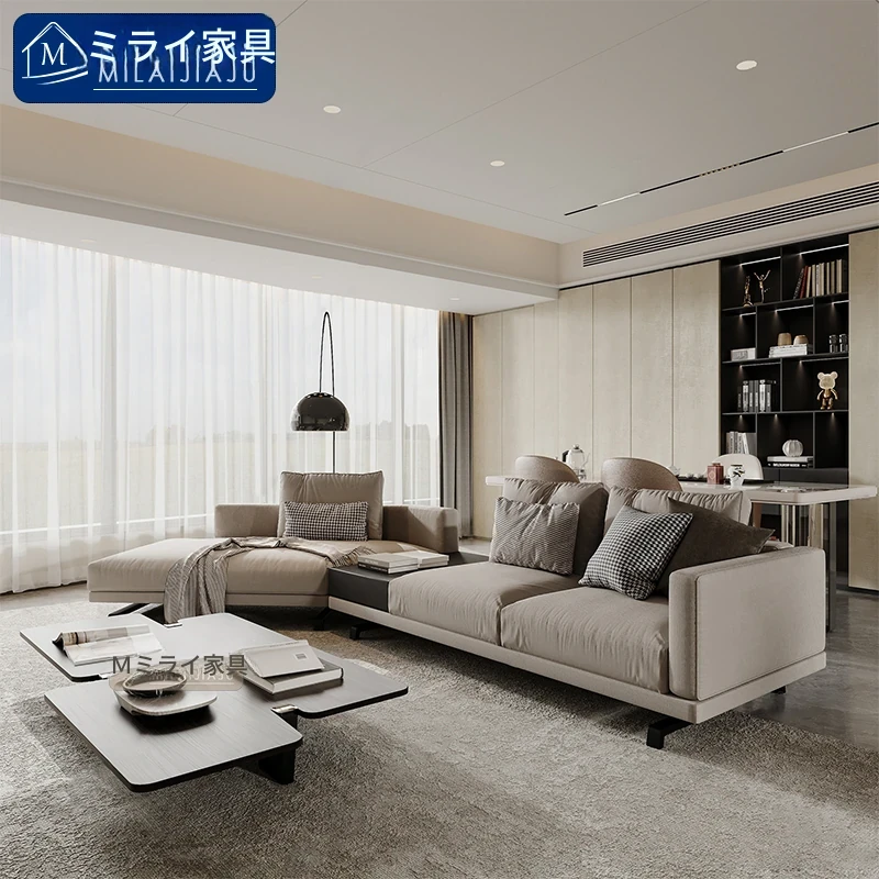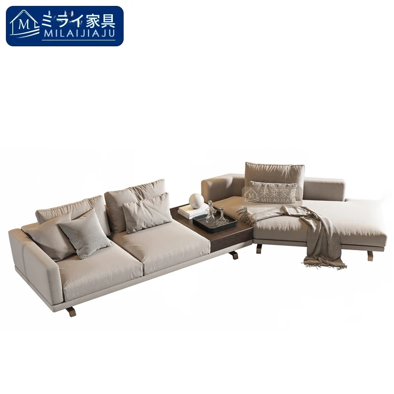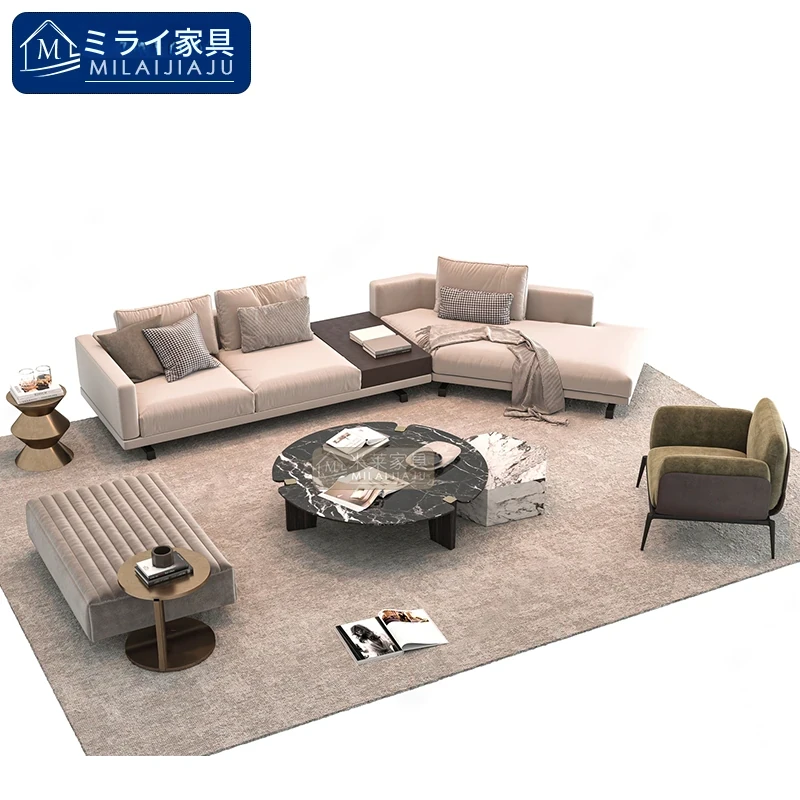 イタリアンミニマリズムの軽奢感漂うユニークなコーナー布製ソファセット - 大平面ホテルロビーやサロンに最適なデザイナーズスタイル!おしゃれで洗練された空間を演出します。