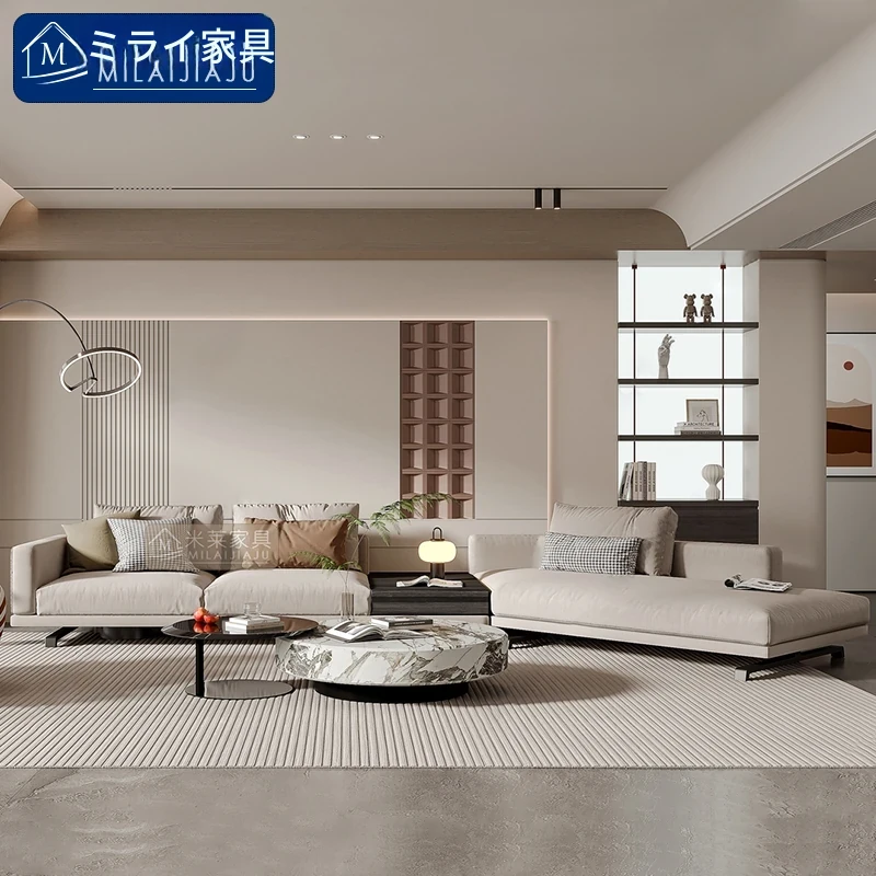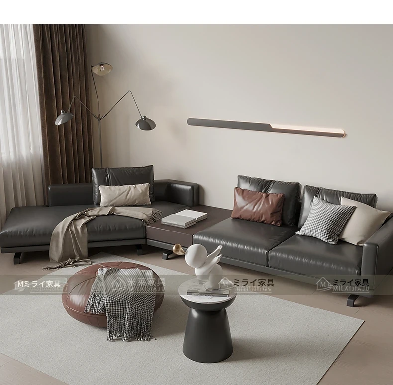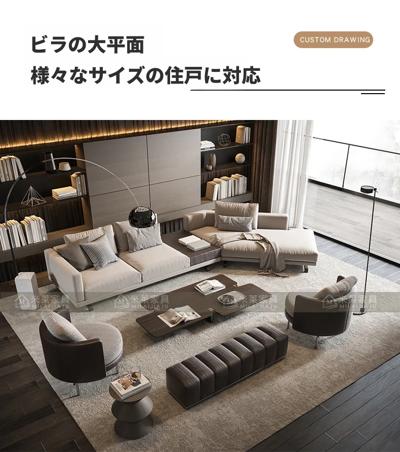 イタリアンラグジュアリー・ローレンス本革ソファー|上質な一層牛革使用|広々としたリビングやヴィラに最適なモダンデザインの高級コンビネーションソファ|あなたの空間を特別なものに!