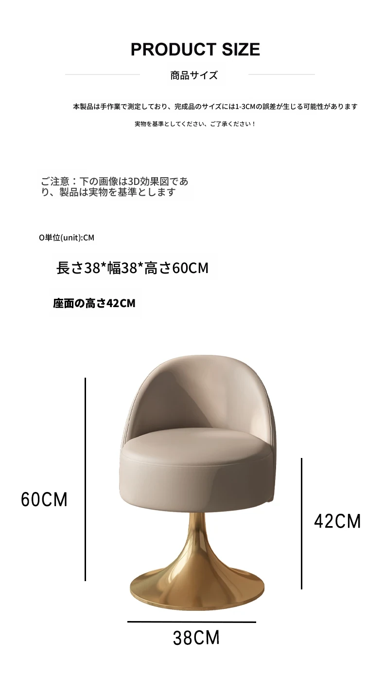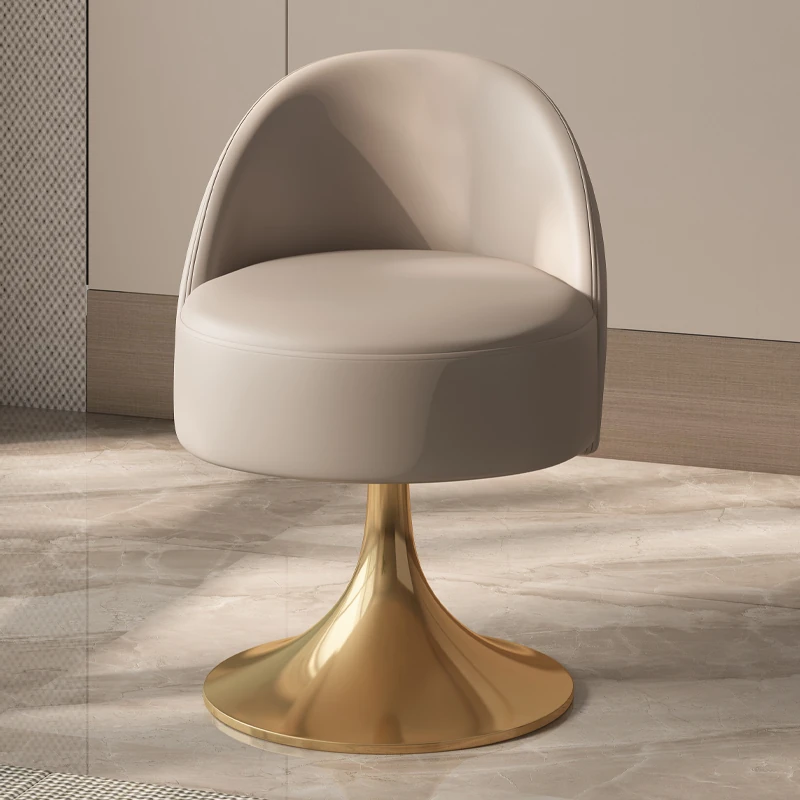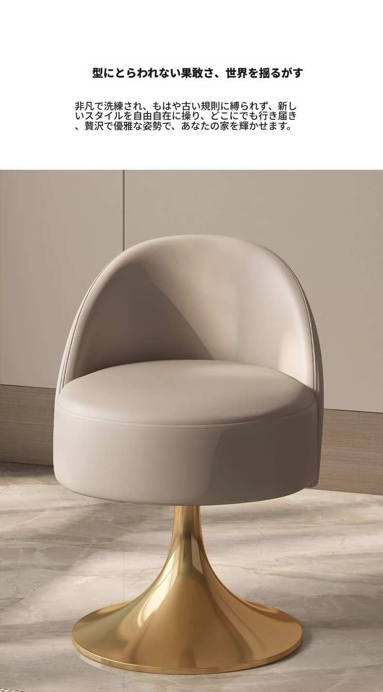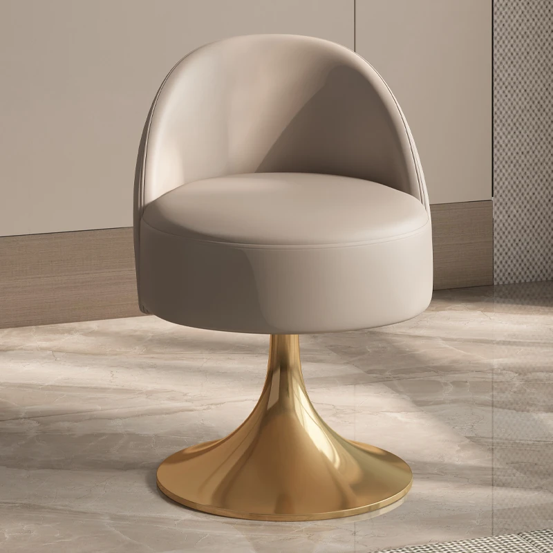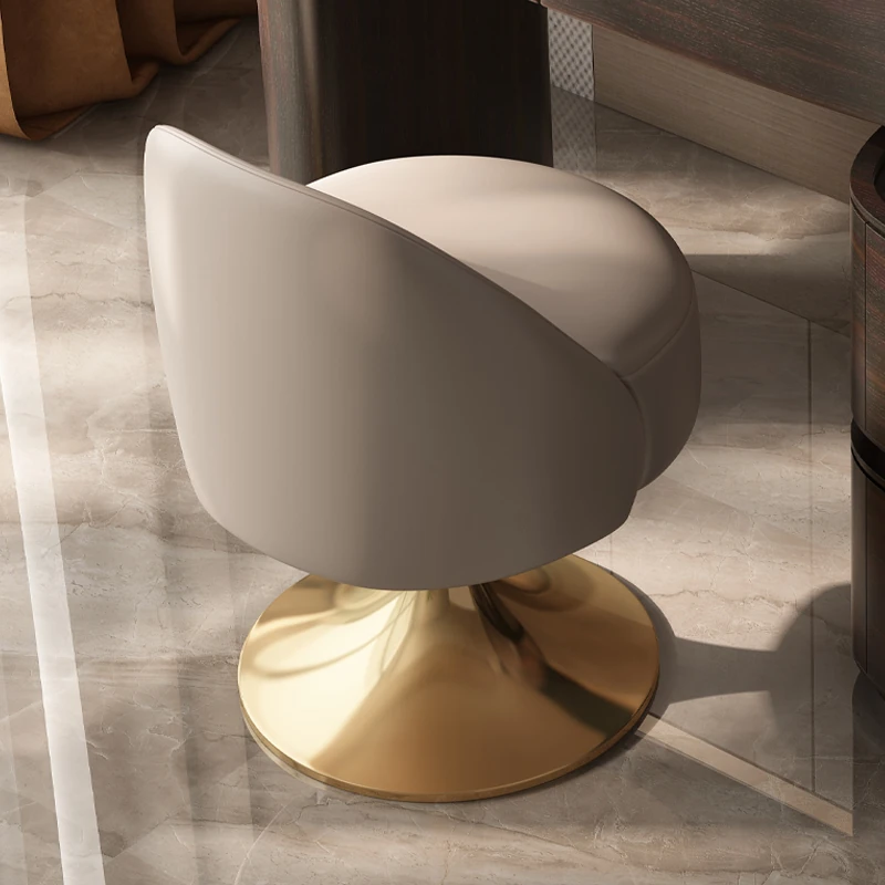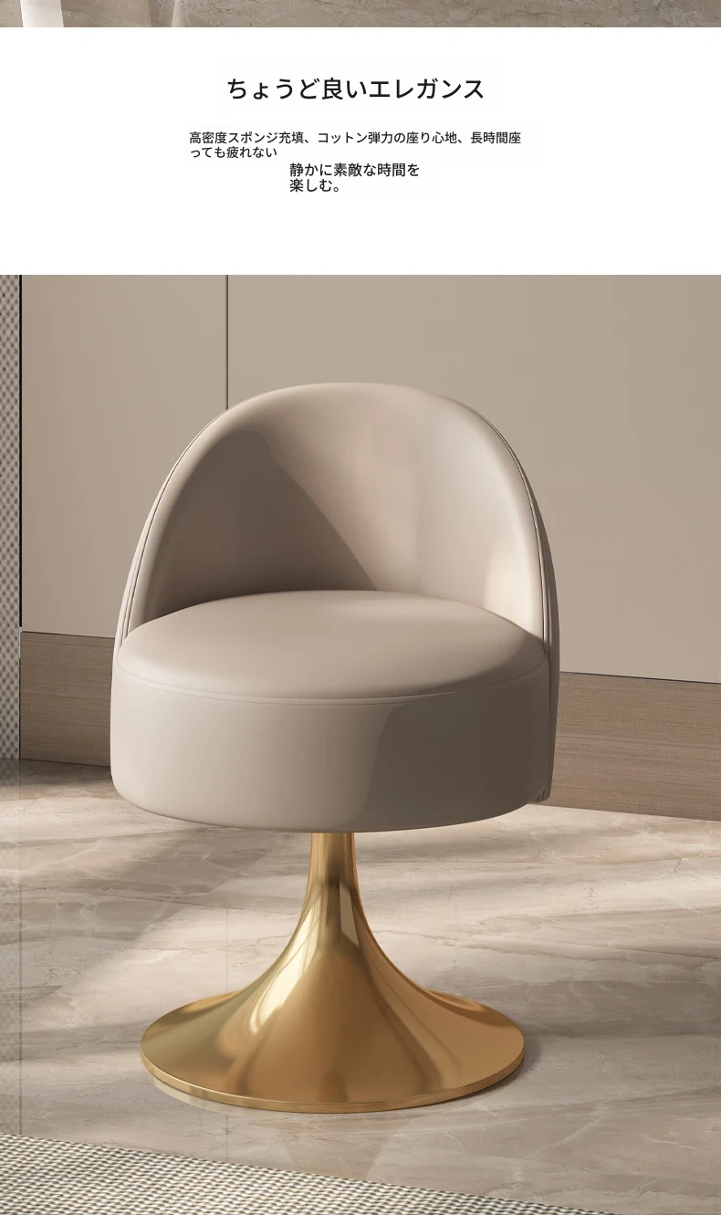イタリアンラグジュアリーなベッドルームにぴったり!ステンレススチール製の本革バックレスト付き回転ドレッシングスツール。シンプルでスタイリッシュ、小スペースにも最適!あなたのメイクアップタイムを特別に演出します。