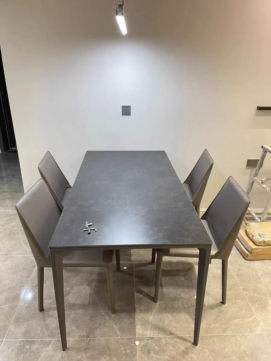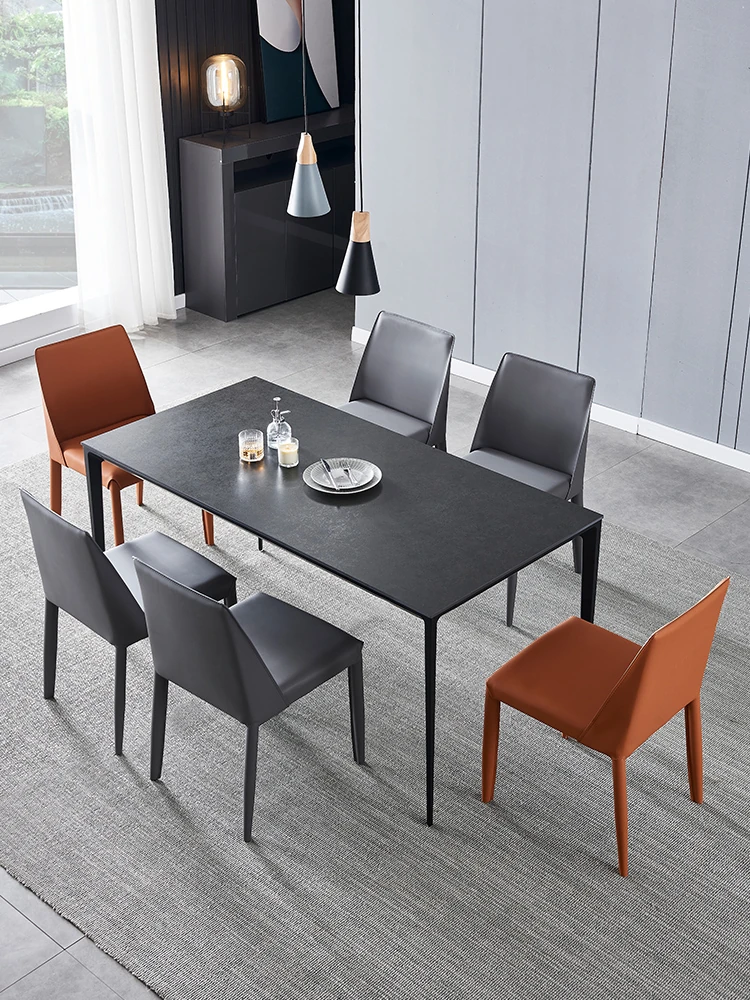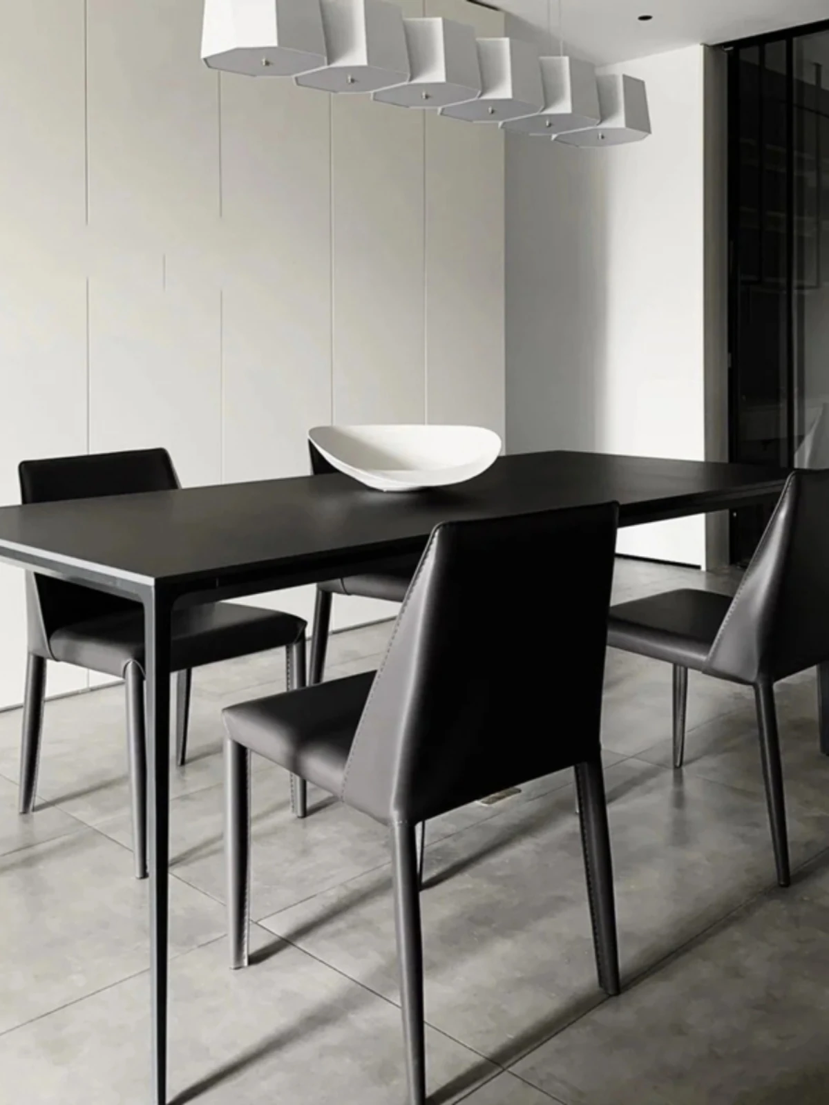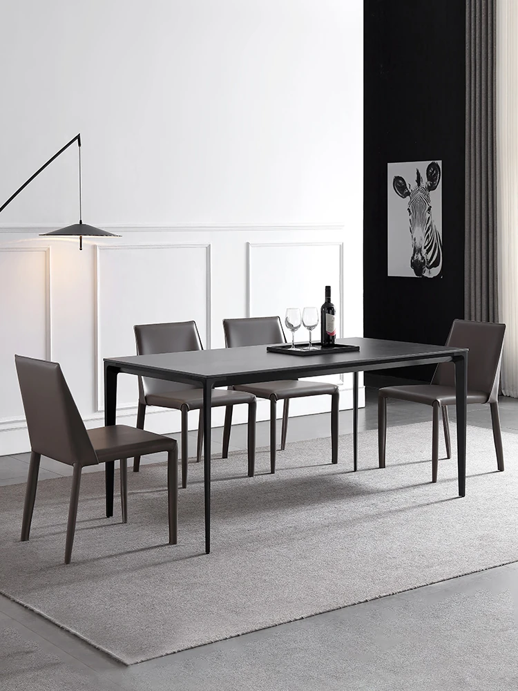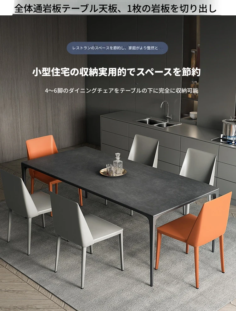 イタリアンミニマリズムの岩板ダイニングテーブル|小型住宅に最適なアルミ合金製|モダンでシンプルな長方形テーブル&チェアセットで、洗練された食空間を演出!