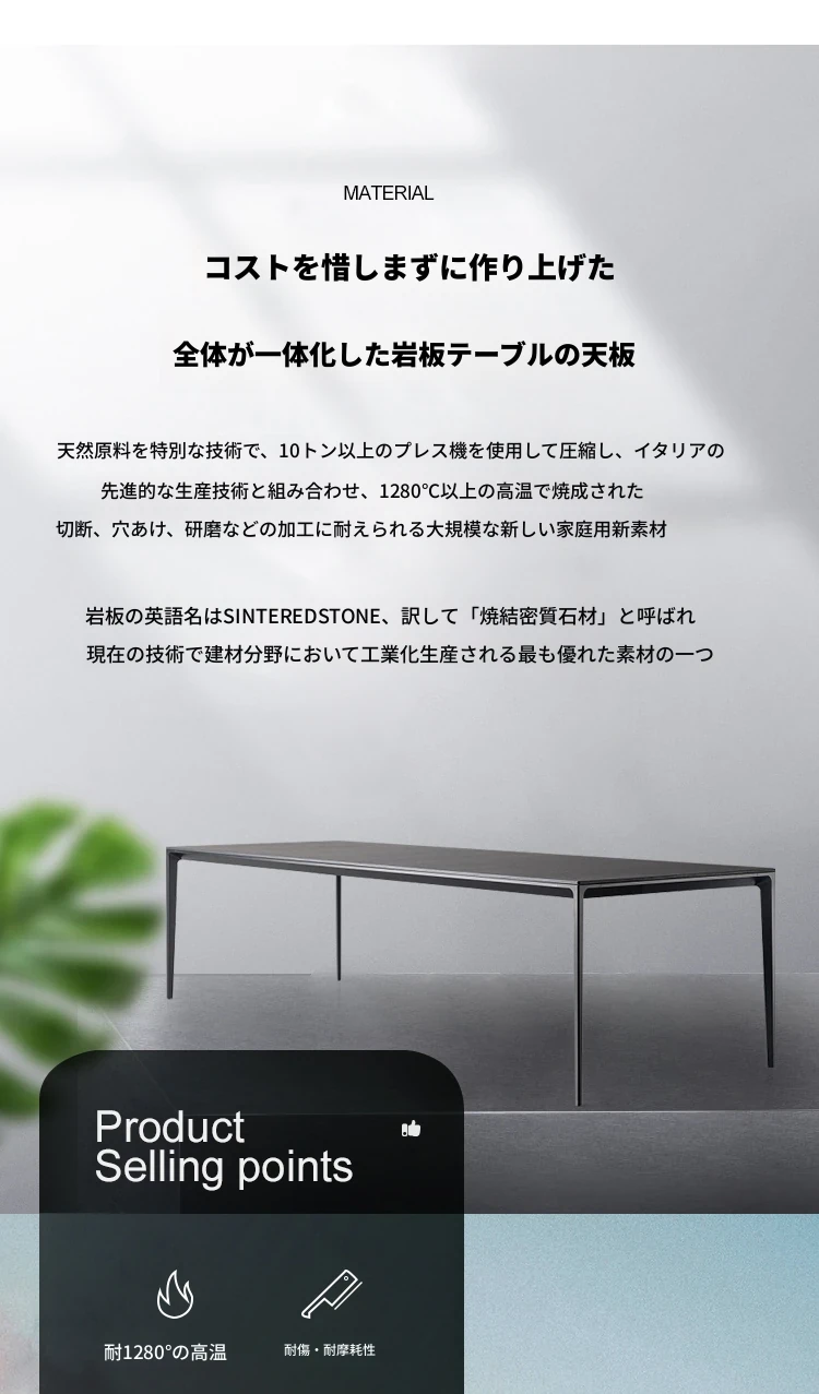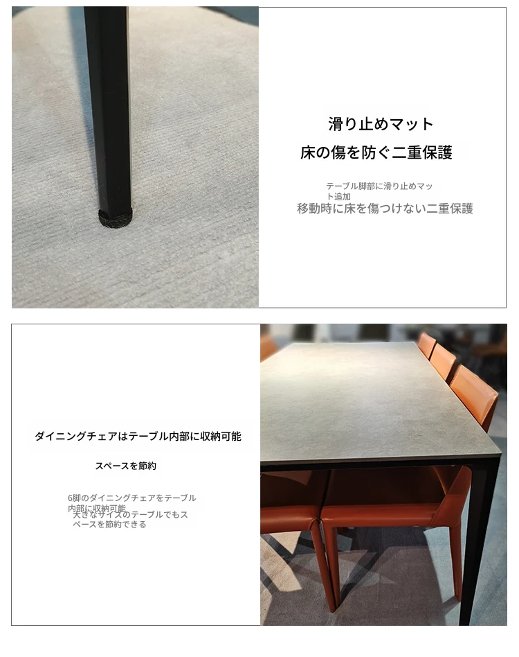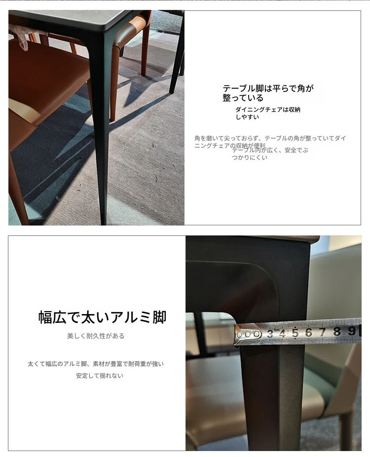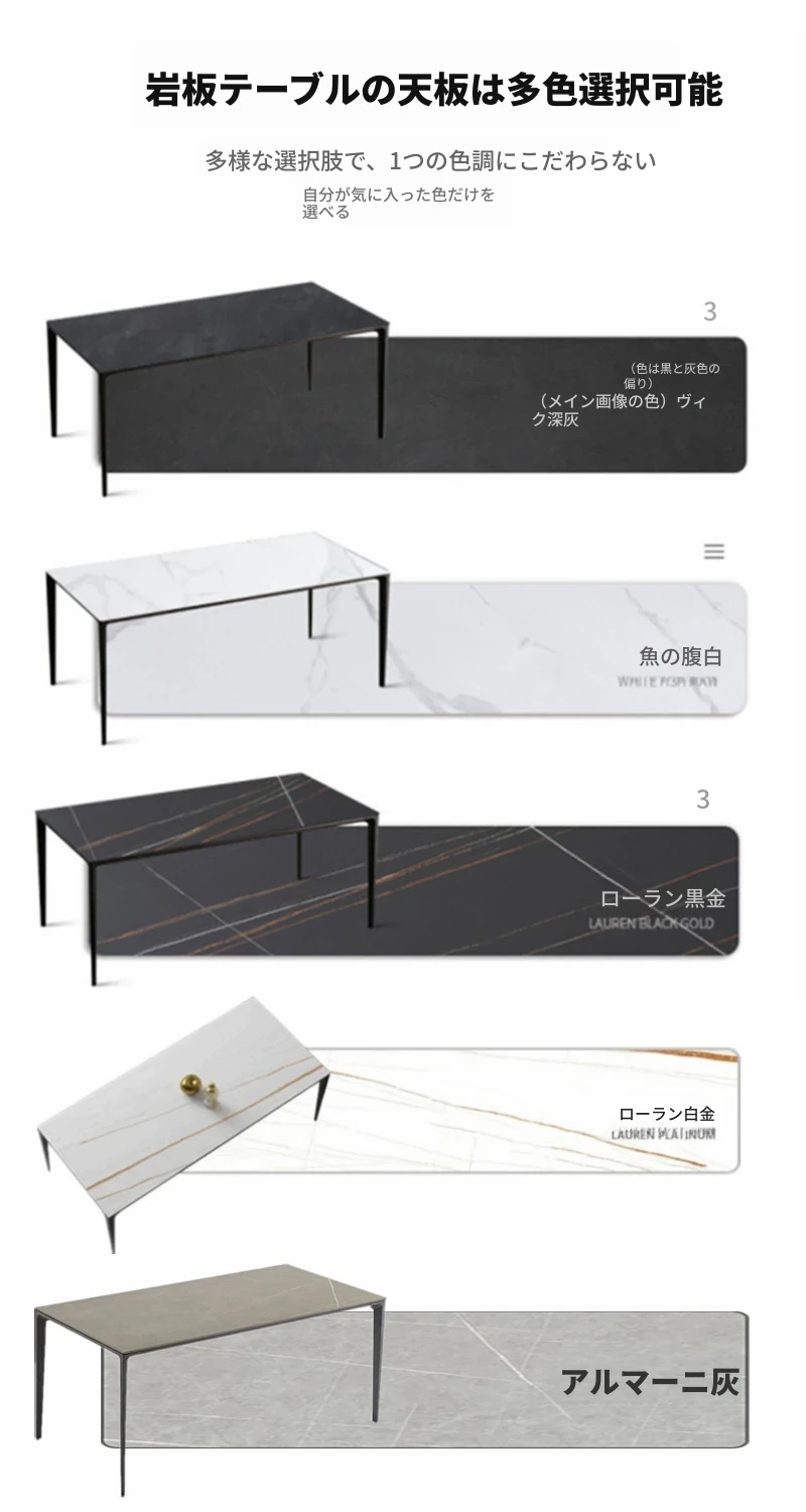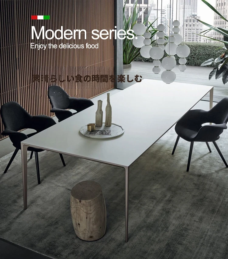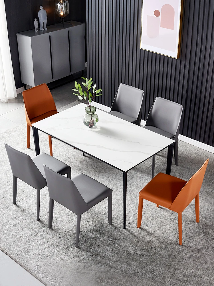イタリアンミニマリズムの岩板ダイニングテーブル|小型住宅に最適なアルミ合金製|モダンでシンプルな長方形テーブル&チェアセットで、洗練された食空間を演出!