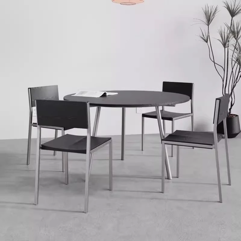 北欧スタイルの小型中古風デザイン、重ねられる背もたれ付きダイニングチェア。シンプルで洗練されたデザイン、家庭にぴったりのダイニングセット!