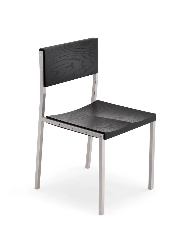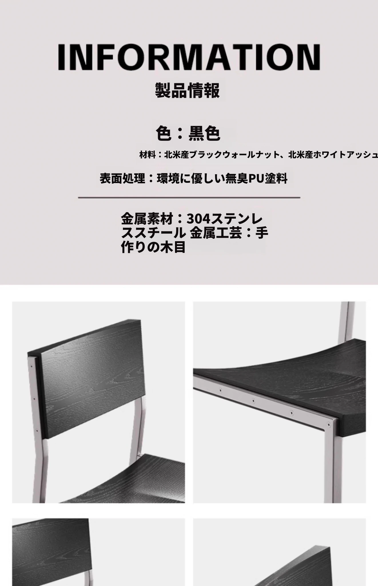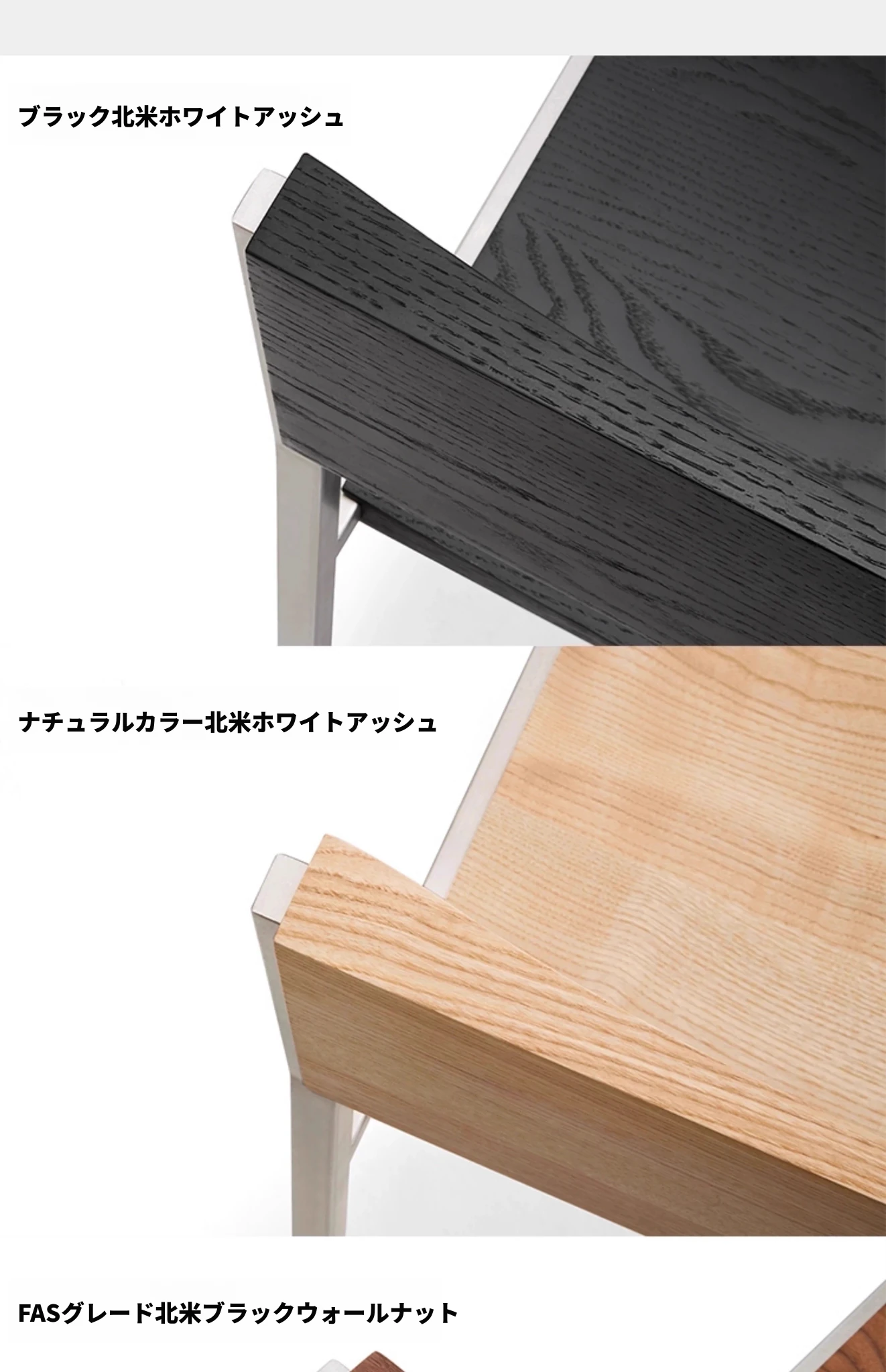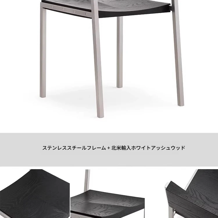 イタリアンミニマリズムの無垢材ダイニングチェア|ステンレススチール製|モダンでシンプルな高級感|ホワイトアッシュの背もたれ付き|おしゃれな食卓にぴったりの一品!