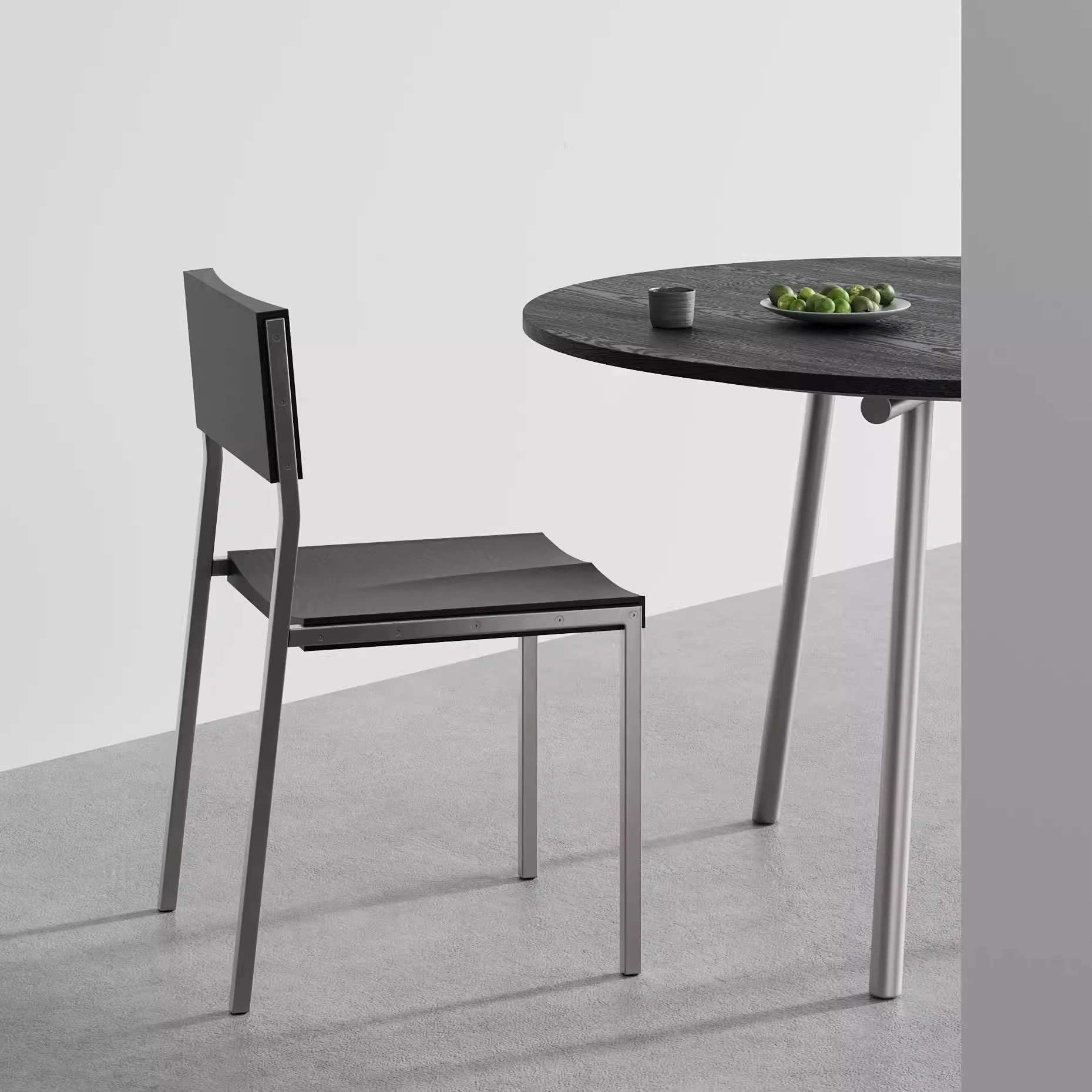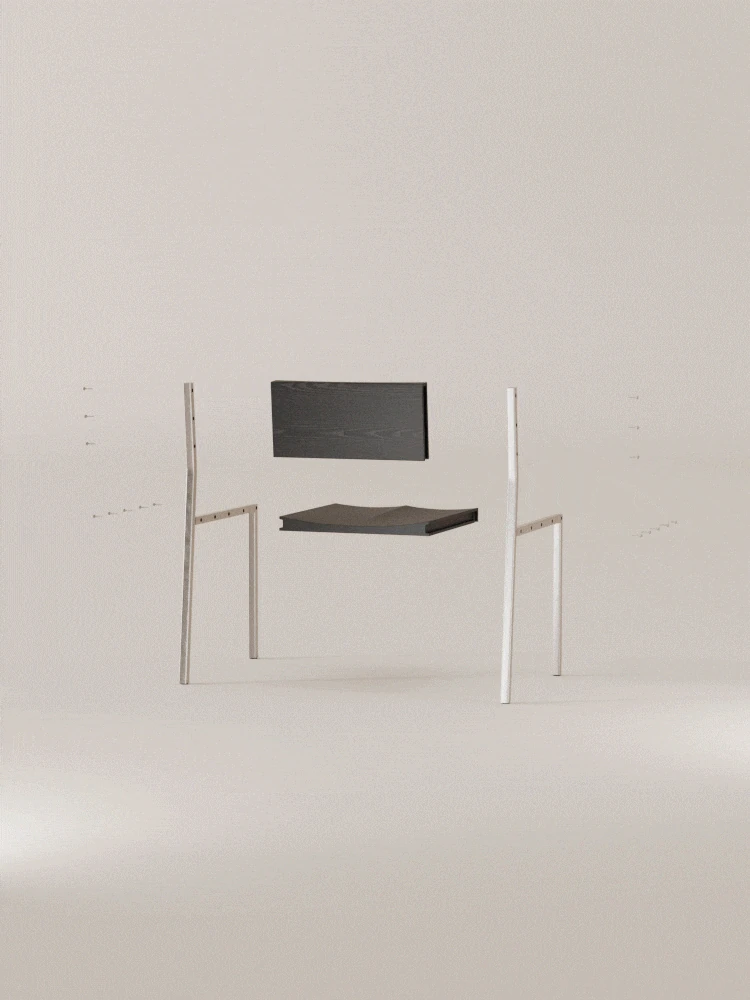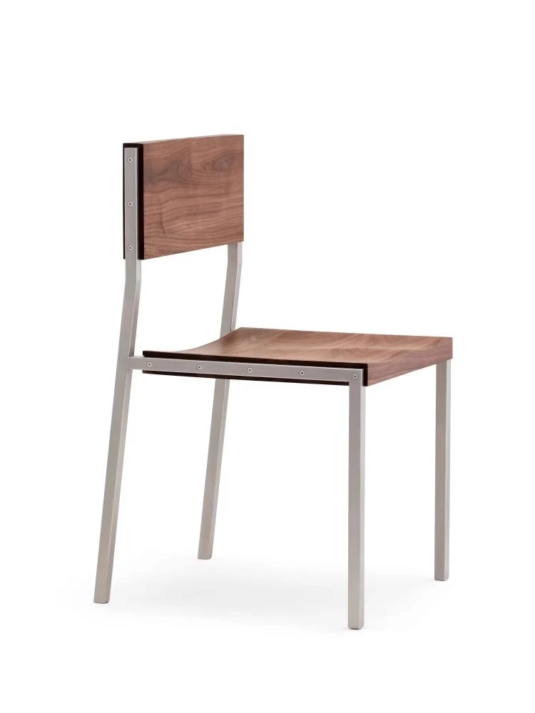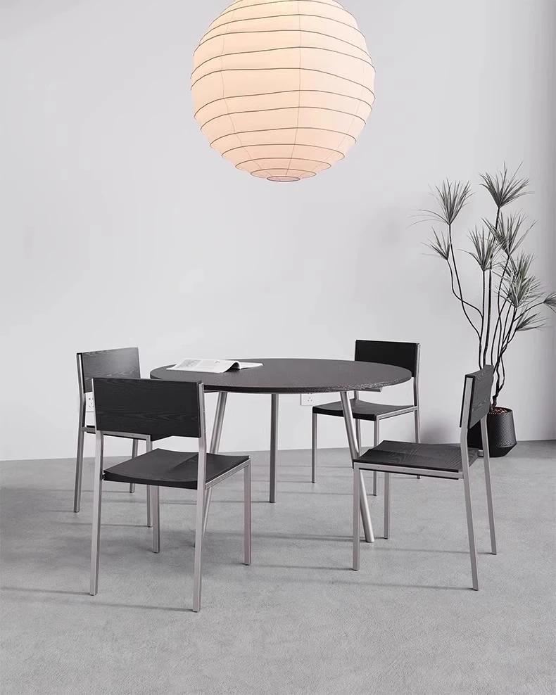 イタリアンミニマリズムの無垢材ダイニングチェア|ステンレススチール製|モダンでシンプルな高級感|ホワイトアッシュの背もたれ付き|おしゃれな食卓にぴったりの一品!