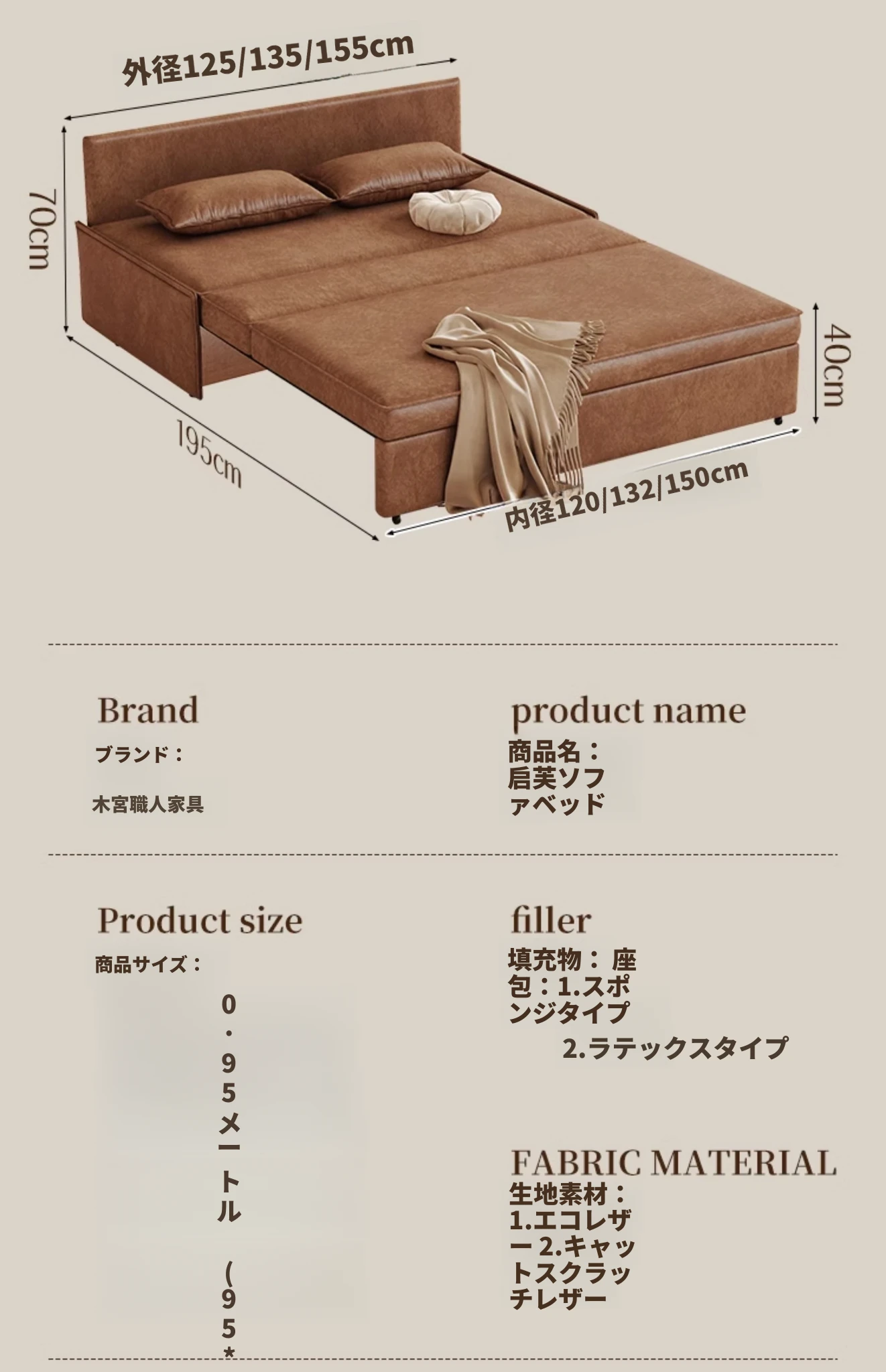 【国産本革-天然ラテックス】1.35メートル