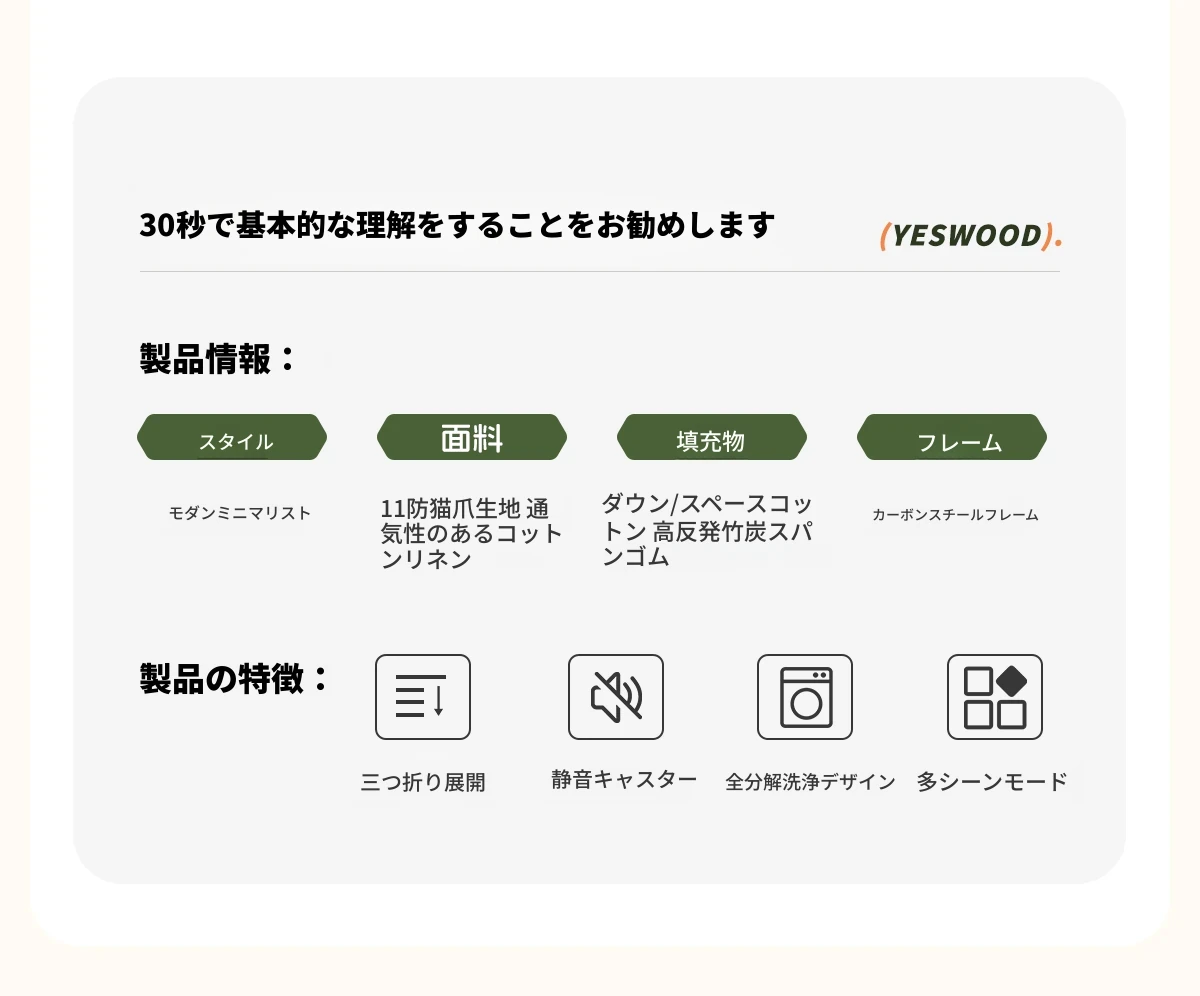 【豪華版・スポンジタイプ】新アップグレード抗菌耐摩耗耐傷コットンリネン丨フリースコットン+ 高反発竹炭スポンジ