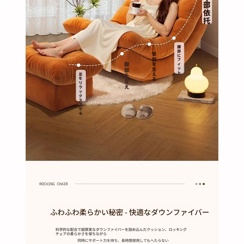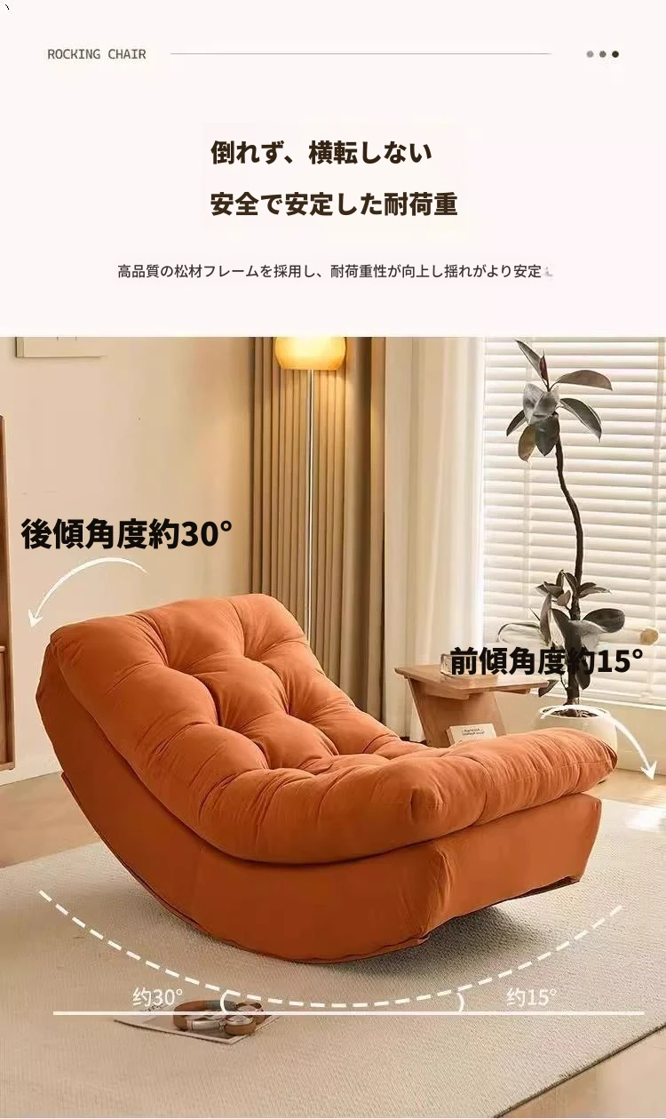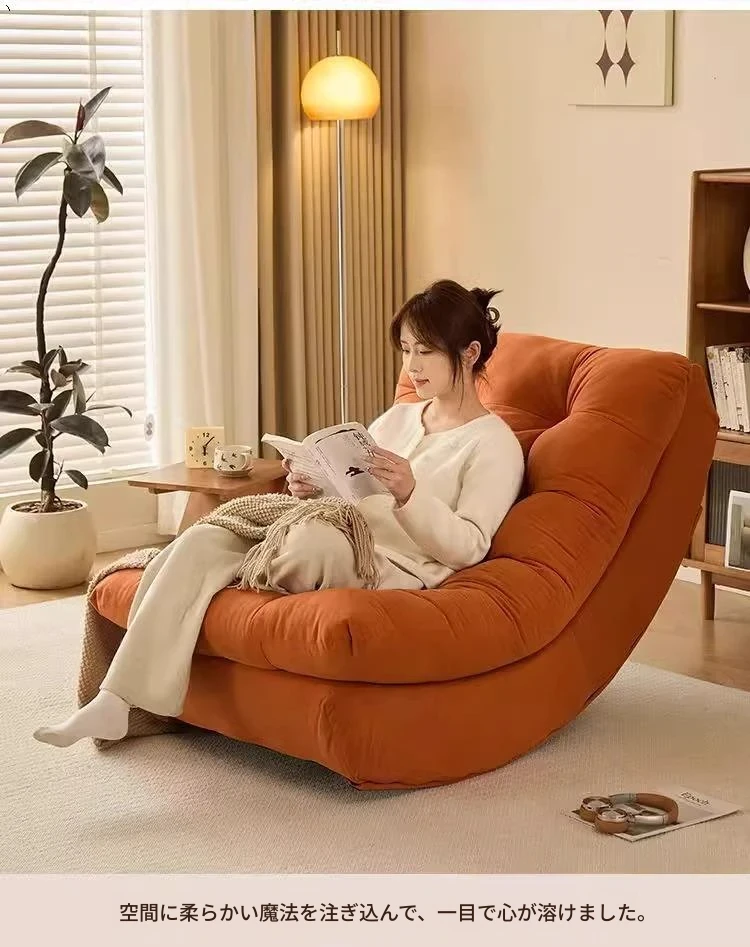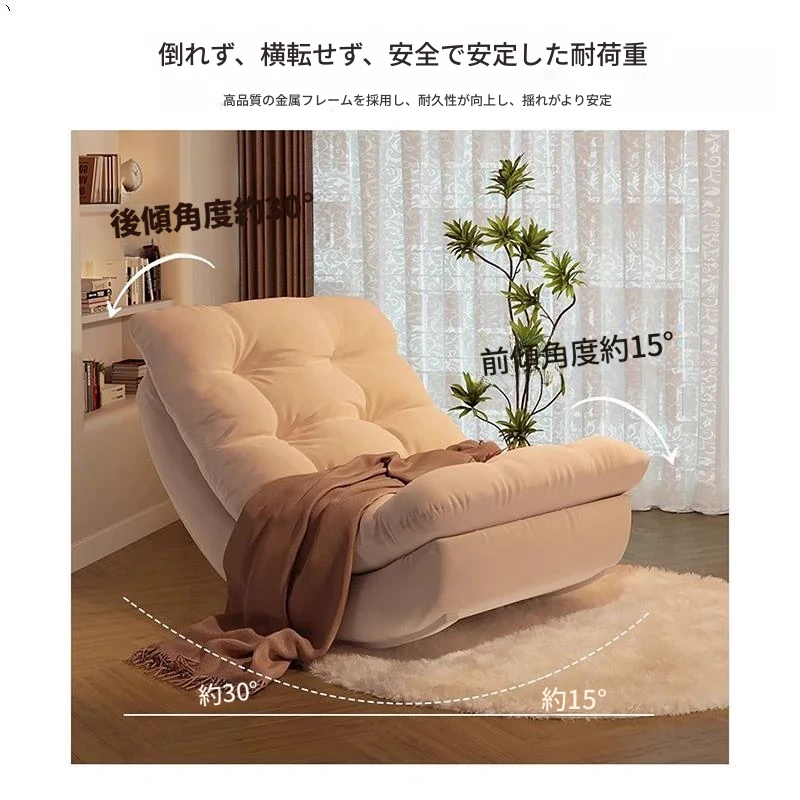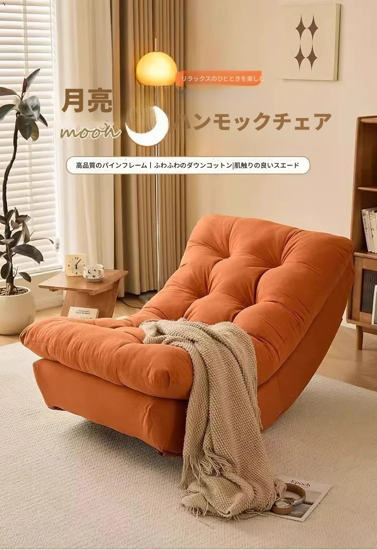 リラックスできる月型ロッキングチェア!寝転びながらくつろげる、ソファとしても使える懶人ソファ。リビングやバルコニーにぴったりの休憩椅子。あなたのくつろぎの時間を演出します!