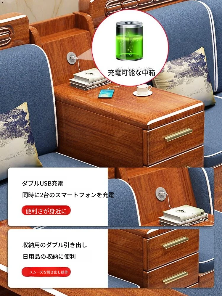 四人用ソファ+貴妃椅+ミドルボックス+コーヒーテーブル