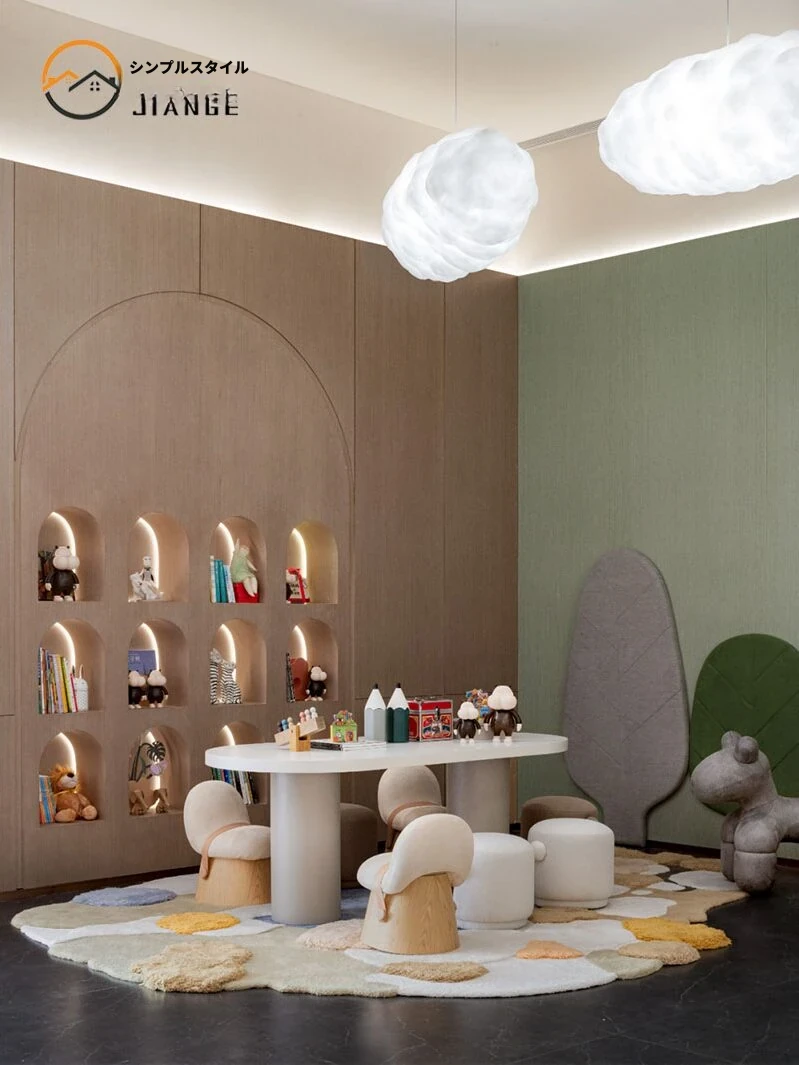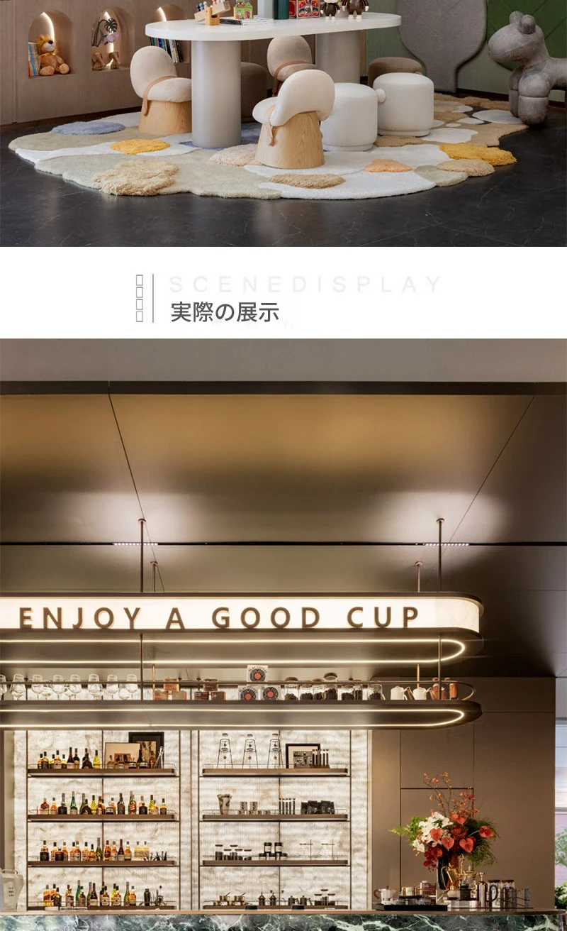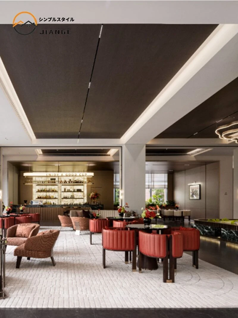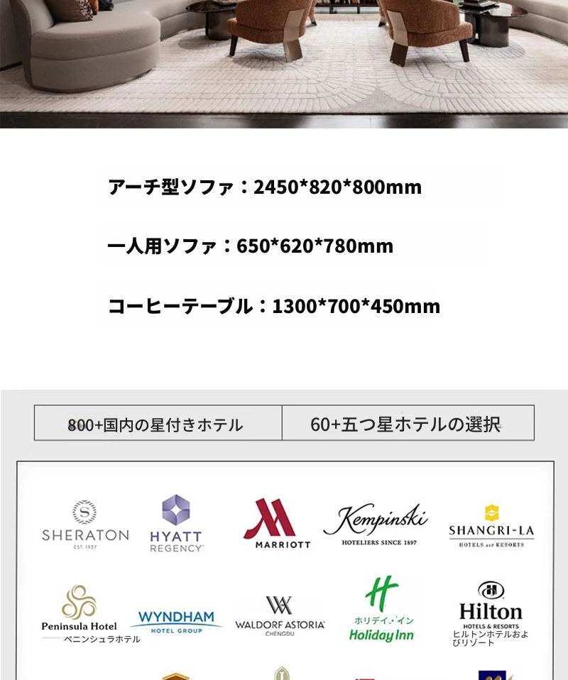 モダンな不動産販売オフィス向けアーチ型レセプションソファー|ラグジュアリーなホテルや美容院に最適なリラックス空間|洽談用テーブル&椅子セットで、スタイリッシュな雰囲気を演出!
