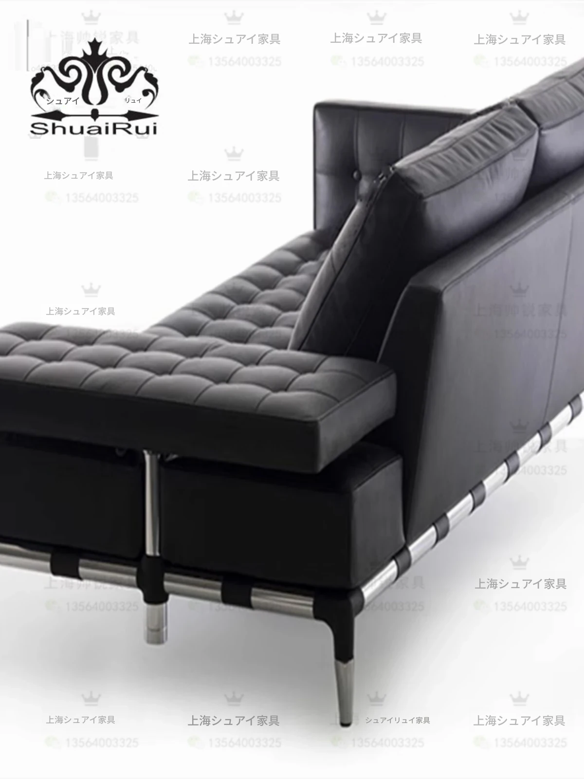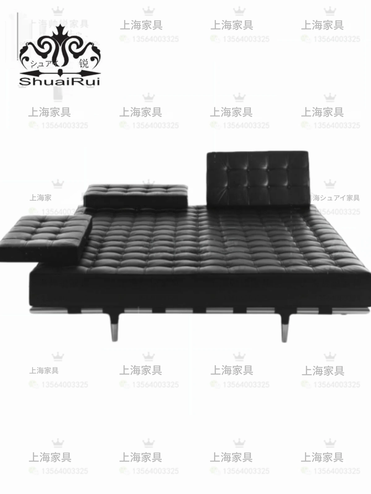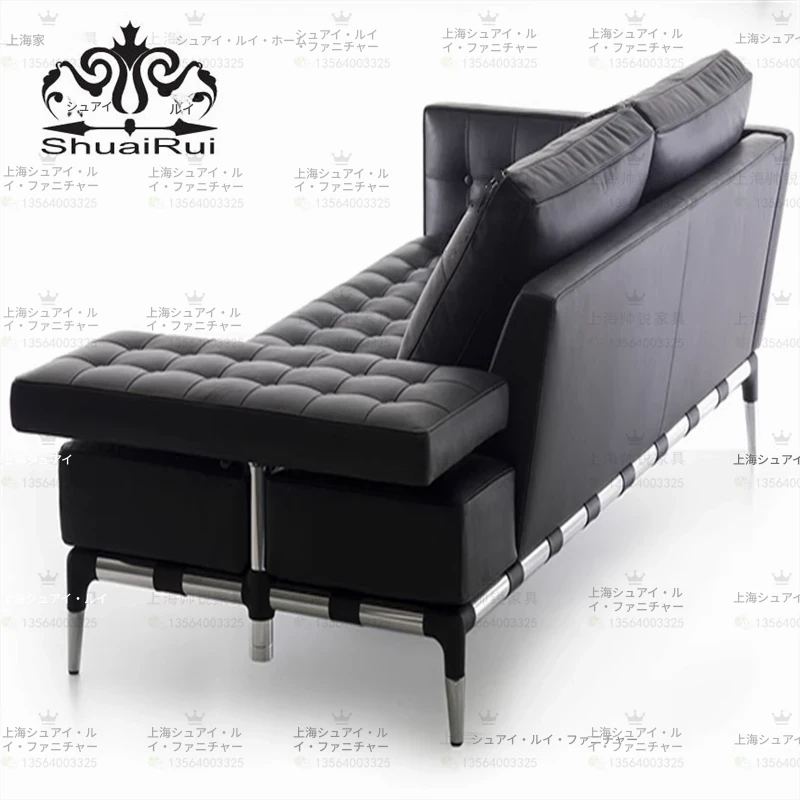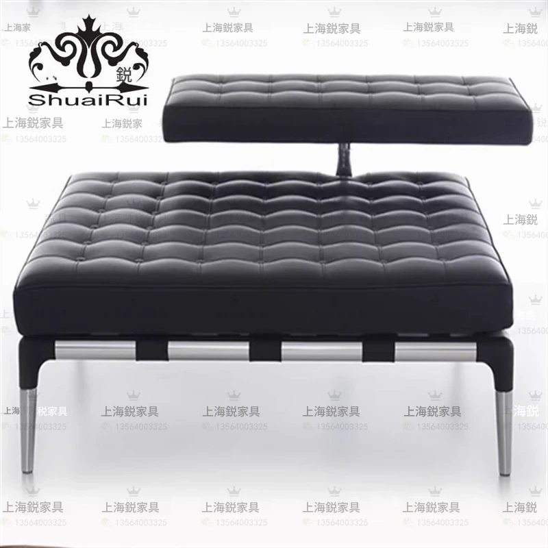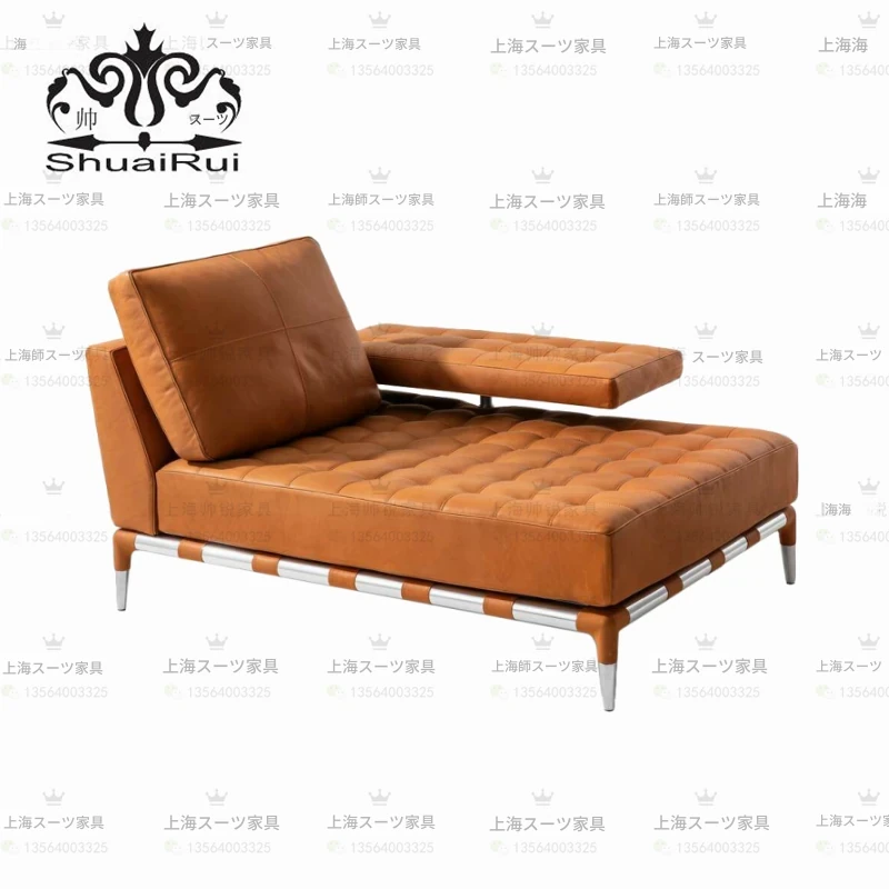 イタリアンシンプルスタイルの貴婦人リラックスソファ - モダンステンレス製アーム付き、リビングルームにぴったりなレザー調ソファベンチ。ボタン付きでおしゃれなデザイン、快適な寝椅子としても使える多機能ソファ!