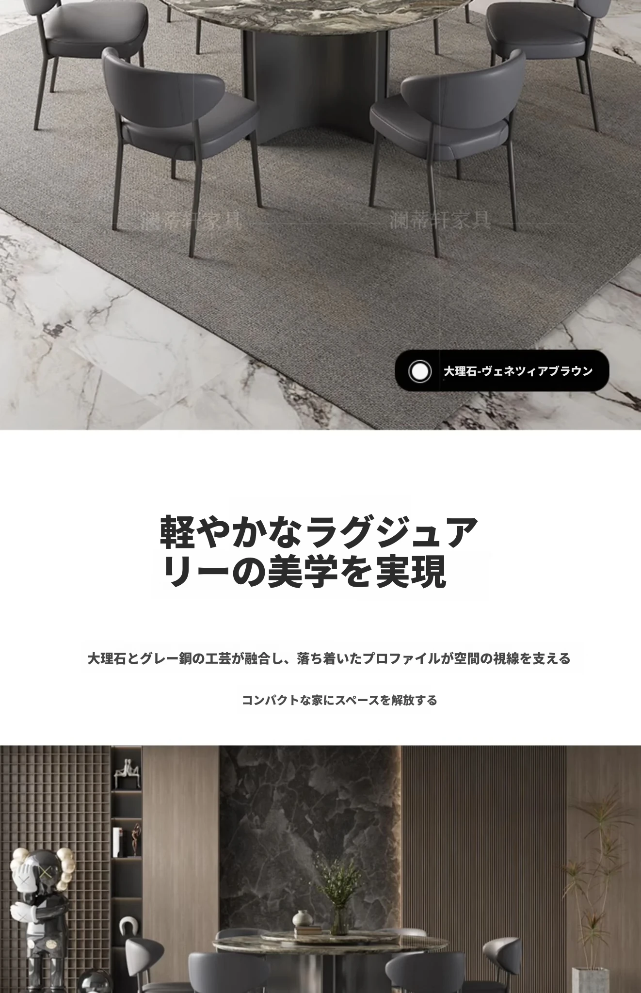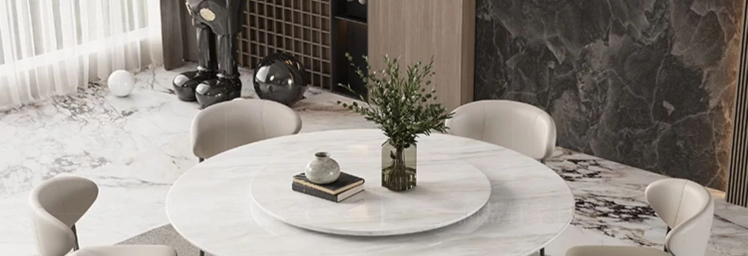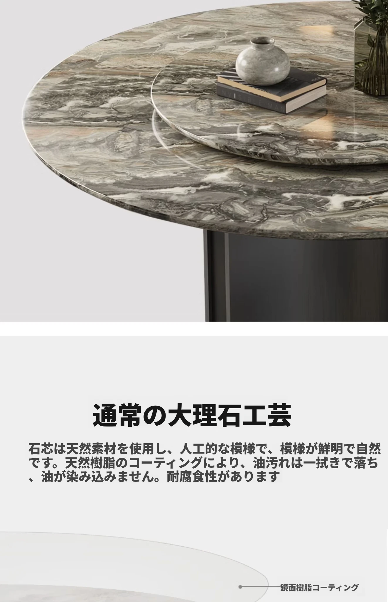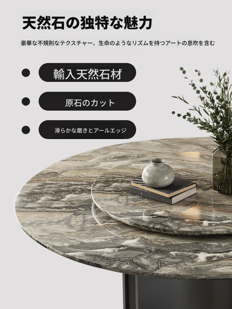 輸入:現代的な大理石ラウンドテーブル - イタリアンスタイルの高級リビング用、輸入の贅沢なヴェネチアブラウンテーブル、回転プレート付きで便利さとエレガンスを両立!