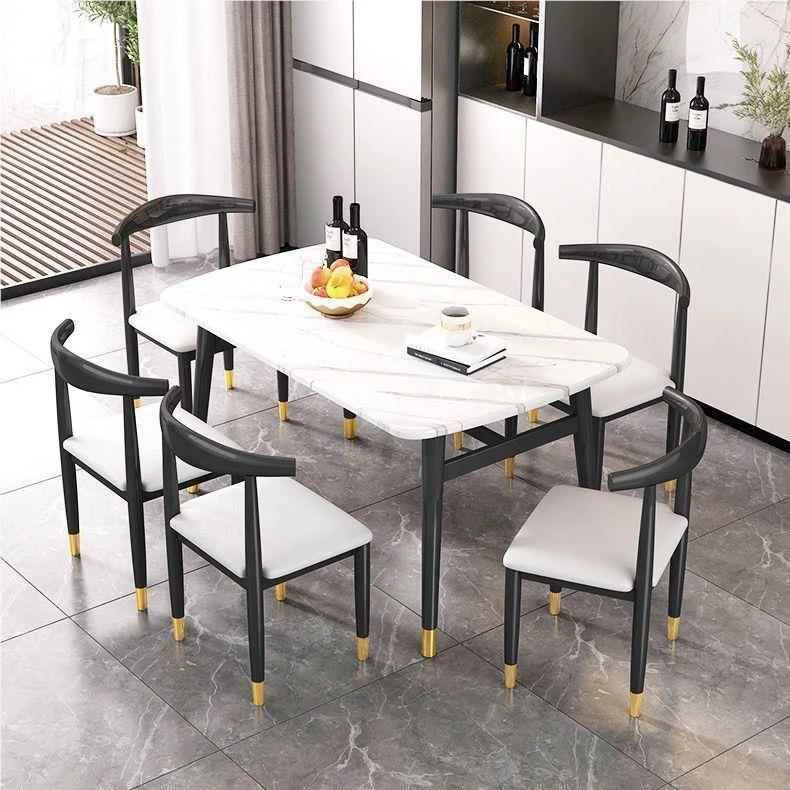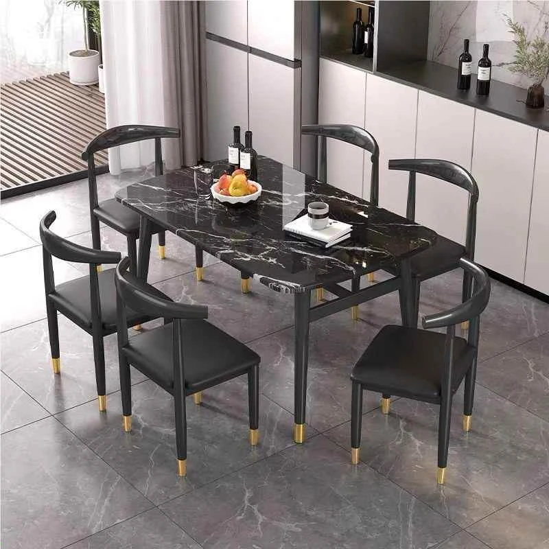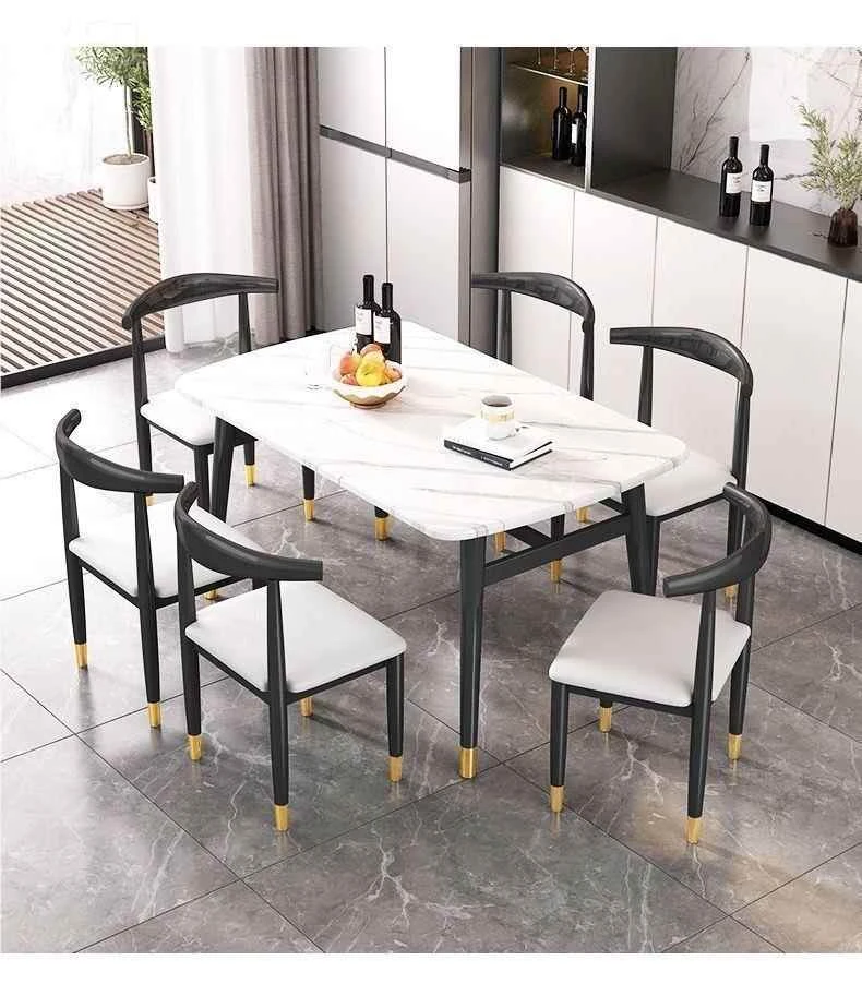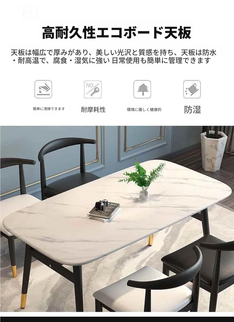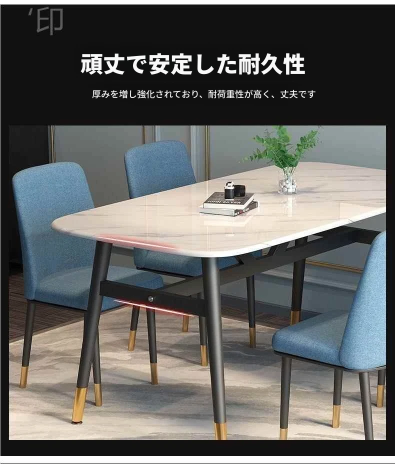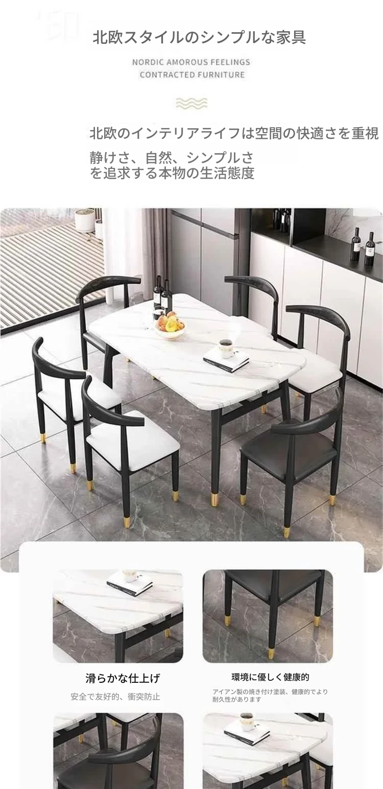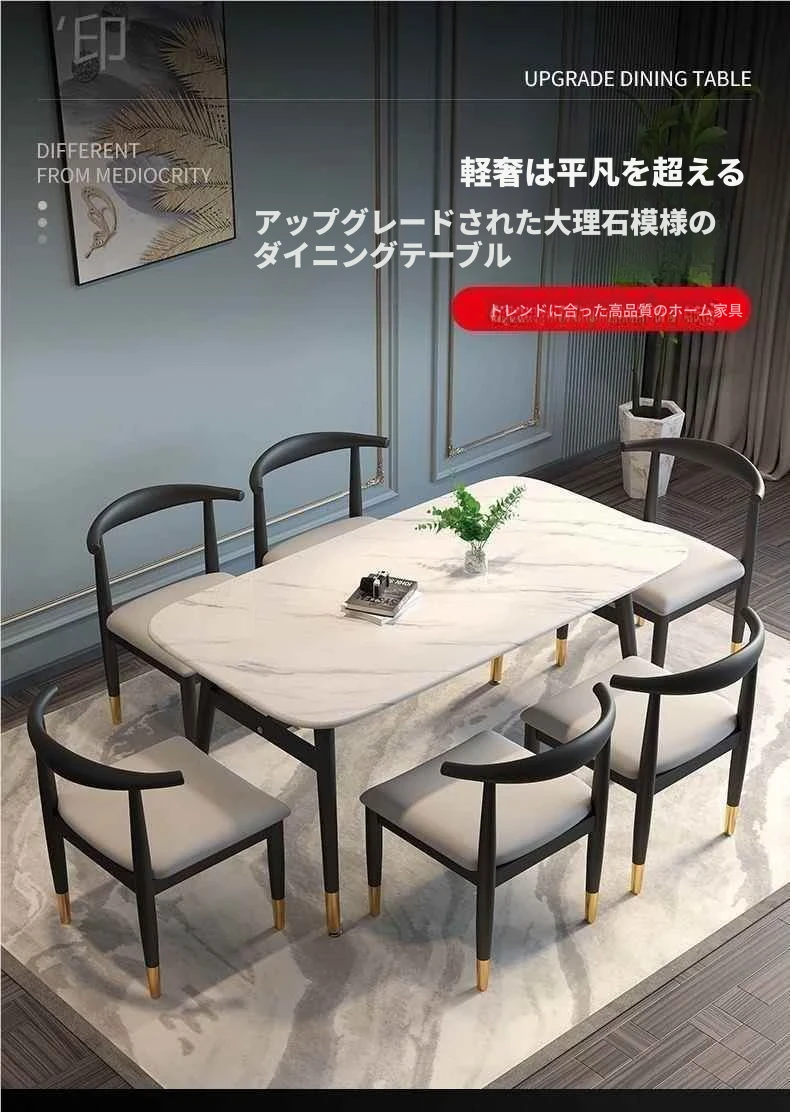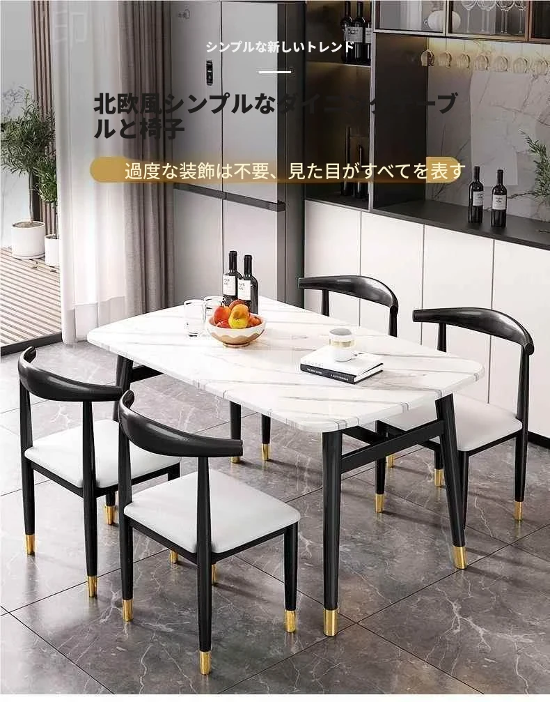 モダンでシンプルな軽奢ダイニングテーブルセット - 厚手の大理石風デザイン、家庭用に最適!新作のテーブルと椅子のコンビネーションで、スタイリッシュな食卓を演出します。